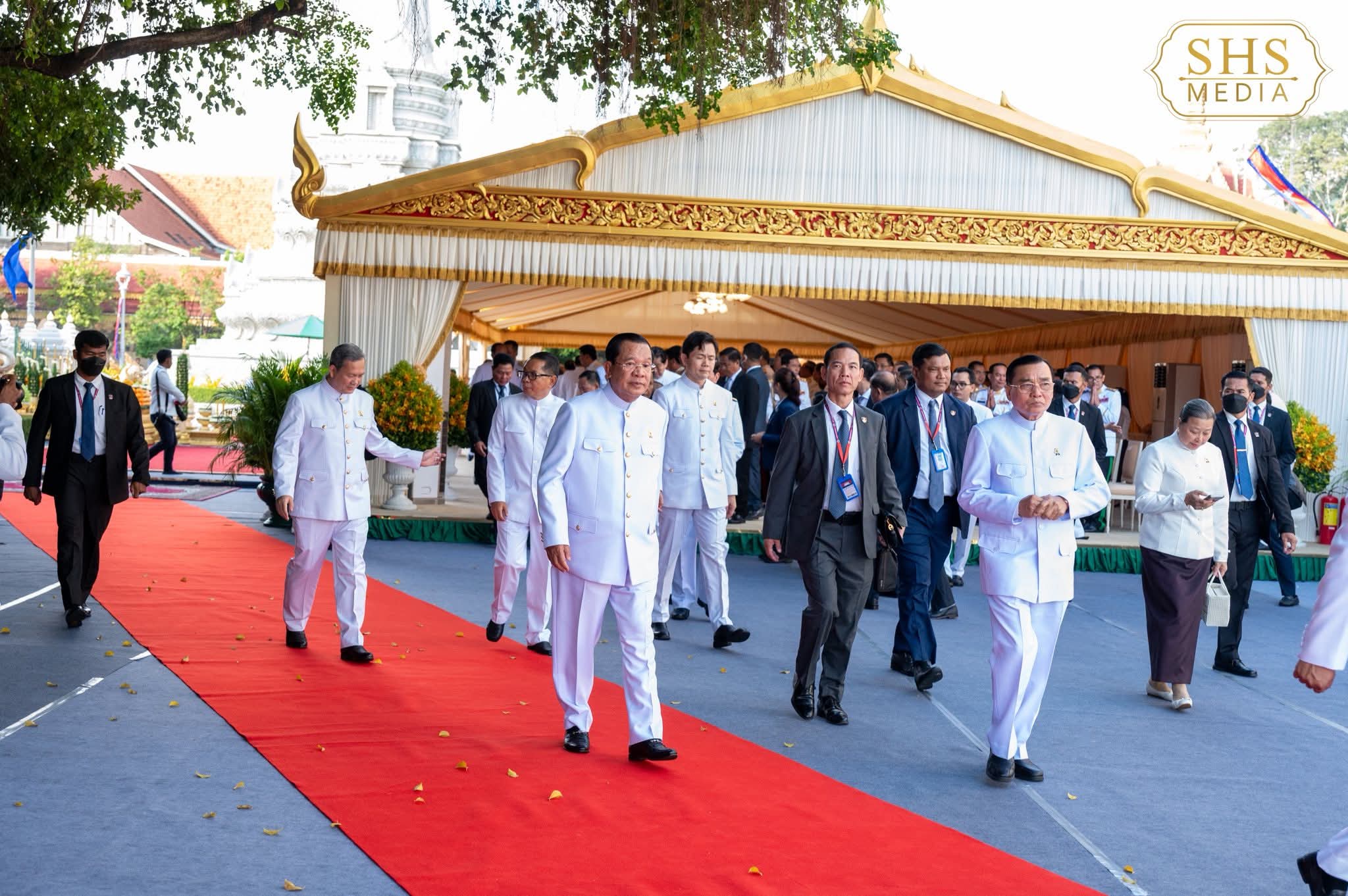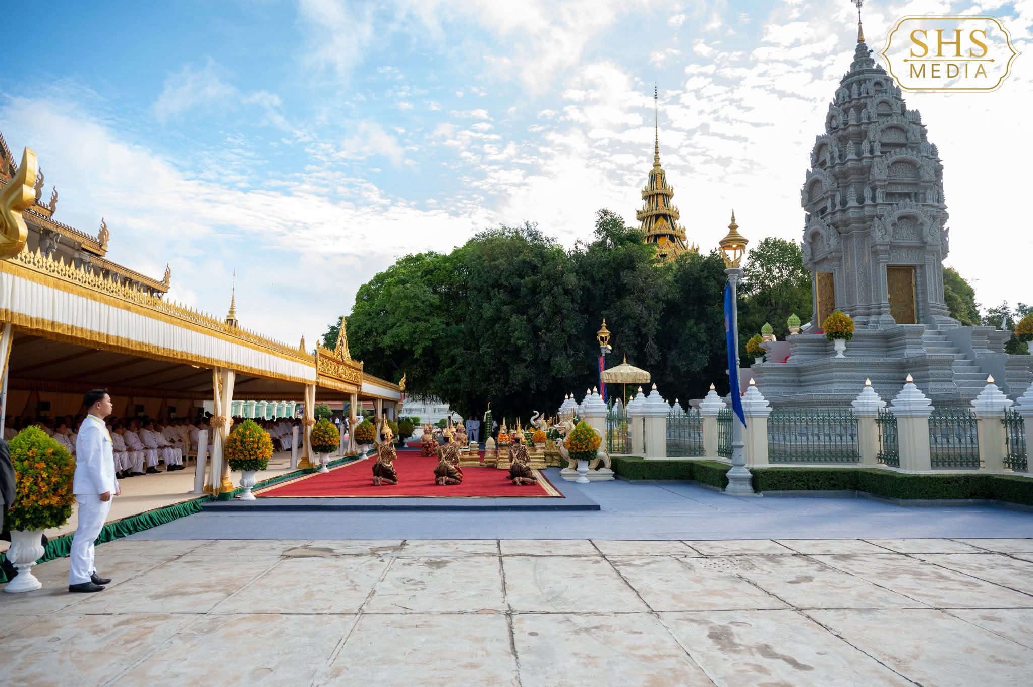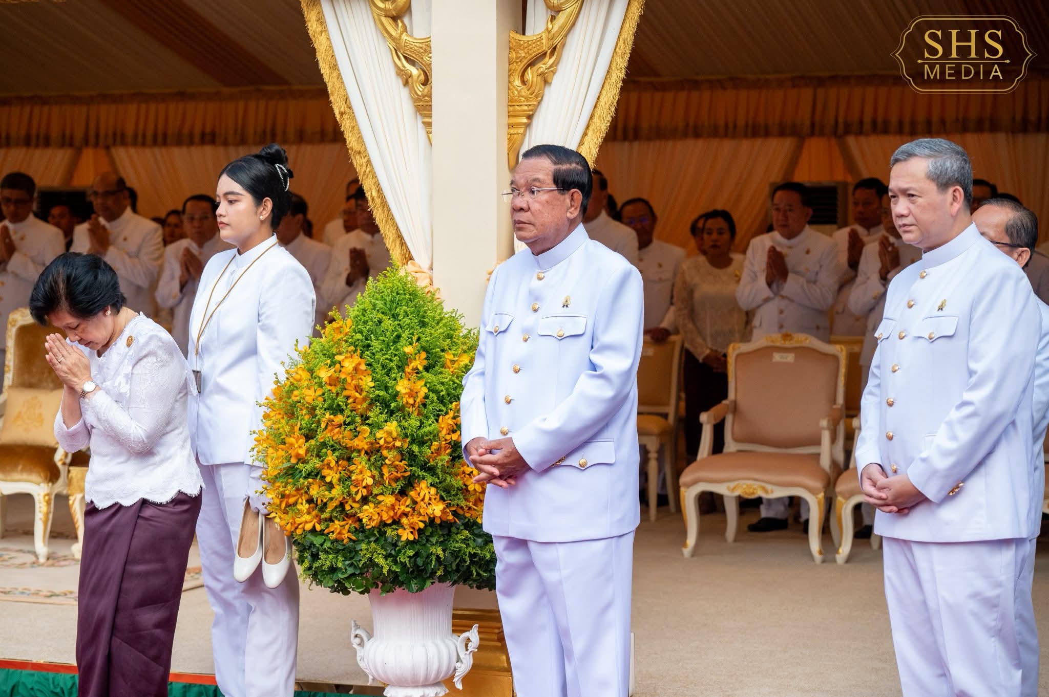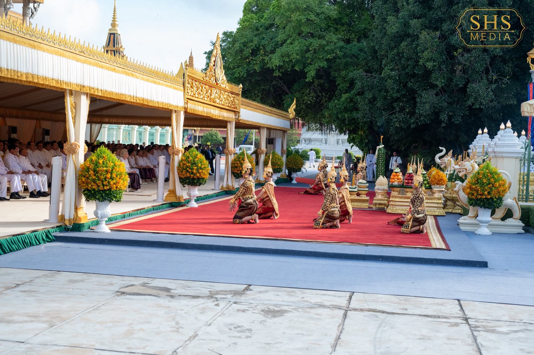 (ភ្នំពេញ) :នៅព្រឹកថ្ងៃសុក្រ ១០កើតខែកត្តិក ឆ្នាំម្សាញ់ សប្តស័ក ព.ស. ២៥៦៩ ត្រូវនឹង ថ្ងៃទី៣១ ខែតុលា ឆ្នាំ២០២៥ សម្ដេចអគ្គមហាសេនាបតីតេជោ ហ៊ុន សែន ប្រធានក្រុមឧត្តមប្រឹក្សាផ្ទាល់ព្រះមហាក្សត្រ និងជាប្រធានព្រឹទ្ធសភានៃព្រះរាជាណាចក្រកម្ពុជា បានអញ្ជើញដង្ហែ សម្ដេចព្រះមហាក្សត្រី នរោត្ដម មុនិនាថ សីហនុ ព្រះវររាជមាតាជាតិខ្មែរ ក្នុងសេរីភាព សេចក្តីថ្លៃថ្នូរ និងសុភមង្គល ព្រះរាជតំណាងដ៏ខ្ពង់ខ្ពស់បំផុត របស់ព្រះករុណាព្រះបាទសម្ដេចព្រះបរមនាថ នរោត្តម សីហមុនី ព្រះមហាក្សត្រនៃព្រះរាជាណាចក្រកម្ពុជា ក្នុងព្រះរាជពិធីចម្រើនសេចក្តីសុខជូនព្រះរាជាណាចក្រកម្ពុជា នៅព្រះបរមរាជវាំង។