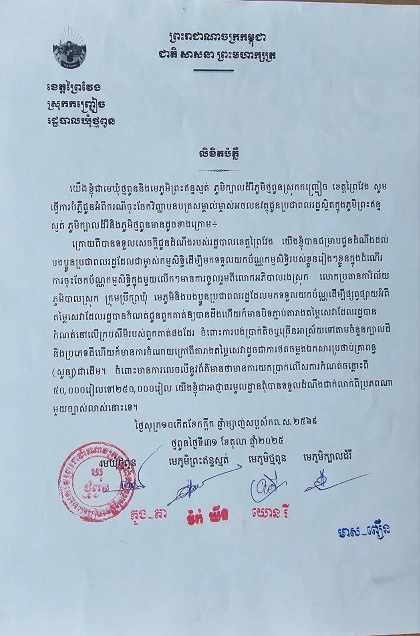 ✍️សូមអានសេចក្ដីបំភ្លឺរបស់រដ្ធបាលឃុំថ្មពូន មានដូចខាងក្រោម៖