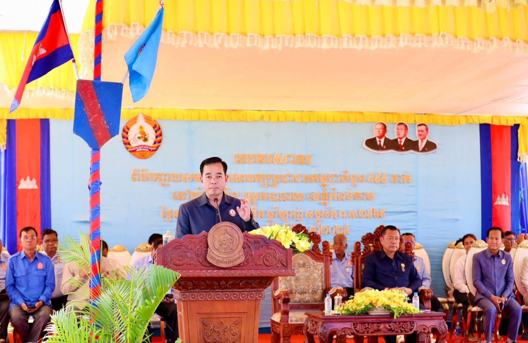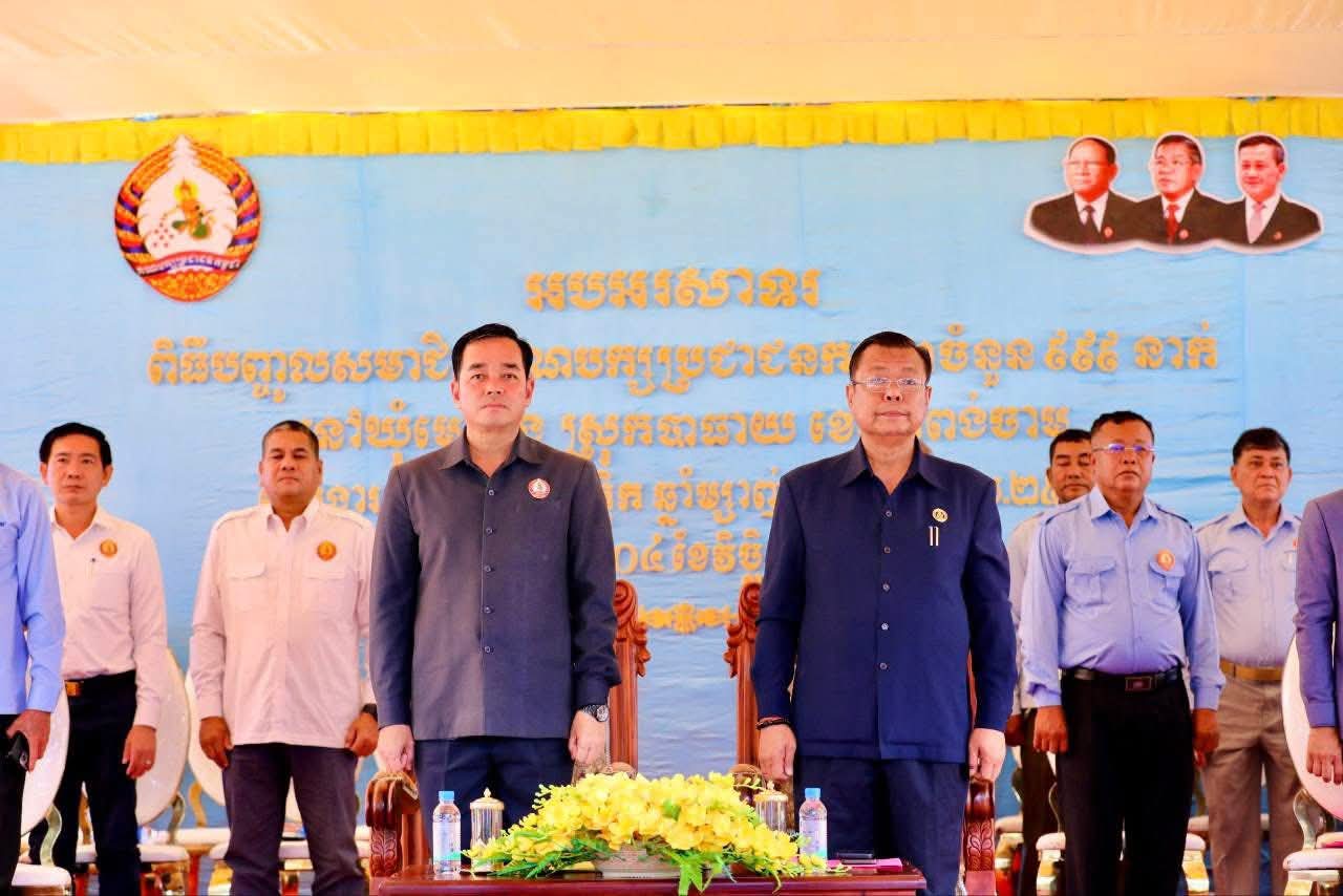 (កំពង់ចាម): ឯកឧត្តម អ៊ុន ចាន់ដា សមាជិកគណៈ គណៈកម្មាធិការកណ្តាលគណបក្សប្រជាជនកម្ពុជា, ប្រធានគណៈកម្មាធិការបក្សខេត្តកំពង់ចាម បានស្នើដល់សមាជិកថ្មី នៃក្រុមគ្រួសារគណបក្សប្រជាជនកម្ពុជា ឃុំមេព្រីង ស្រុកបាធាយ ចំនួន 999នាក់ ដែលត្រូវបានប្រកាសទទួលស្គាល់ និងបញ្ចូលជាសមាជិកថ្មី ត្រូវរក្សាគោលជំហរ និងភាពស្មោះត្រង់ចំពោះគណបក្ស ដើម្បីគណបក្សមានលទ្ធភាពក្នុងការដឹកនាំ និងអភិវឌ្ឍន៍ប្រទេសជាតិឲ្យបានយូរអង្វែង។ ការថ្លែងបែបនេះ នៅក្នុងពិធីសំណេះសំណាល និងប្រកាសទទួលស្គាល់ បញ្ចូលសមាជិកថ្មី នៃក្រុមគ្រួសារគណបក្សប្រជាជនកម្ពុជា ឃុំមេព្រីង ស្រុកបាធាយ ចំនួន 999នាក់ ស្ថិតនៅក្នុងមេព្រីង នាថ្ងៃទី៤ ខែវិច្ឆិកា ឆ្នាំ២០២៥។