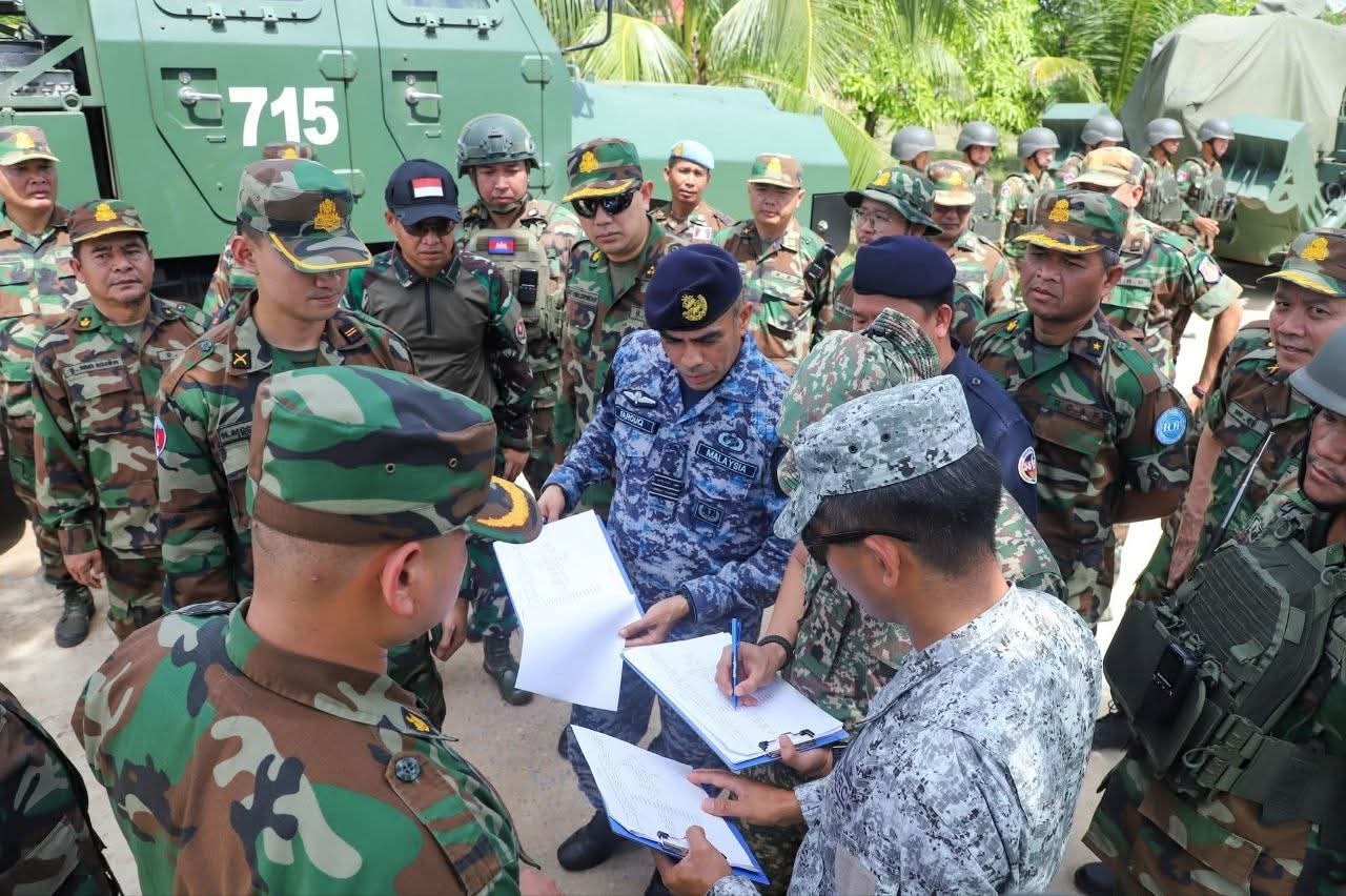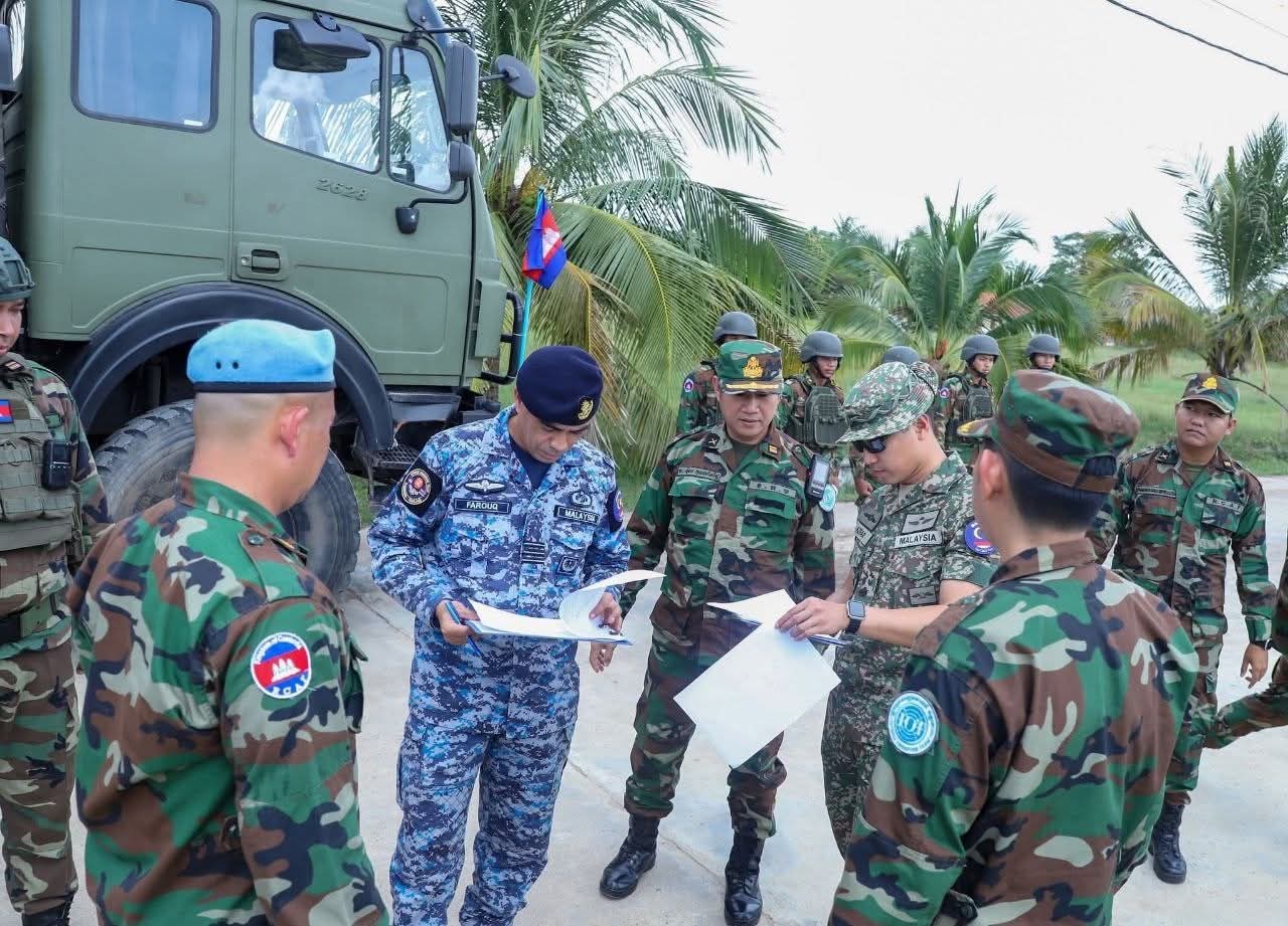 On November 4, 2025, at 11:03 AM, the Coordinating Task Force for the Observer Team of the Ministry of National Defence of Cambodia facilitated the ASEAN Observer Team (AOT) to inspect the implementation of the 1st phase of the removal of heavy and destructive weapons and equipment that were returned to the original location at Kampong Speu Province. It is important to recall that these heavy and destructive weapons and equipment were withdrawn from Choam Kshant and Roveang Districts, Preah Vihear Province, on November 1, 2025, at 6:45 PM, in accordance with the phased removal plan for heavy and destructive weapons and equipment agreed by both Cambodia and Thailand.