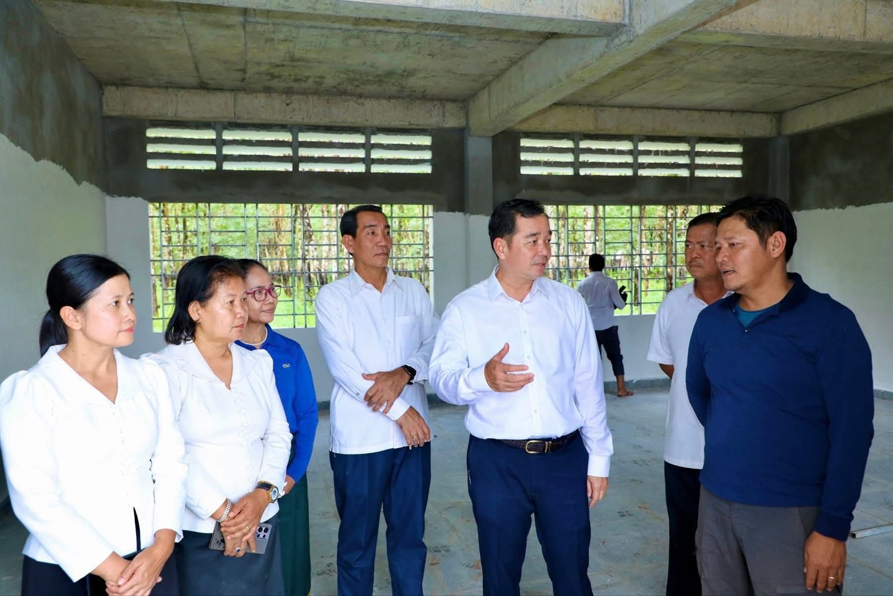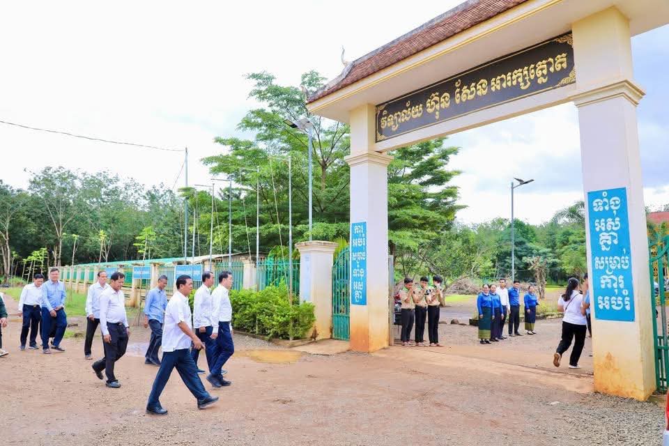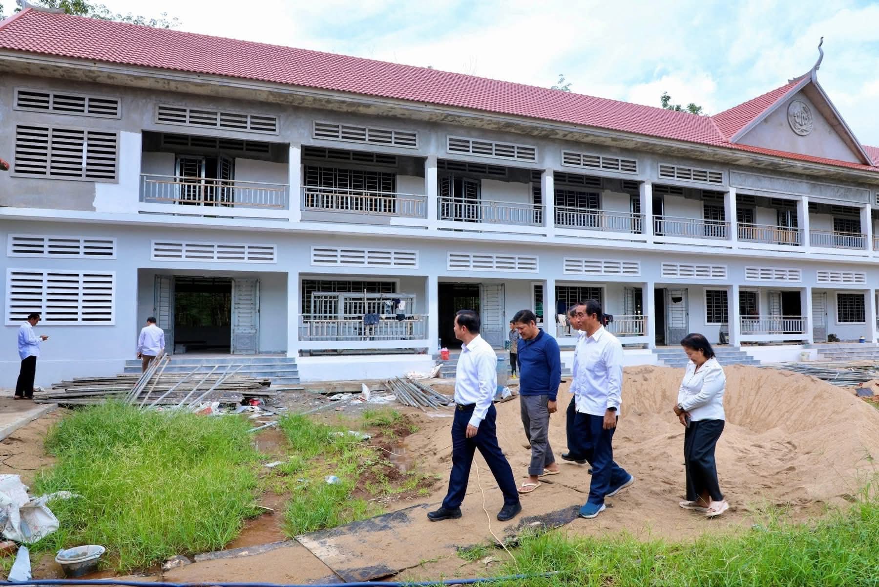 (កំពង់ចាម): អភិបាលនៃគណៈអភិបាលខេត្តកំពង់ចាម ឯកឧត្តម អ៊ុន ចាន់ដា នៅថ្ងៃទី៧ ខែវិច្ឆិកា ឆ្នាំ២០២៥នេះ បានដឹកនាំក្រុមការងារ និងមន្ត្រីពាក់ព័ន្ធ អញ្ជើញចុះពិនិត្យវឌ្ឍនភាពនៃការសាងសង់អគារសិក្សាថ្មី ១ខ្នង កម្ពស់ ២ជាន់ ស្ទើរនឹង ១២បន្ទប់ និង ទីចាច់ការ ១ខ្នង នៅវិទ្យាល័យ ហ៊ុន សែន អារក្សត្នោត ស្រុកស្ទឹងត្រង់ ដែលជាអំណោយដ៏ថ្លៃថ្លារបស់សម្តេចមហាបវរធិបតី ហ៊ុន ម៉ាណែត នាយករដ្ឋមន្ត្រីនៃ ព្រះរាជាណាចក្រកម្ពុជា ។