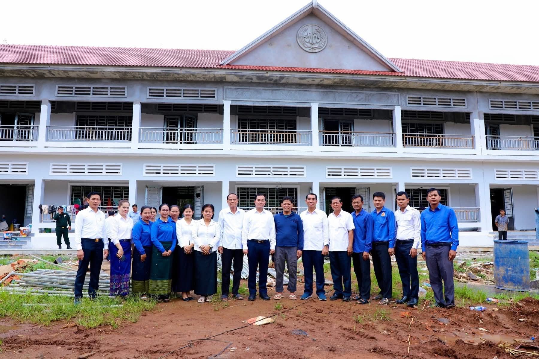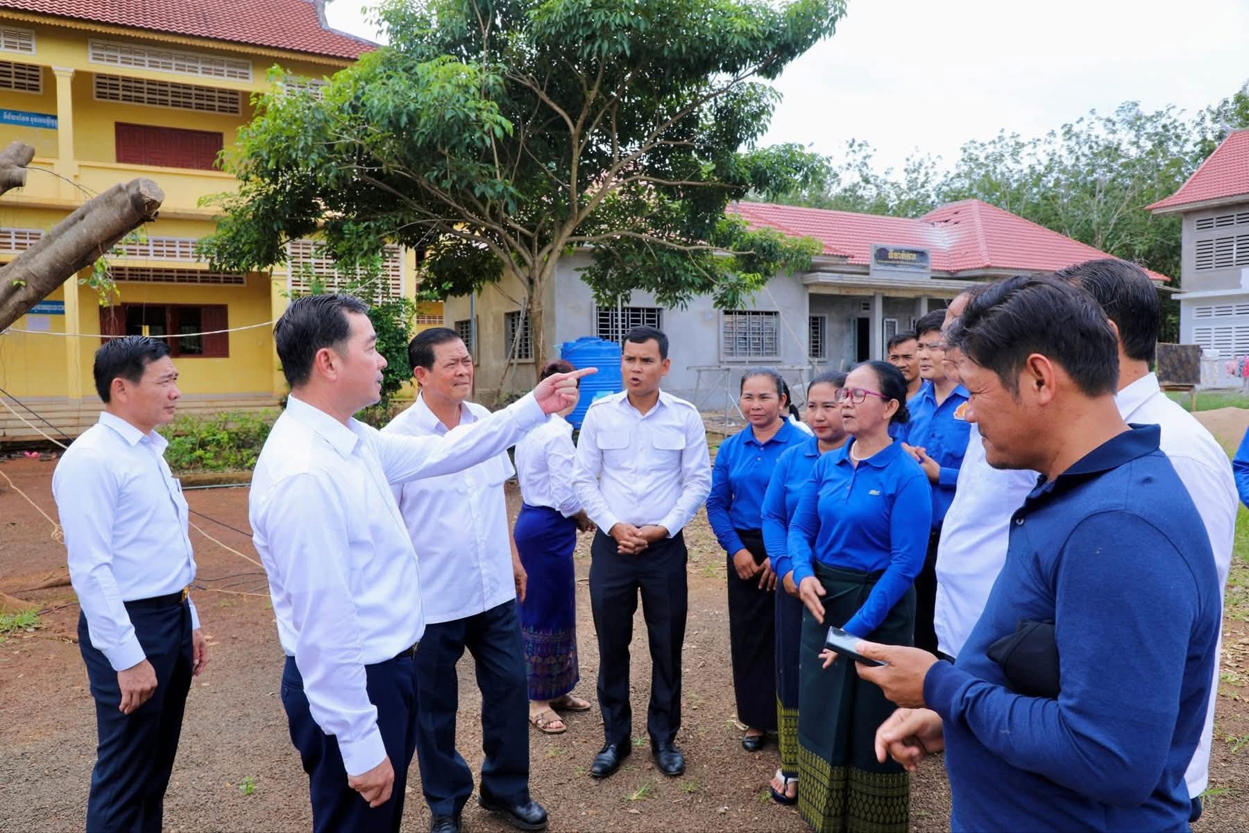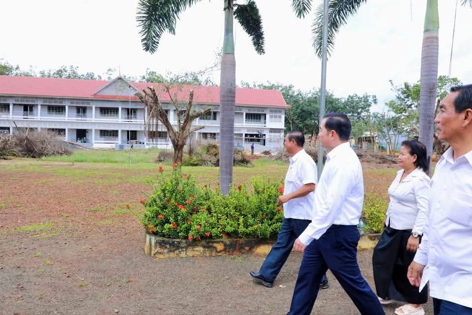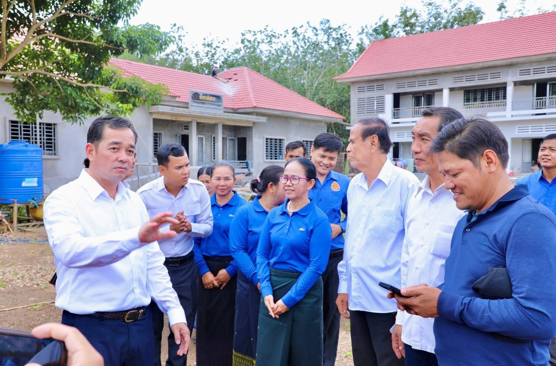 (កំពង់ចាម): អភិបាលនៃគណៈអភិបាលខេត្តកំពង់ចាម ឯកឧត្តម អ៊ុន ចាន់ដា នៅថ្ងៃទី៧ ខែវិច្ឆិកា ឆ្នាំ២០២៥នេះ បានដឹកនាំក្រុមការងារ និងមន្ត្រីពាក់ព័ន្ធ អញ្ជើញចុះពិនិត្យវឌ្ឍនភាពនៃការសាងសង់អគារសិក្សាថ្មី ១ខ្នង កម្ពស់ ២ជាន់ ស្ទើរនឹង ១២បន្ទប់ និង ទីចាច់ការ ១ខ្នង នៅវិទ្យាល័យ ហ៊ុន សែន អារក្សត្នោត ស្រុកស្ទឹងត្រង់ ដែលជាអំណោយដ៏ថ្លៃថ្លារបស់សម្តេចមហាបវរធិបតី ហ៊ុន ម៉ាណែត នាយករដ្ឋមន្ត្រីនៃ ព្រះរាជាណាចក្រកម្ពុជា ។
