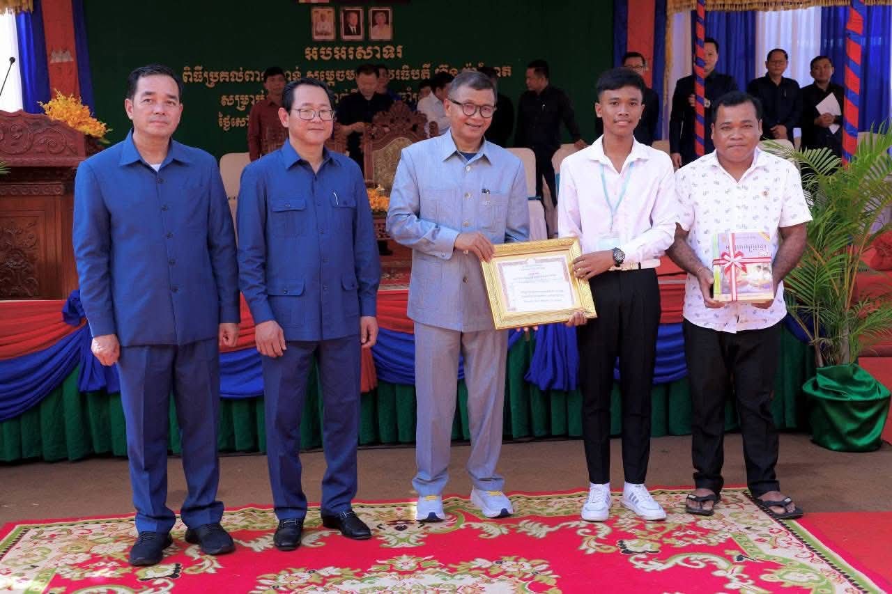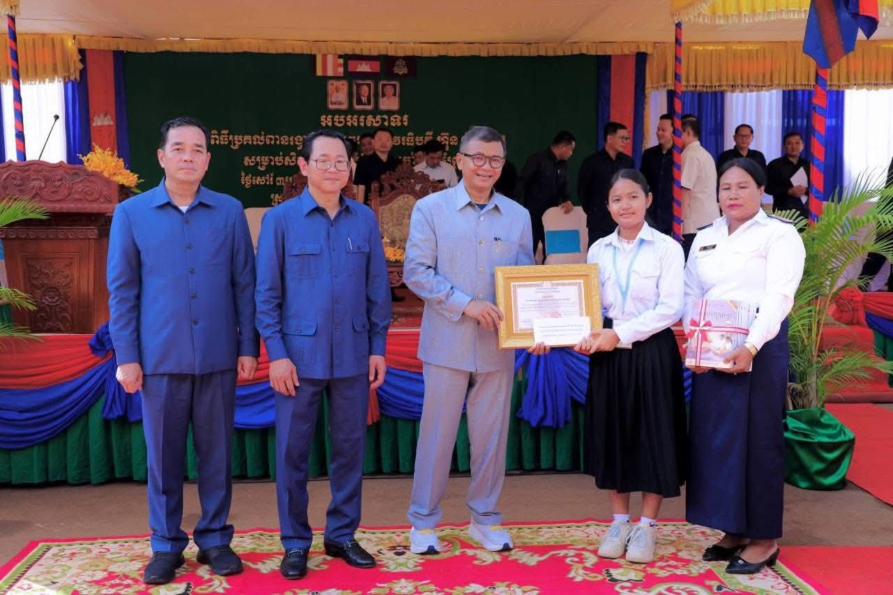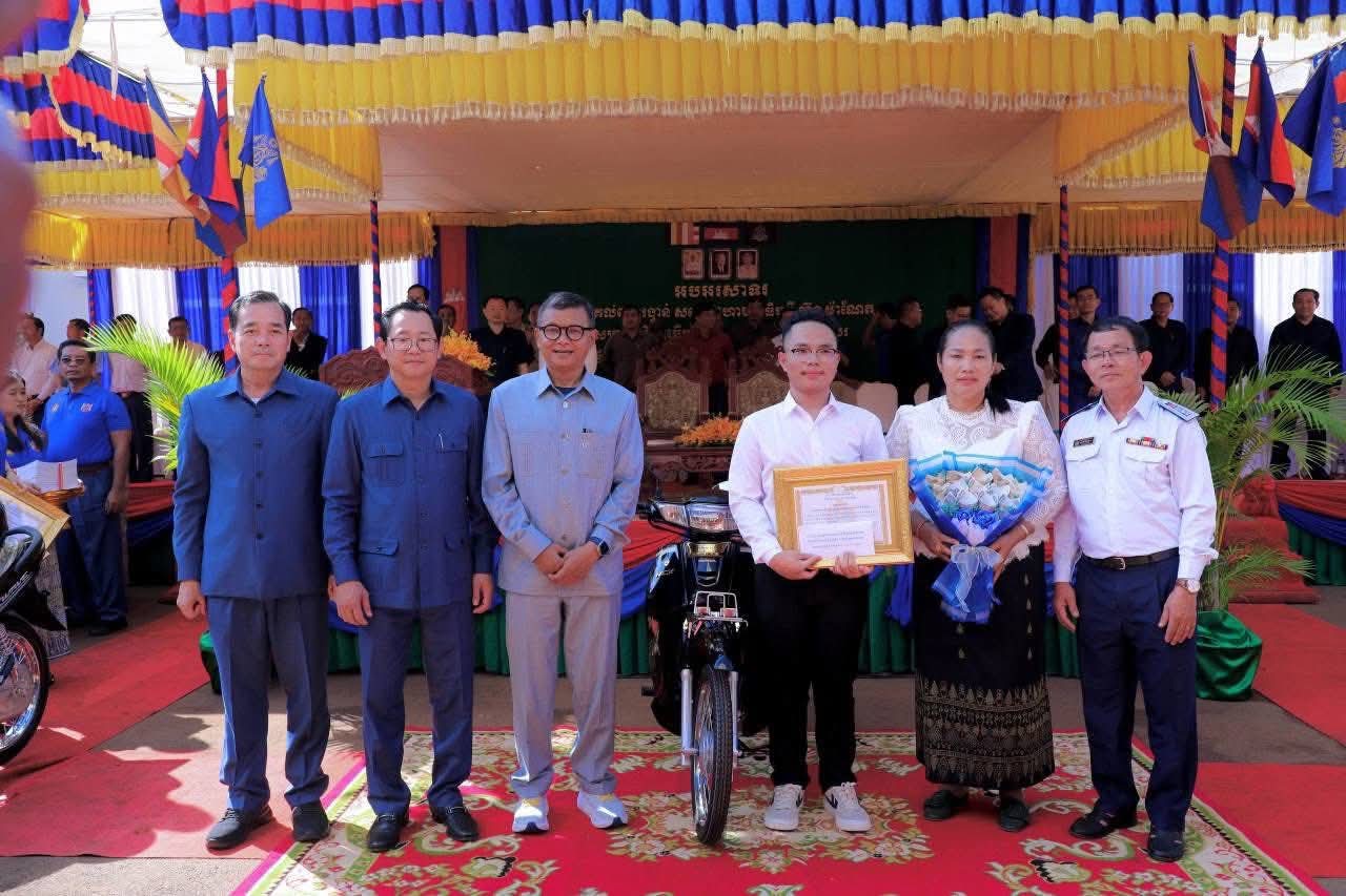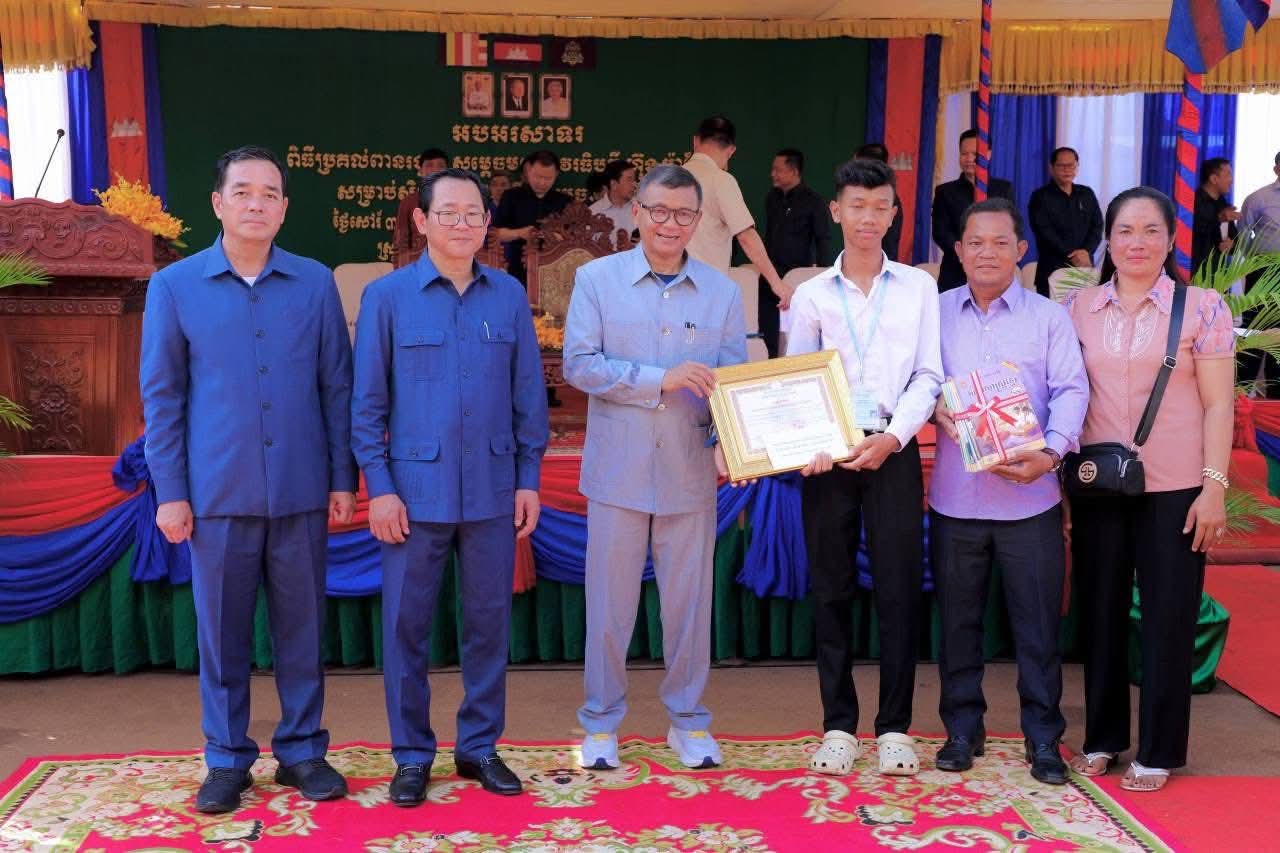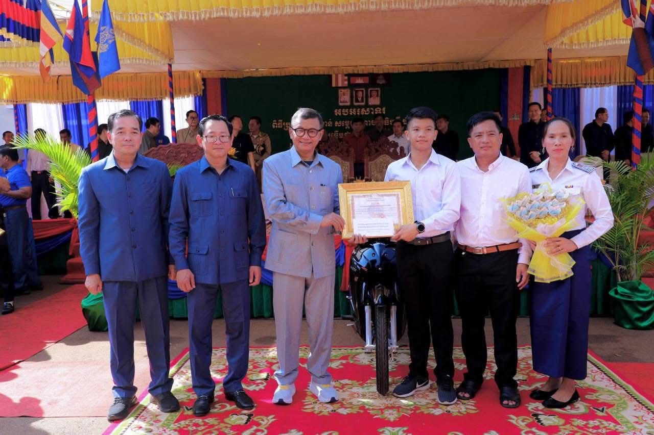(កំពង់ចាម) : ឯកឧត្តម អ៊ុន ចាន់ដា អភិបាលនៃគណៈអភិបាលខេត្តកំពង់ចាម នាព្រឹកថ្ងៃទី៨ ខែវិច្ឆិកា ឆ្នាំ២០២៥នេះ បានអញ្ជើញចូលរួមប្រគល់ពានរង្វាន់ សម្តេចមហាបវរធិបតី ហ៊ុន ម៉ាណែត សម្រាប់ សិស្សឆ្នើមថ្នាក់ទី១០ ប្រចាំស្រុកព្រៃឈរ ឆ្នាំសិក្សា២០២៤-២០២៥ ក្រោមអធិបតីភាពឯកឧត្តម បណ្ឌិតសភាចារ្យ ហង់ជួន ណារ៉ុន ឧបនាយករដ្ឋមន្ត្រី រដ្ឋមន្ត្រីក្រសួង អប់រំ យុវជន និងកីឡា និង ឯកឧត្តម កើត រិទ្ធ ឧបនាយករដ្ឋមន្ត្រី រដ្ឋមន្ត្រីក្រសួងយុត្តិធម៌ ។