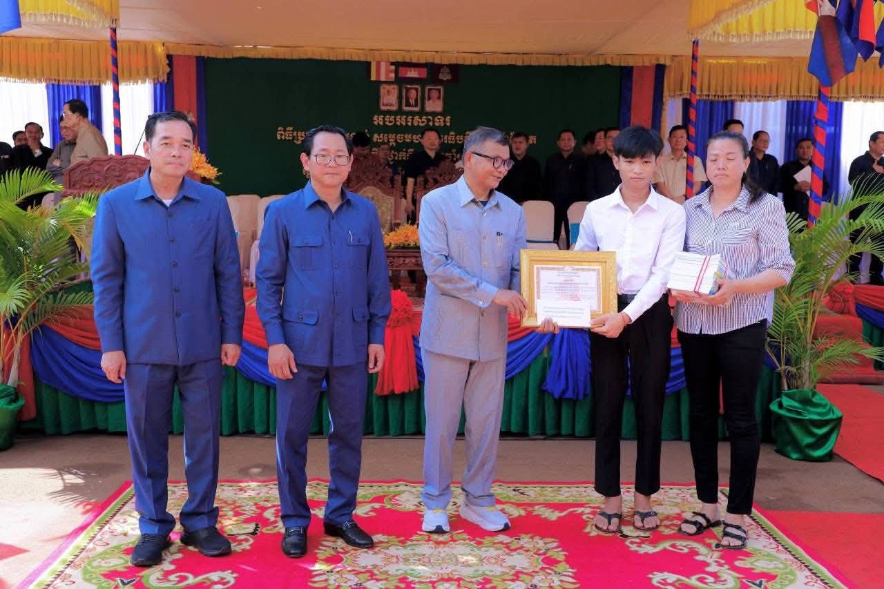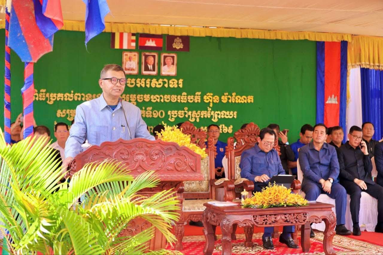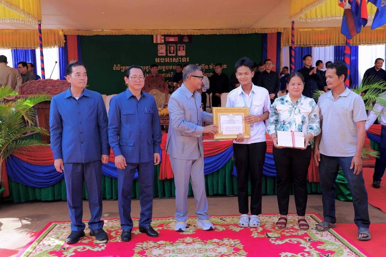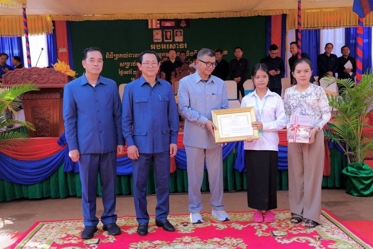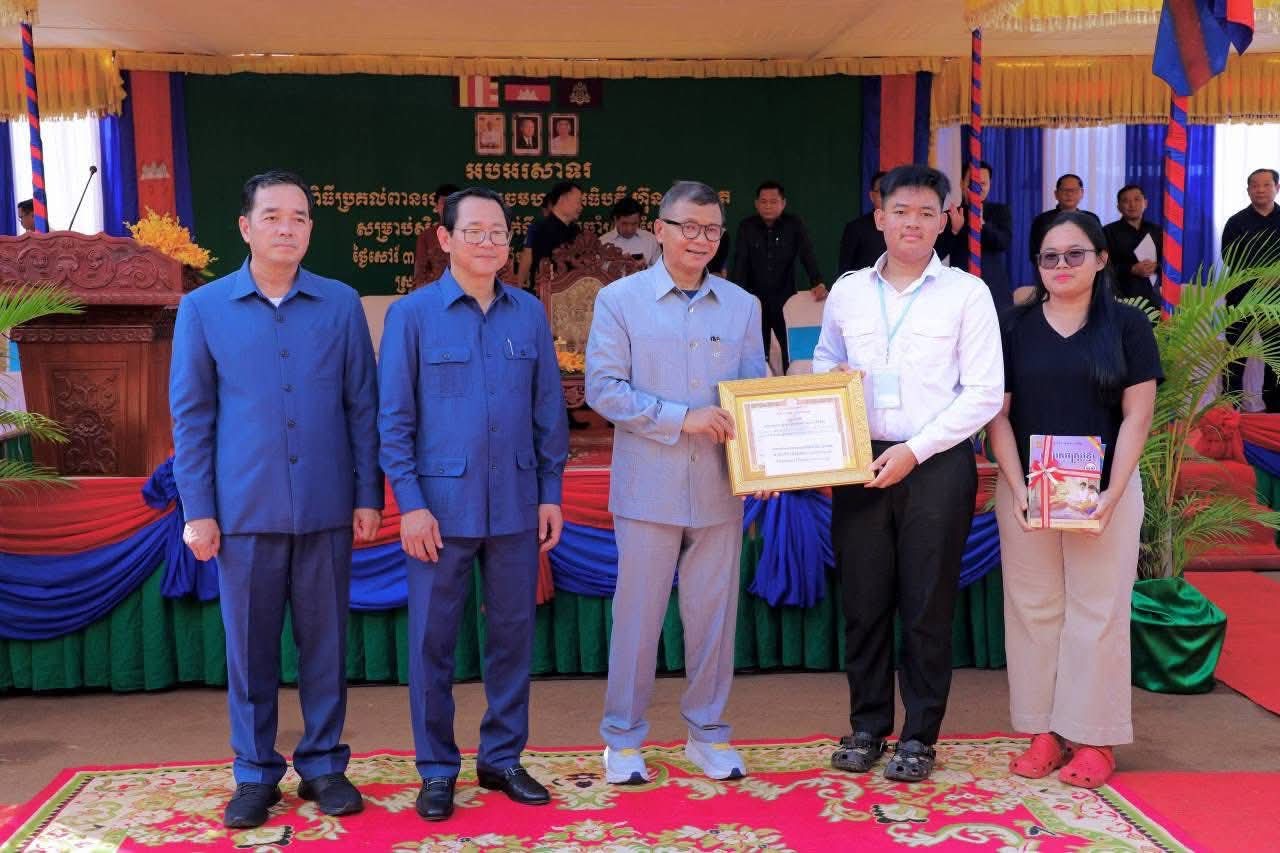 (កំពង់ចាម) : ឯកឧត្តម អ៊ុន ចាន់ដា អភិបាលនៃគណៈអភិបាលខេត្តកំពង់ចាម នាព្រឹកថ្ងៃទី៨ ខែវិច្ឆិកា ឆ្នាំ២០២៥នេះ បានអញ្ជើញចូលរួមប្រគល់ពានរង្វាន់ សម្តេចមហាបវរធិបតី ហ៊ុន ម៉ាណែត សម្រាប់ សិស្សឆ្នើមថ្នាក់ទី១០ ប្រចាំស្រុកព្រៃឈរ ឆ្នាំសិក្សា២០២៤-២០២៥ ក្រោមអធិបតីភាពឯកឧត្តម បណ្ឌិតសភាចារ្យ ហង់ជួន ណារ៉ុន ឧបនាយករដ្ឋមន្ត្រី រដ្ឋមន្ត្រីក្រសួង អប់រំ យុវជន និងកីឡា និង ឯកឧត្តម កើត រិទ្ធ ឧបនាយករដ្ឋមន្ត្រី រដ្ឋមន្ត្រីក្រសួងយុត្តិធម៌ ។