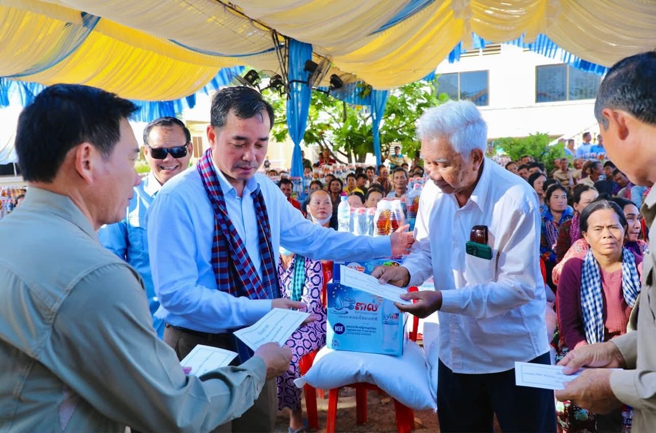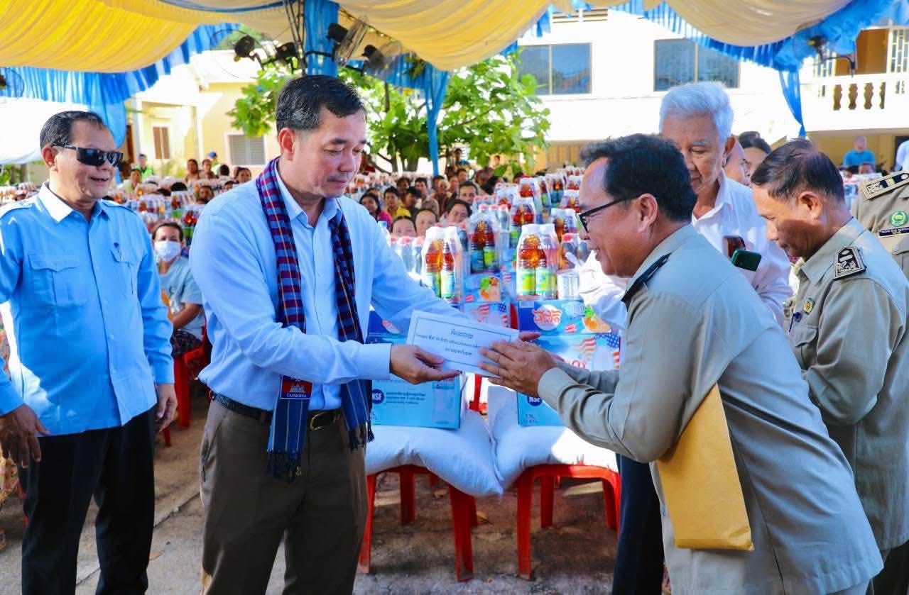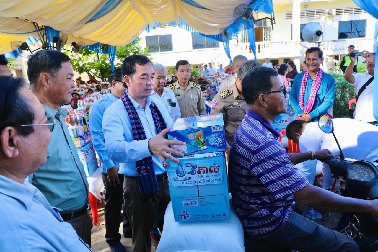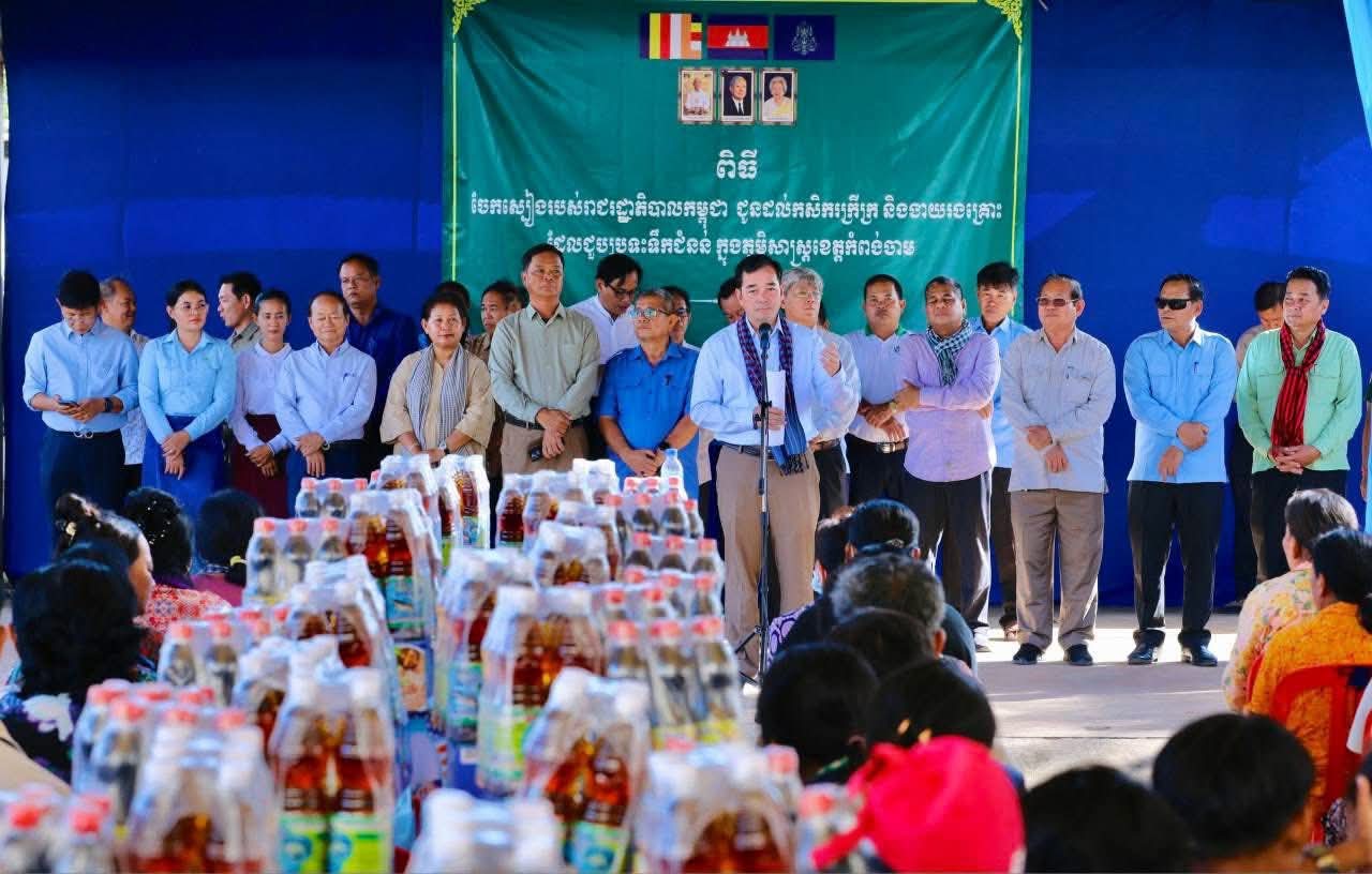 (កំពង់ចាម)÷ ដោយមើលឃើញពីភាពខ្វះខាត របស់ប្រជាពលរដ្ឋដោយរងគ្រោះដោយលិច លង់ផលដំណាំពីទឹកជំនន់ ធ្វើឲ្យជួបការលំបាកក្នុងការរស់នៅប្រចាំថ្ងៃ ឯកឧត្តម អ៊ុន ចាន់ដា អភិបាលនៃគណៈអភិបាលខេត្តកំពង់ចាម នារសៀលថ្ងៃទី១៣ ខែវិច្ឆិកា ឆ្នាំ២០២៥ បានដឹកនាំក្រុមការងារខេត្ត អញ្ជើញចុះផ្តល់ជំនួយឧបត្ថម្ភ ជាគ្រឿង ឧបភោគបរិភោគ ជូនប្រជាពលរដ្ឋចំនួន១៧១ គ្រួសារ នៅទូទាំងស្រុកកោះសូទិន ខេត្តកំពង់ចាម ស្ថិតនៅសាលាស្រុកកោះសូទិន។