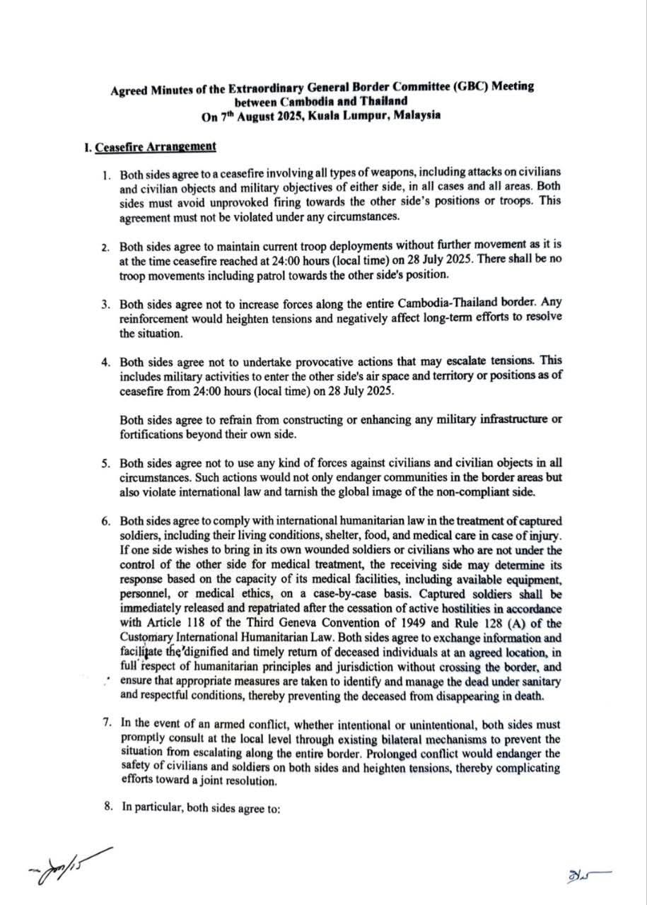 កិច្ចប្រជុំនេះជាការអនុវត្តនូវចំណុចដែលបានឯកភាពគ្នារវាងខ្ញុំ និងឯកឧត្ដម Phumtham Wechayachai នាយករដ្ឋមន្ត្រីស្តីទីនៃព្រះរាជាណាចក្រថៃ នៅក្នុងកិច្ចប្រជុំពិសេសនៅទីក្រុង Putrajaya, ប្រទេសម៉ាឡេស៊ីកាលពីថ្ងៃទី២៨ ខែកក្កដា ឆ្នាំ២០២៥ ដែលសហរៀបចំដោយម៉ាឡេស៊ីនិងសហរដ្ឋអាមេរិកដោយមានការចូលរួមដ៏សកម្មពីសាធារណរដ្ឋប្រជាមានិតចិន។