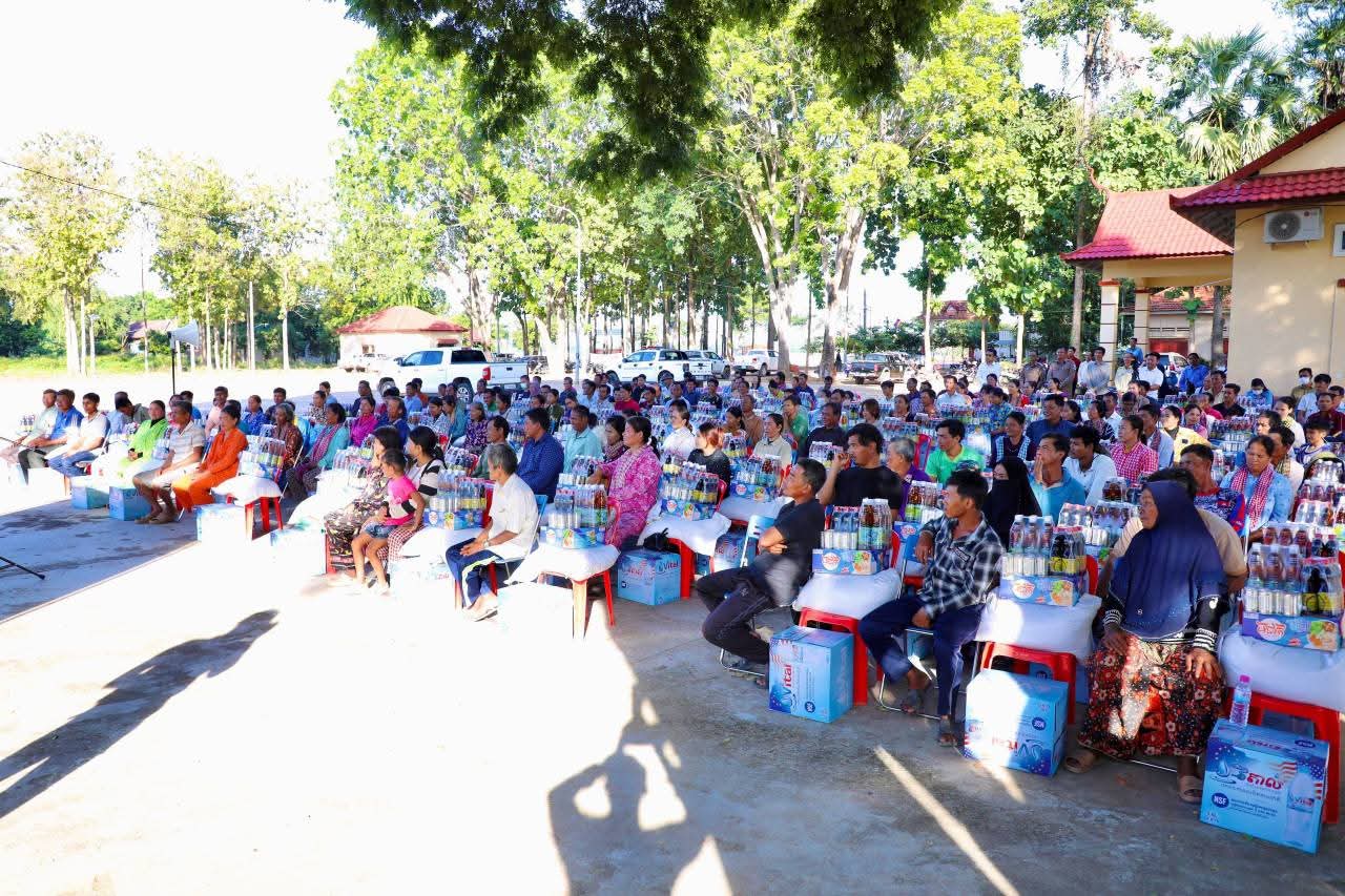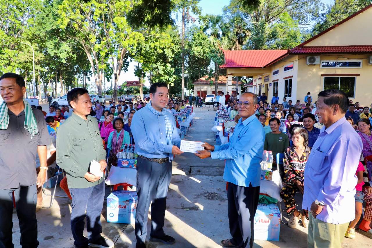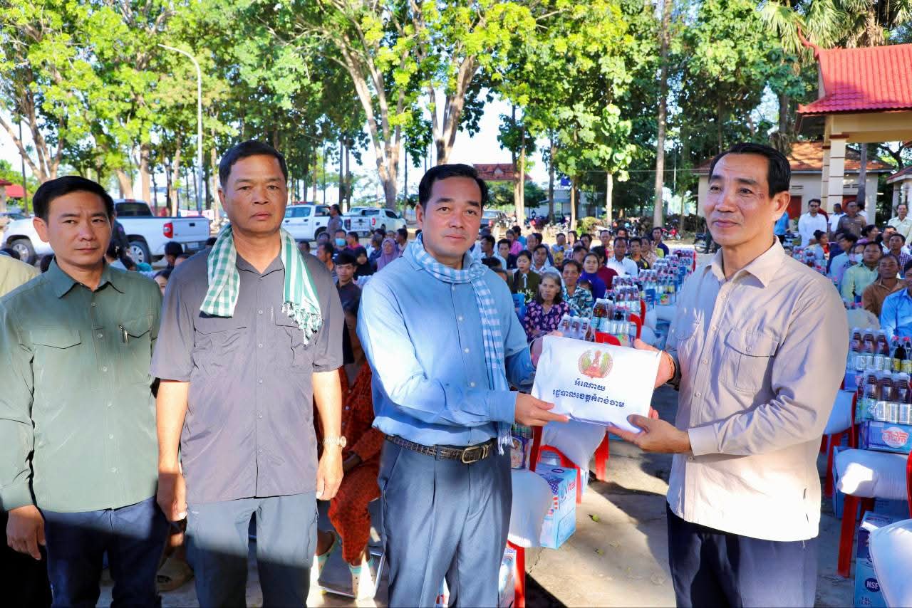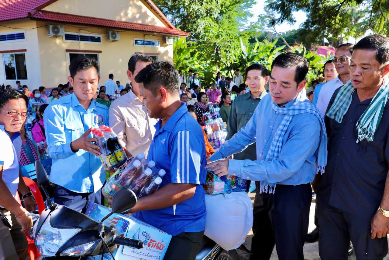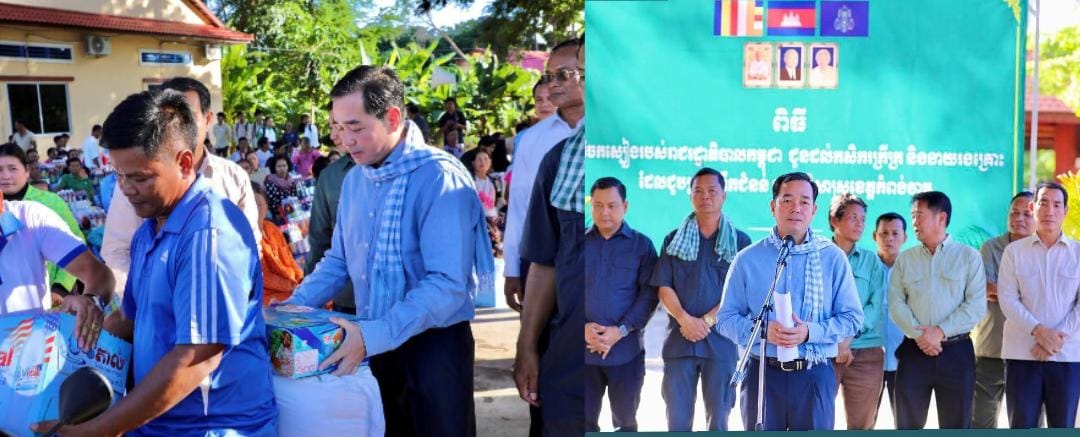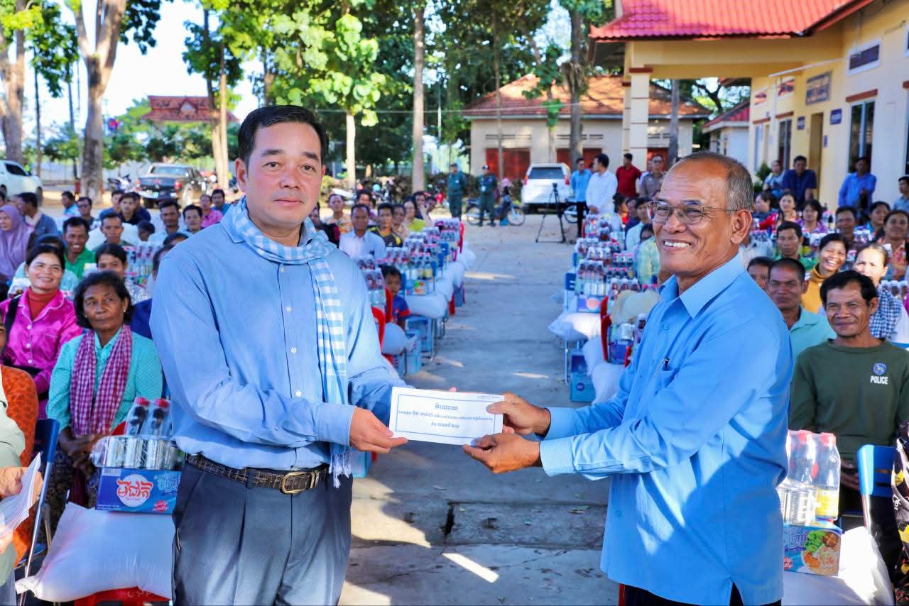 (កំពង់ចាម): ទឹកជំនន់ទន្លេមេគង្គ ឆ្នាំ2025 បណ្តាលឲ្យប្រជាពលរដ្ឋមួយមួយចំនួនទទួលរងគ្រោះ ដែលបណ្តាលឲ្យរងផលប៉ះពាល់ដល់ជីវភាពរស់នៅប្រចាំថ្ងៃ។ ដោយមើលឃើញពីការលំបាករបស់របស់បងប្អូនប្រជាពលរដ្ឋដែលទទួលរងគ្រោះទាំងនោះ នៅថ្ងៃទី14 ខែវិច្ឆិកា ឆ្នាំ2025 ឯកឧត្តម អ៊ុន ចាន់ដា អភិបាលនៃគណៈអភិបាលខេត្តកំពង់ចាម បានដឹកនាំក្រុមការងារខេត្ត អាជ្ញាធរមូលដ្ឋាន និងមន្ត្រីពាក់ព័ន្ធ អញ្ជើញចុះផ្តល់ជំនួយឧបត្ថម្ភជាគ្រឿងឧបភោគបរិភោគ របស់សម្តេចមាហាធិបតី ហ៊ុន ម៉ាណែត នាយករដ្ឋមន្ត្រីនៃកម្ពុជា ផ្តល់ជូនប្រជាពលរដ្ឋចំនួន154គ្រួសារ នៅទូទាំងស្រុកស្ទឹងត្រង់ ខេត្តកំពង់ចាម។
