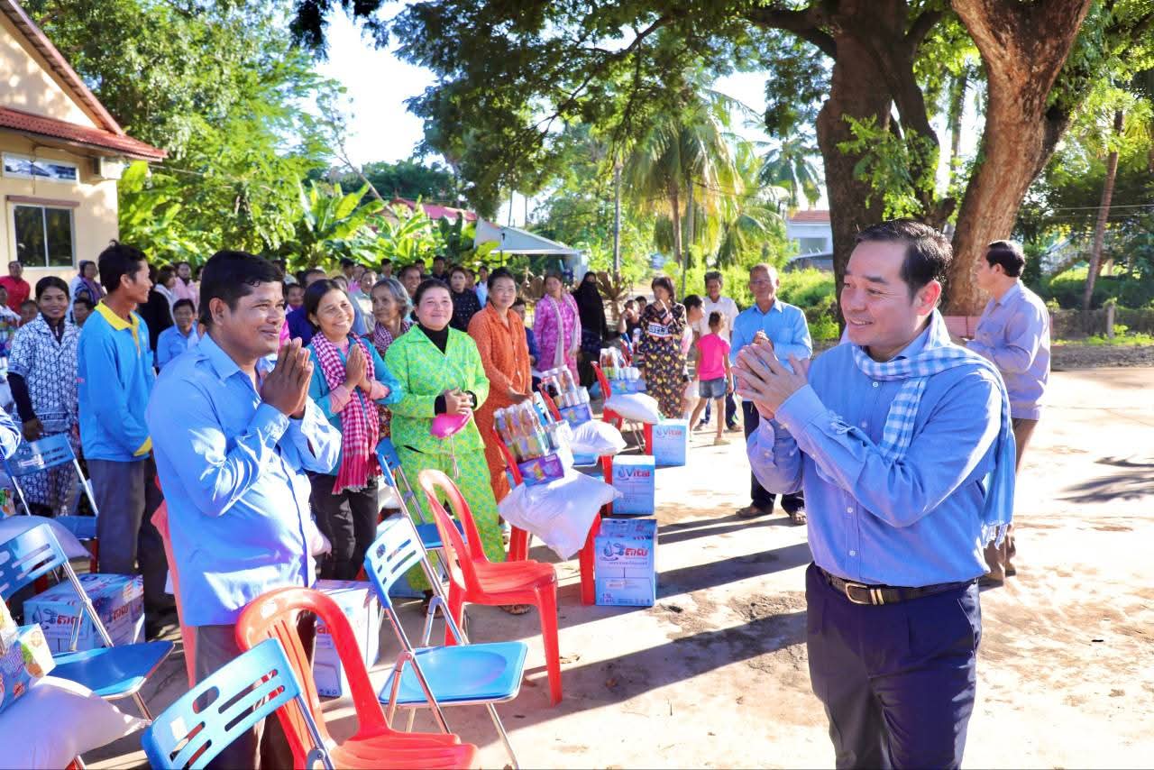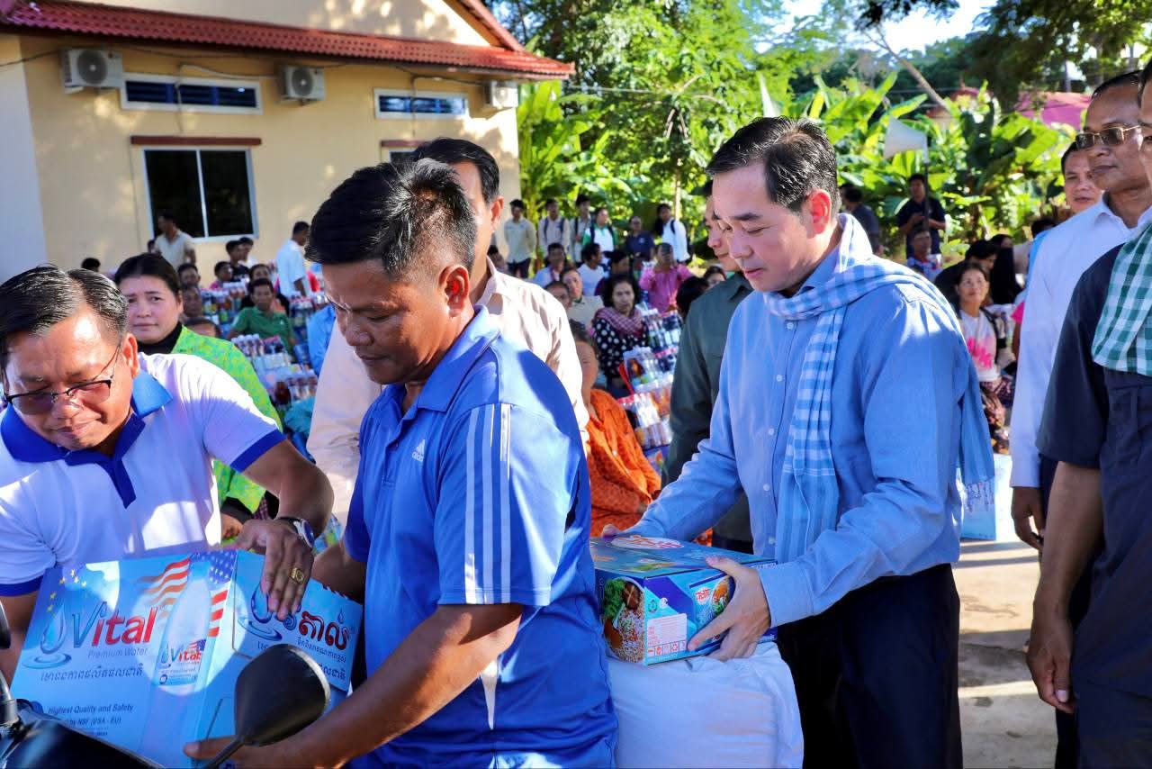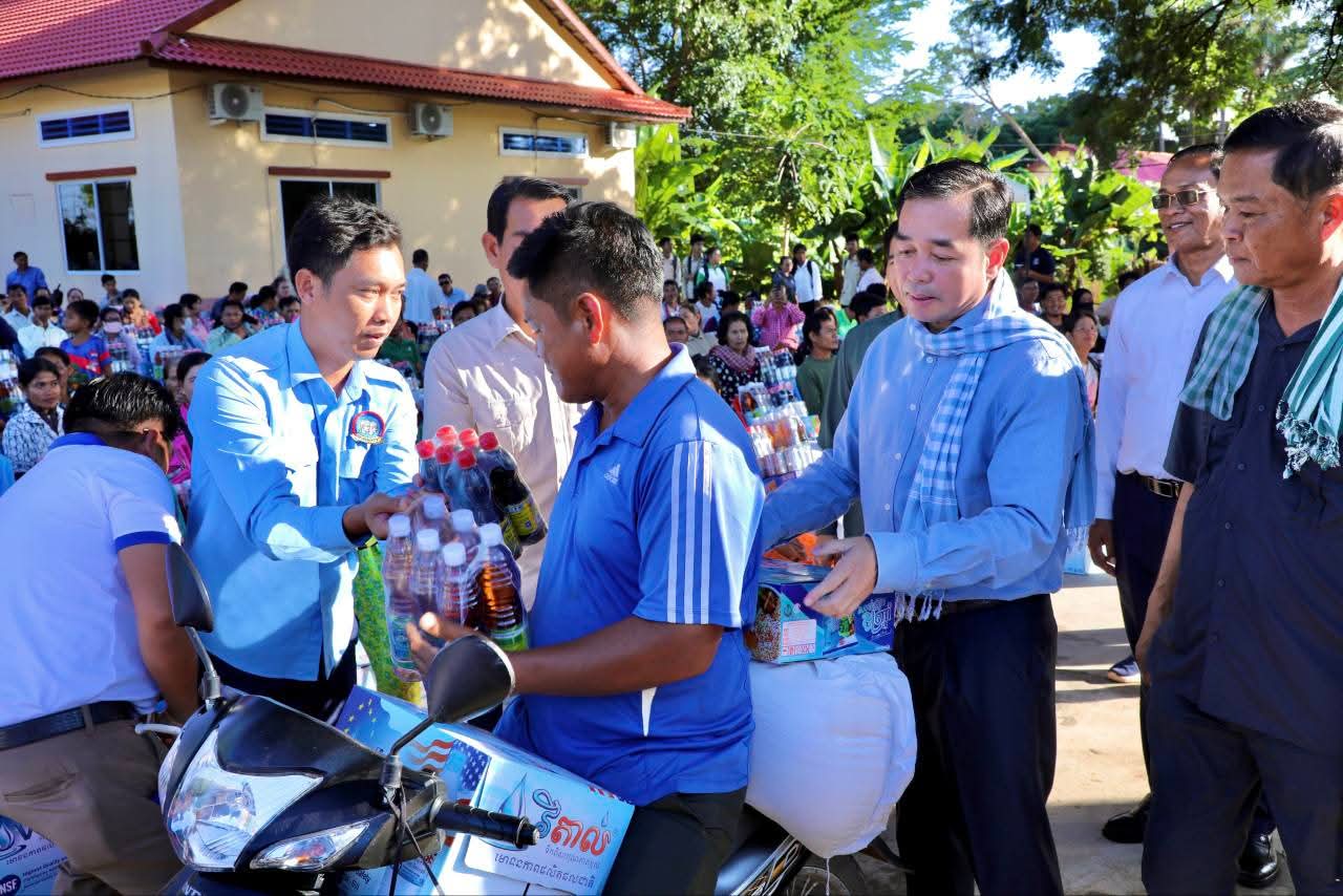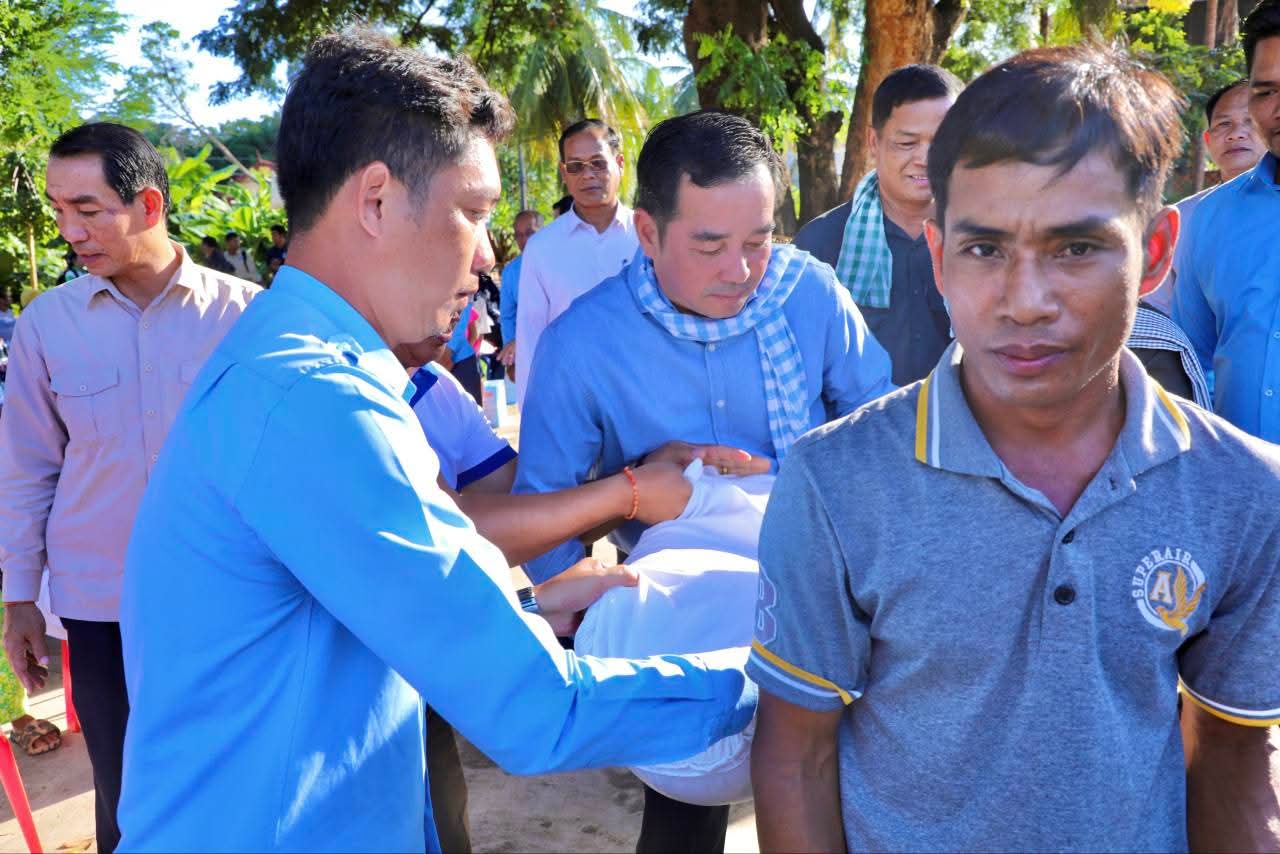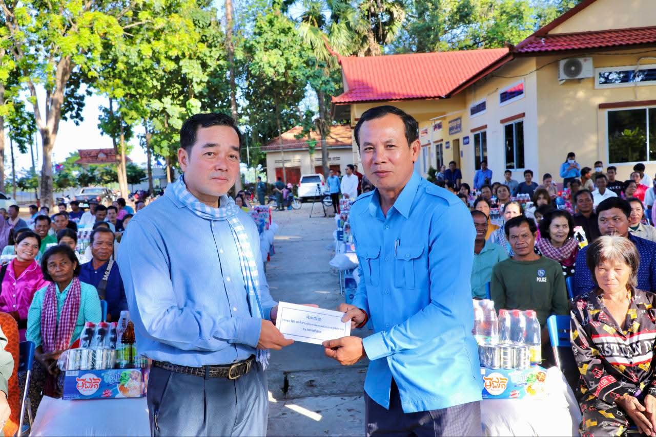 (កំពង់ចាម): ទឹកជំនន់ទន្លេមេគង្គ ឆ្នាំ2025 បណ្តាលឲ្យប្រជាពលរដ្ឋមួយមួយចំនួនទទួលរងគ្រោះ ដែលបណ្តាលឲ្យរងផលប៉ះពាល់ដល់ជីវភាពរស់នៅប្រចាំថ្ងៃ។ ដោយមើលឃើញពីការលំបាករបស់របស់បងប្អូនប្រជាពលរដ្ឋដែលទទួលរងគ្រោះទាំងនោះ នៅថ្ងៃទី14 ខែវិច្ឆិកា ឆ្នាំ2025 ឯកឧត្តម អ៊ុន ចាន់ដា អភិបាលនៃគណៈអភិបាលខេត្តកំពង់ចាម បានដឹកនាំក្រុមការងារខេត្ត អាជ្ញាធរមូលដ្ឋាន និងមន្ត្រីពាក់ព័ន្ធ អញ្ជើញចុះផ្តល់ជំនួយឧបត្ថម្ភជាគ្រឿងឧបភោគបរិភោគ របស់សម្តេចមាហាធិបតី ហ៊ុន ម៉ាណែត នាយករដ្ឋមន្ត្រីនៃកម្ពុជា ផ្តល់ជូនប្រជាពលរដ្ឋចំនួន154គ្រួសារ នៅទូទាំងស្រុកស្ទឹងត្រង់ ខេត្តកំពង់ចាម។