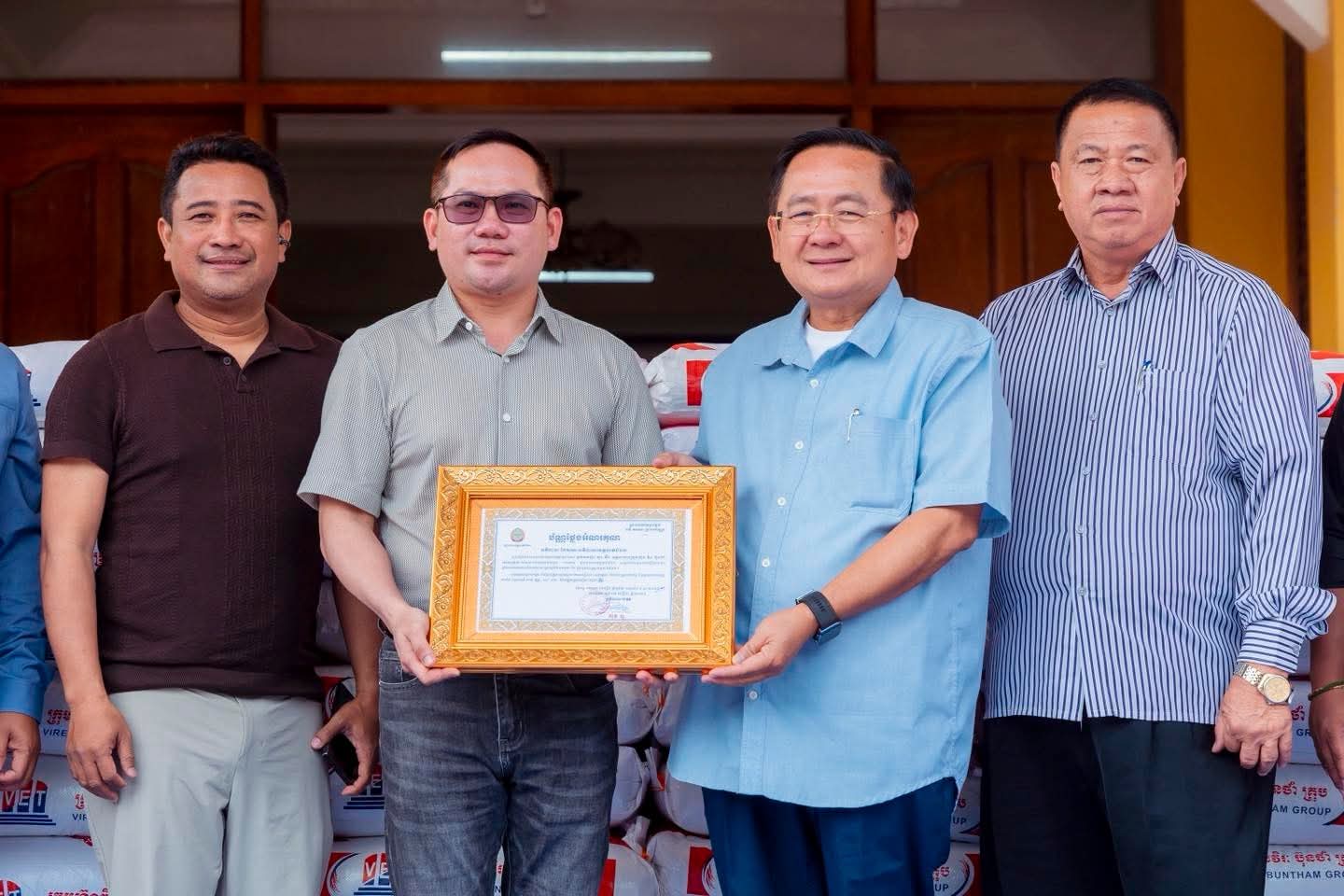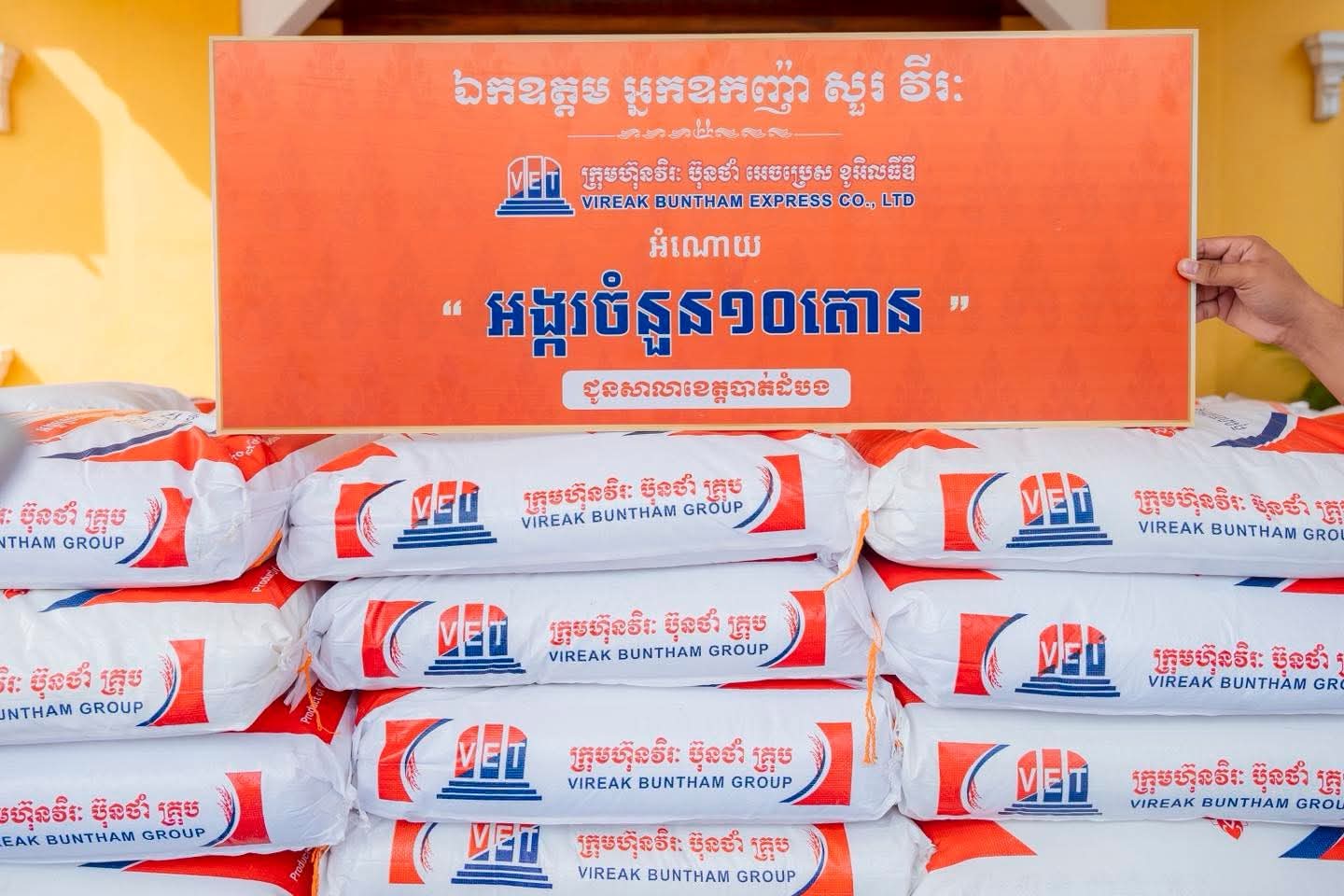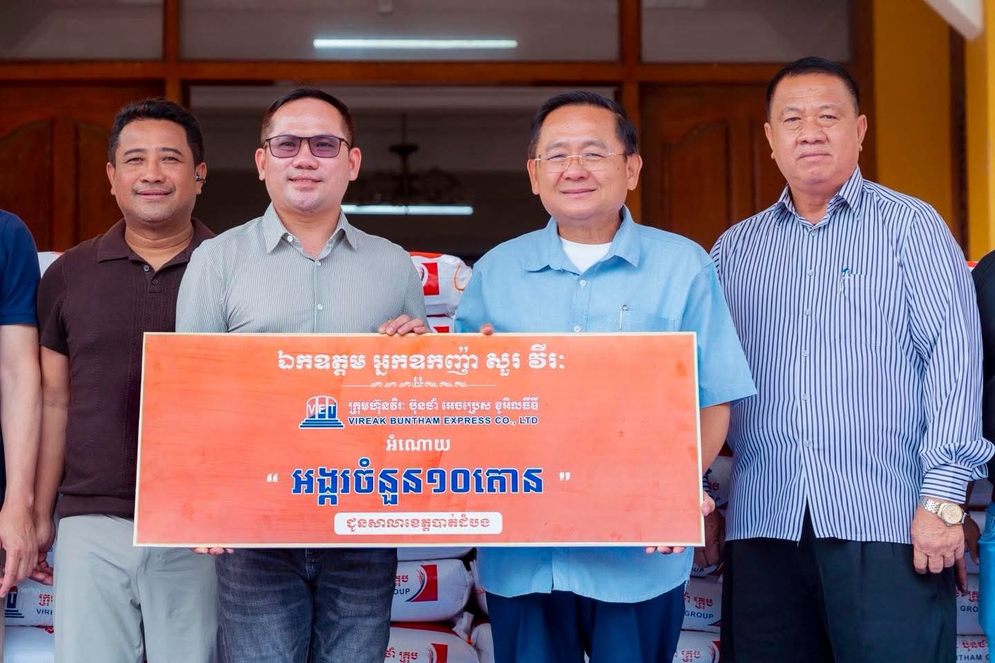 ក្នុងនាមរដ្ឋបាលខេត្តបាត់ដំបង ឯកឧត្តម សុខ លូ បានថ្លែងអំណរគុណយ៉ាងជ្រាលជ្រៅចំពោះ អ្នកឧកញ៉ា សួរ វីរៈ អគ្គនាយកក្រុមហ៊ុន វិរៈ ប៊ុនថាំ អេចប្រេសដែលបានឧបត្ថម្ភអំណោយជាអង្ករចំនួន១០តោន សម្រាប់ចូលរួមគាំទ្រដល់កងកម្លាំងជួរមុខ ដែលជាការចូលរួមចំណែកជួយជាតិ និងជាការលើកទឹកចិត្តដល់វីរៈកងទ័ព ជួរមុខរបស់ប្រទេសកម្ពុជាយើង។