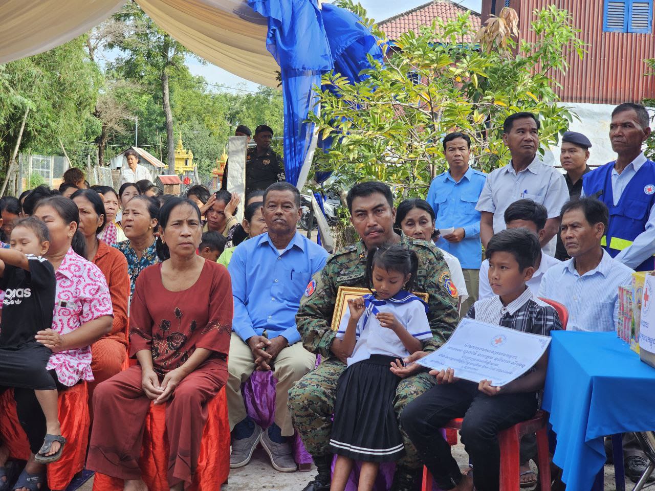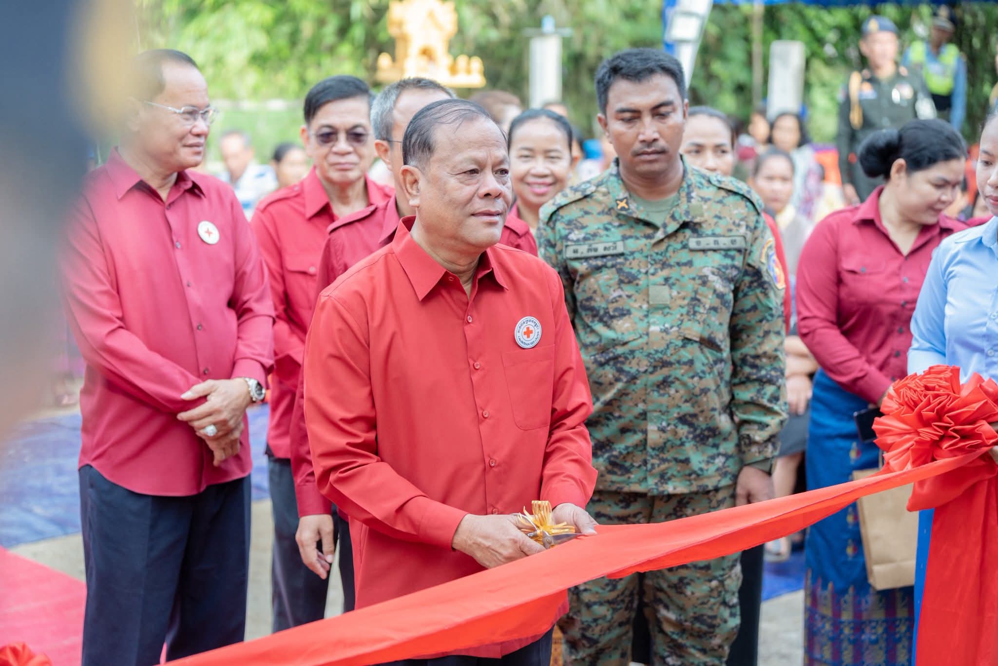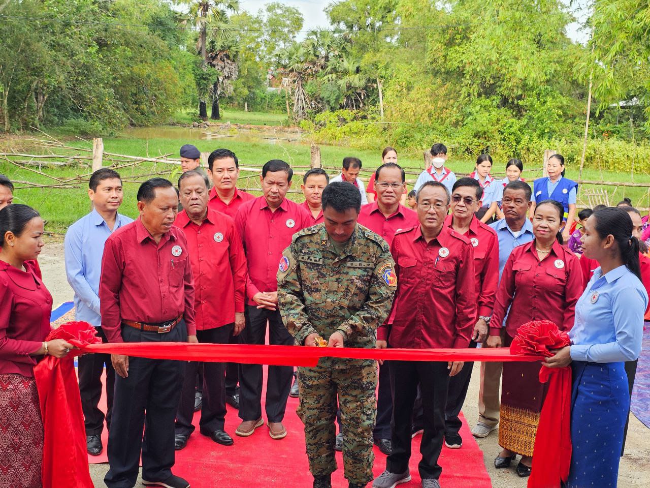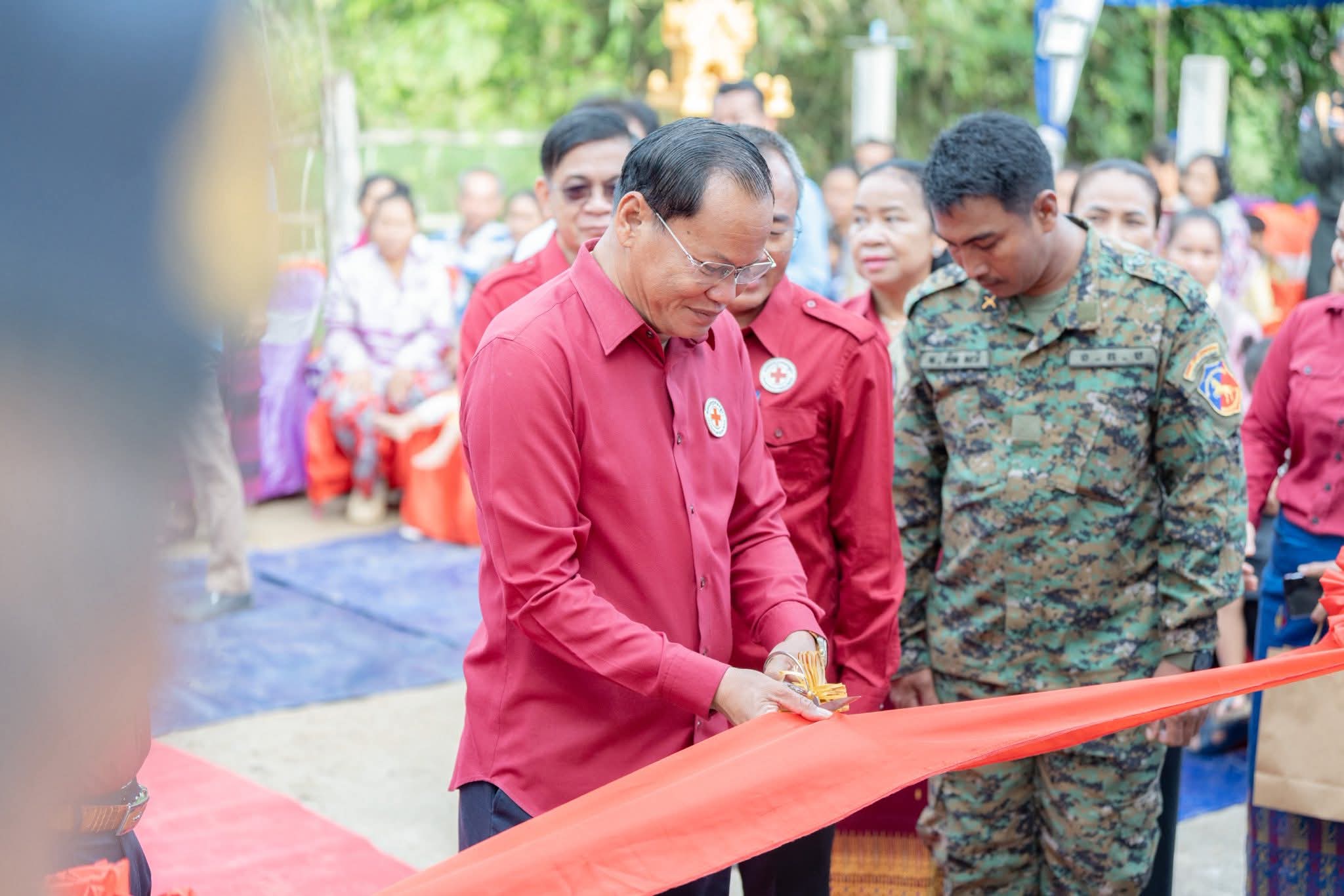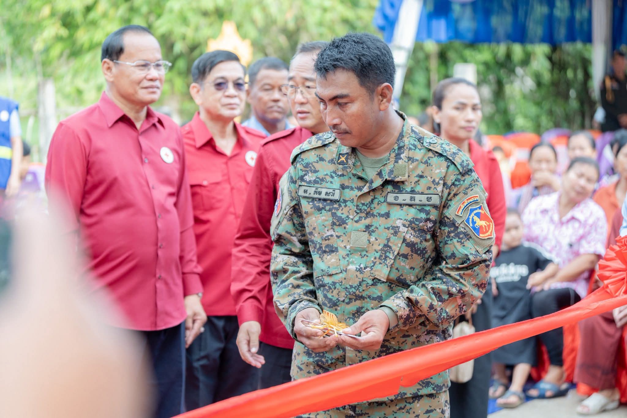 (ព្រៃវែង) ៖ នៅថ្ងៃទី១៩ ខែវិច្ឆិកា ឆ្នាំ២០២៥ ដោយទទួលបានប្រសាសន៍ណែនាំដ៏ខ្ពង់ខ្ពស់ពីសំណាក់ សម្តេចកិត្តិព្រឹត្តិបណ្ឌិត ប៊ុន រ៉ានី ហ៊ុនសែន ប្រធានកាកបាទក្រហមកម្ពុជា និងឯកឧត្តមអភិសន្តិបណ្ឌិត ស សុខា ប្រធានកិត្តិយស សាខាកាកបាទក្រហមកម្ពុជាខេត្តព្រៃវែង, ឯកឧត្ដម សួន សុម៉ាលីន អភិបាលខេត្តព្រៃវែង និងជាប្រធានគណៈកម្មាធិការសាខា និងថ្នាក់ដឹកនាំសាខាកាកបាទក្រហមកម្ពុជាខេត្ត បានសាងសង់ និងប្រគល់ផ្ទះ ១ខ្នង ធ្វើអំពីបេតុង ទំហំ(៥ម៉ែតត × ១១ម៉ែត) ជញ្ជាំងថ្ម ដំបូលប្រក់សង្ក័សី ដែលជាអំណោយដ៏ថ្លៃថ្លារបស់ សម្តេចកិត្តិព្រឹត្តិបណ្ឌិត ប៊ុន រ៉ានី ហ៊ុនសែន ប្រធានកាកបាទក្រហមកម្ពុជា ជូនគ្រួសារលោកអនុសេនីយ៍ត្រី គឹម សារី ដែលបម្រើការងារនៅកងពលលេខ៩ ខេត្តព្រះវិហារ និងជាស្វាមីរបស់សពស្ត្រីមានផ្ទៃពោះ ទទួលមរណៈភាព កាលពីថ្ងៃទី១ ខែមិថុនា ឆ្នាំ២០២៥ ស្ថិតនៅភូមិកន្សោមអក ឃុំកន្សោមអក ស្រុកកំពង់ត្របែក ខេត្តព្រៃវែង។