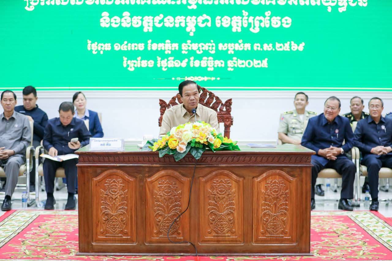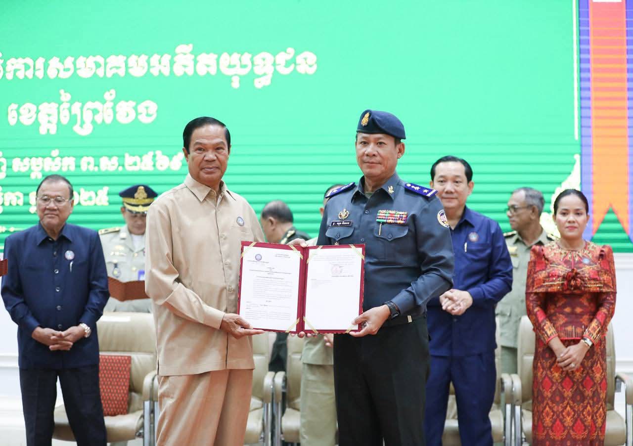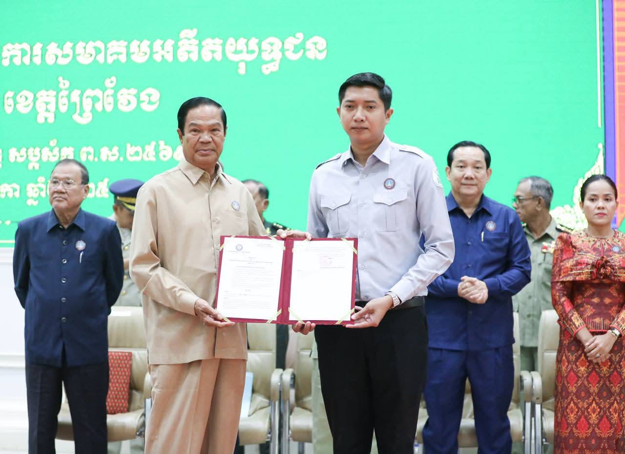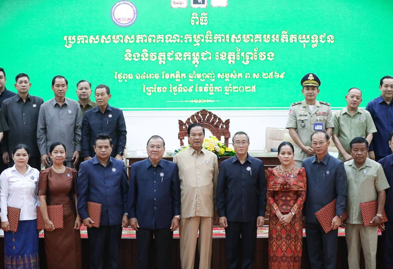 (ព្រៃវែង) :រសៀលថ្ងៃទី១៩ ខែវិច្ឆិកា ឆ្នាំ២០២៥នេះ ឯកឧត្តម ស្បោង សារ៉ាត ប្រធានក្រុមប្រឹក្សាខេត្ត និងឯកឧត្តម សួន សុម៉ាលីន អភិបាល នៃគណៈ អភិបាលខេត្តព្រៃវែង បានអញ្ជើញចូលរួមក្នុងកម្មវិធីប្រកាសសមាសភាពគណៈកម្មាធិការសមាគមអតីតយុទ្ធជន និងនិវត្តជនកម្ពុជាខេត្តព្រៃវែងក្រោមអធិបតីភាពដ៏ខ្ពង់ខ្ពស់ ឯកឧត្តម នាយឧត្តមសេនីយ៍ កិត្តសង្គហបណ្ឌិត គន់ គីម ទេសរដ្ឋមន្រ្តី អនុប្រធាននិងជាអគ្គលេខាធិការសហគមអតីតយុទ្ធជនកម្ពុជា ដែលប្រព្រឹត្តទៅនៅសាលប្រជុំធំ«A»សាលាខេត្តព្រៃវែង។ ដោយមានការអញ្ជើញចូលរួមពីប្រតិភូអមអំណើរ ឯកឧត្តមទេសរដ្ឋមន្រ្តី ឯកឧត្តម ប្រធានសាលាដំបូងខេត្ត ឯកឧត្តមព្រះរាជអាជ្ញាអមសាលាដំបូងខេត្ត ឯកឧត្តម លោកជំទាវ អភិបាលរងខេត្ត លោក លោកស្រី នាយក នាយករងរដ្ឋបាលសាលាខេត្ត មេបញ្ជាការកងកម្លាំងទាំងបី ប្រធានពន្ធនាគារខេត្ត នាយកទីចាត់ការ ប្រធានអង្គភាព ប្រធានផ្នែកចំណុះសាលាខេត្ត លោក លោកស្រី ប្រធានមន្ទីរអង្គភាពជុំវិញខេត្ត អភិបាលក្រុង ស្រុកទាំង១៣ អធិការដ្ឋាននគរបាលក្រុង ស្រុក មេបញ្ជាការមូលដ្ឋានកងរាជអាវុធហត្ថក្រុង ស្រុក មេបញ្ជាការផ្នែកសឹករងក្រុង ស្រុក ប្រធានការិយាល័យសង្គមកិច្ច និងសុខុមាលភាពសង្គមក្រុង ស្រុក មេឃុំ ចៅសង្កាត់ នាយប៉ុស្តិ៍នគរបាលរដ្ឋបាលឃុំ សង្កាត់ និងតំណាងនិវត្តជនដែលជាអតីតមន្រ្តីរាជការសុីវិល នៃក្រុងព្រៃវែងសរុបចំនួន ៥០០រូប។