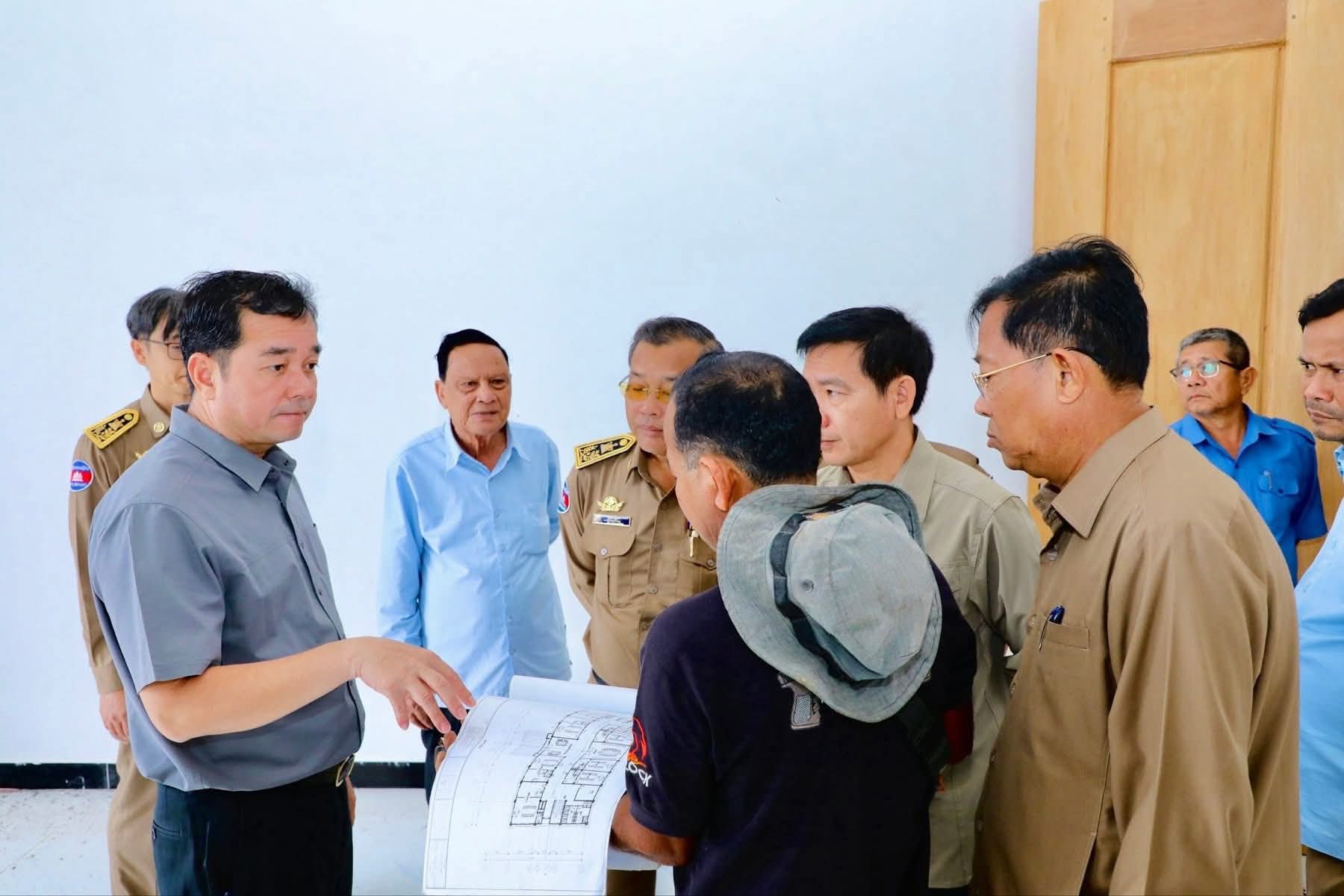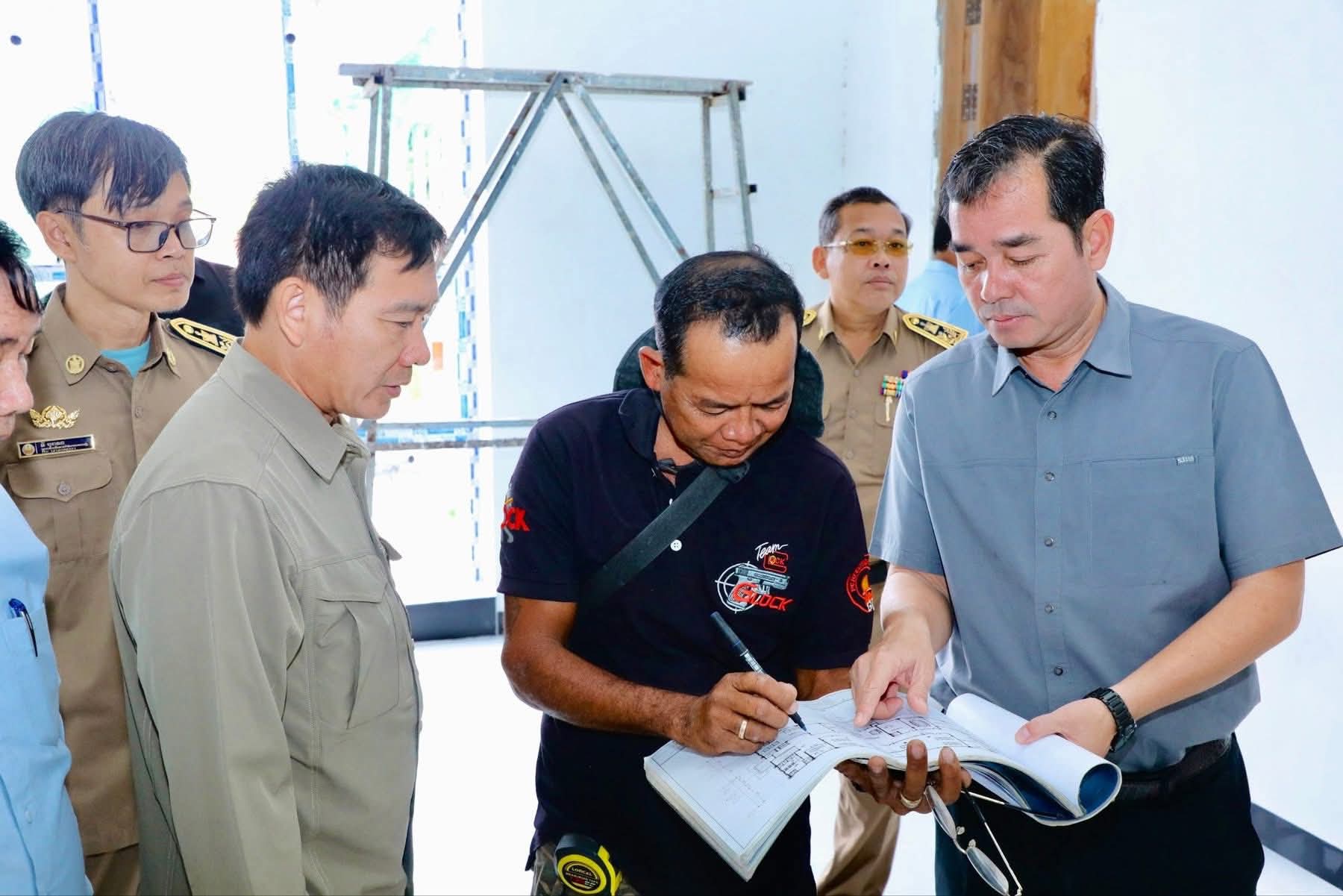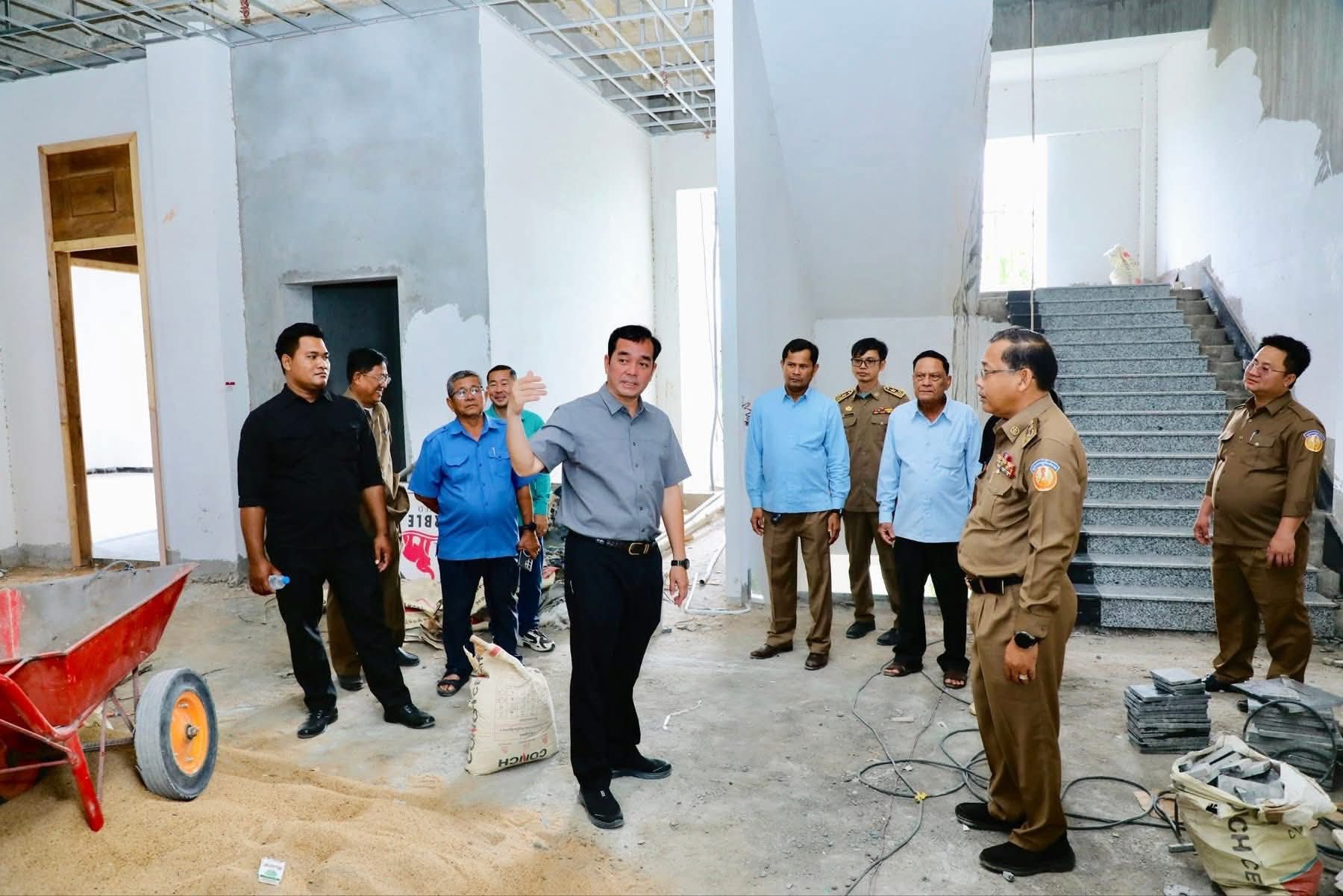 ឯកឧត្តមអភិបាលខេត្ត បានណែនាំដល់ក្រុមការងារជាង ធ្វេីយ៉ាងណាត្រូវសាងសង់អគាររដ្ឋបាលថ្មី ប្រកបដោយស្តង់ដារបច្ចេកទេសម ជាពិសេសត្រូវរៀបចំរចនាបទ និងសោភ័ណភាព ព្រមទាំងការកែលម្អនៅចំណុចខ្វះខាតមួយចំនួន ឱ្យបានឆាប់រួចរាល់ ដេីម្បីប្រារព្ធពិធីសម្ពោធដាក់ឱ្យប្រើប្រាស់ជាផ្លូវការ នៅមុនពេលចូលឆ្នាំថ្មី ប្រពៃណីជាតិខ្ខ្មែរ ឆ្នាំ2026 ខាងមុខ។