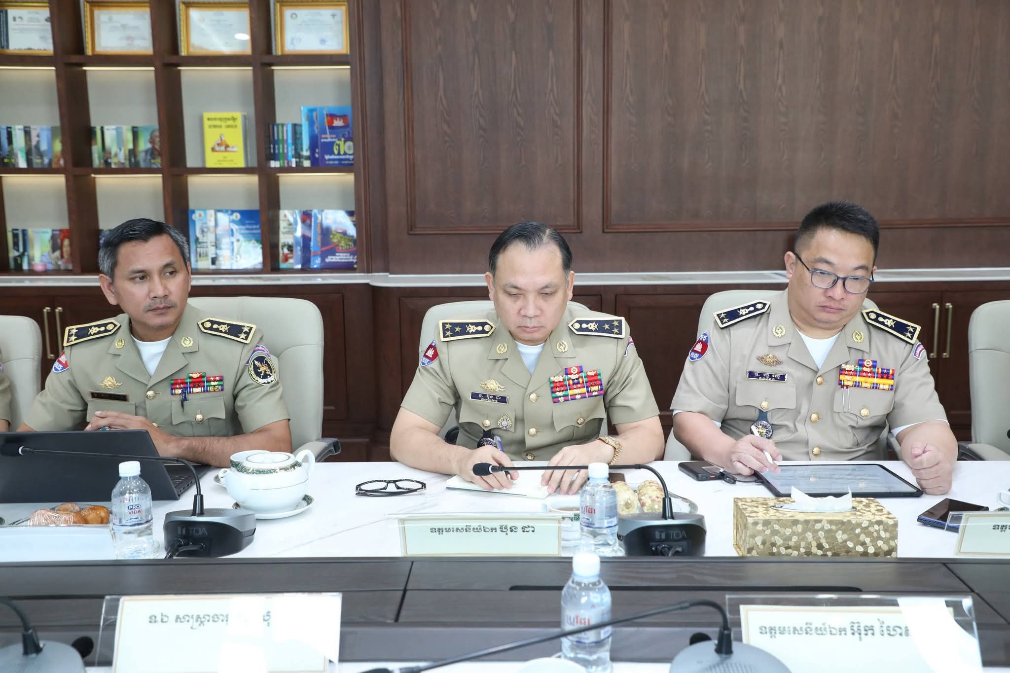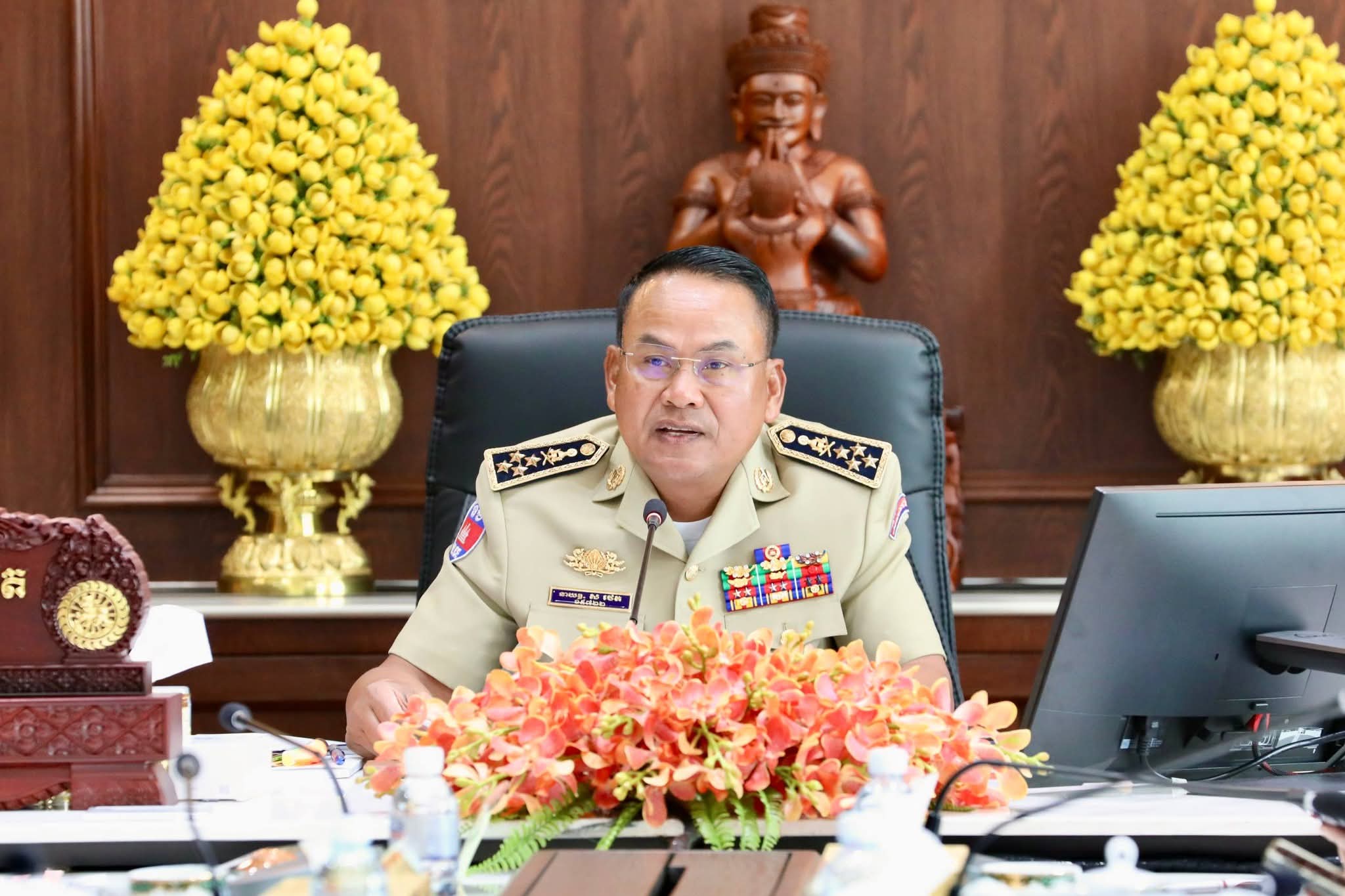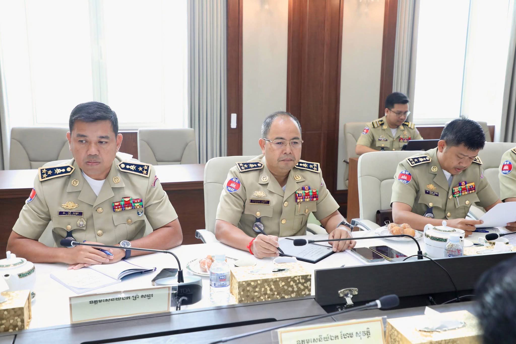 (ភ្នំពេញ) ៖ នាព្រឹកថ្ងៃសុក្រ ទី២១ ខែវិច្ឆិកា ឆ្នាំ២០២៥ នេះ ឯកឧត្តម នាយឧត្តមសេនីយ៍ ស ថេត អគ្គស្នងការនគរបាលជាតិ បានអញ្ជើញជាអធិបតីដឹកនាំកិច្ចប្រជុំពិនិត្យ វាយតម្លៃ និងដកពិសោធន៍កិច្ចប្រតិបត្តិការចុះបង្រ្កាបទីតាំងធ្វើសកម្មភាពឆបោកតាមប្រព័ន្ធបច្ចេកវិទ្យា (Online Scams) ៕