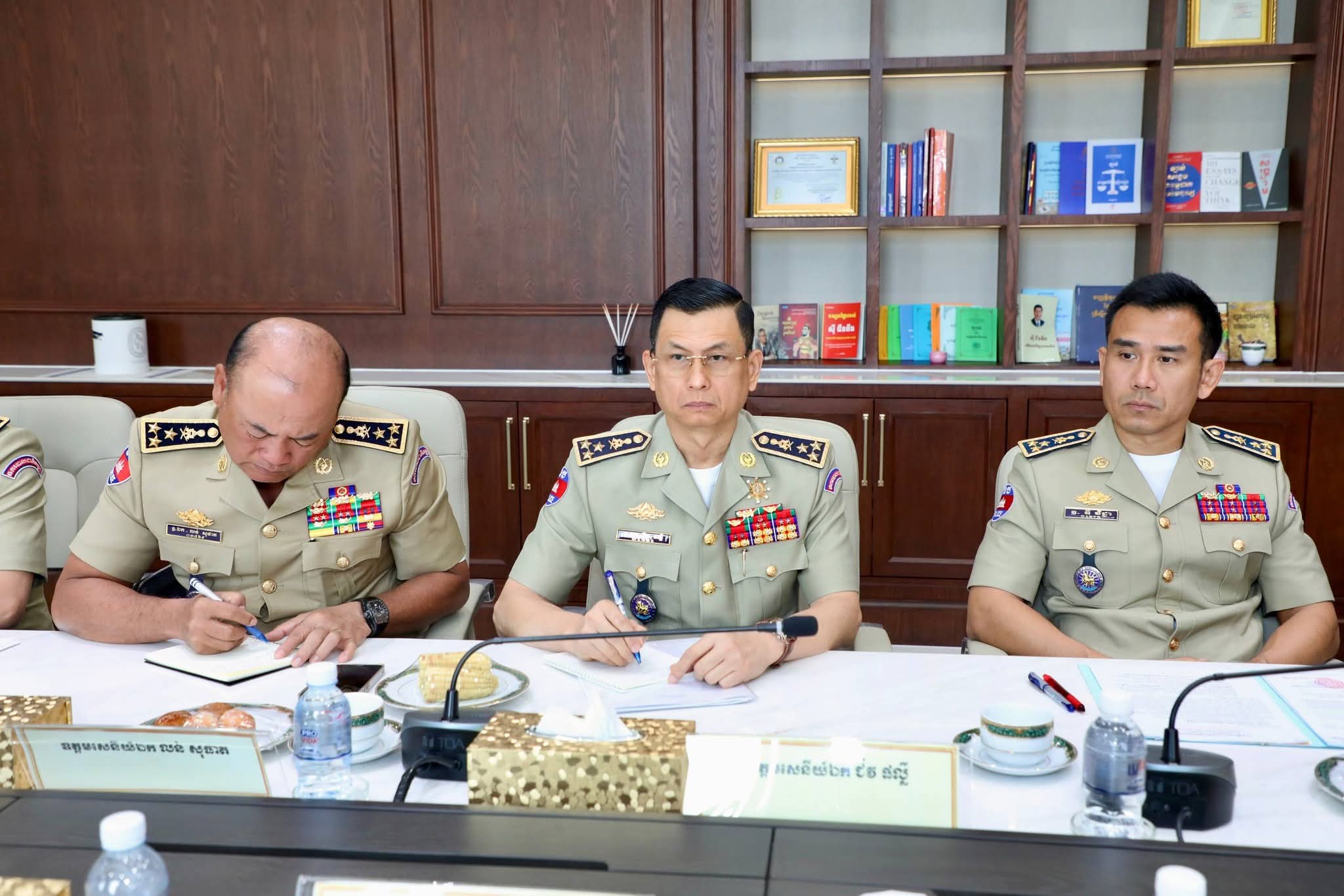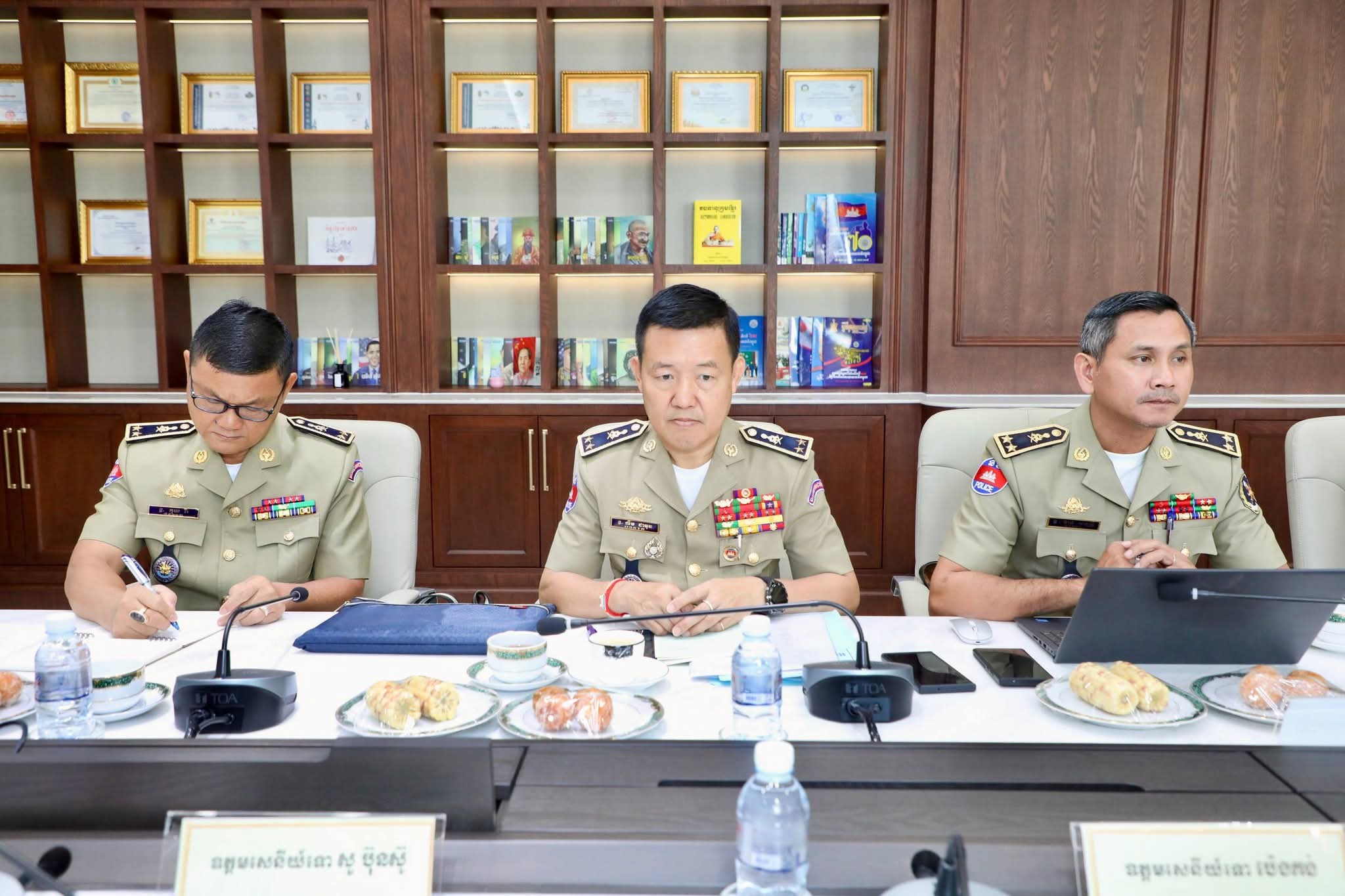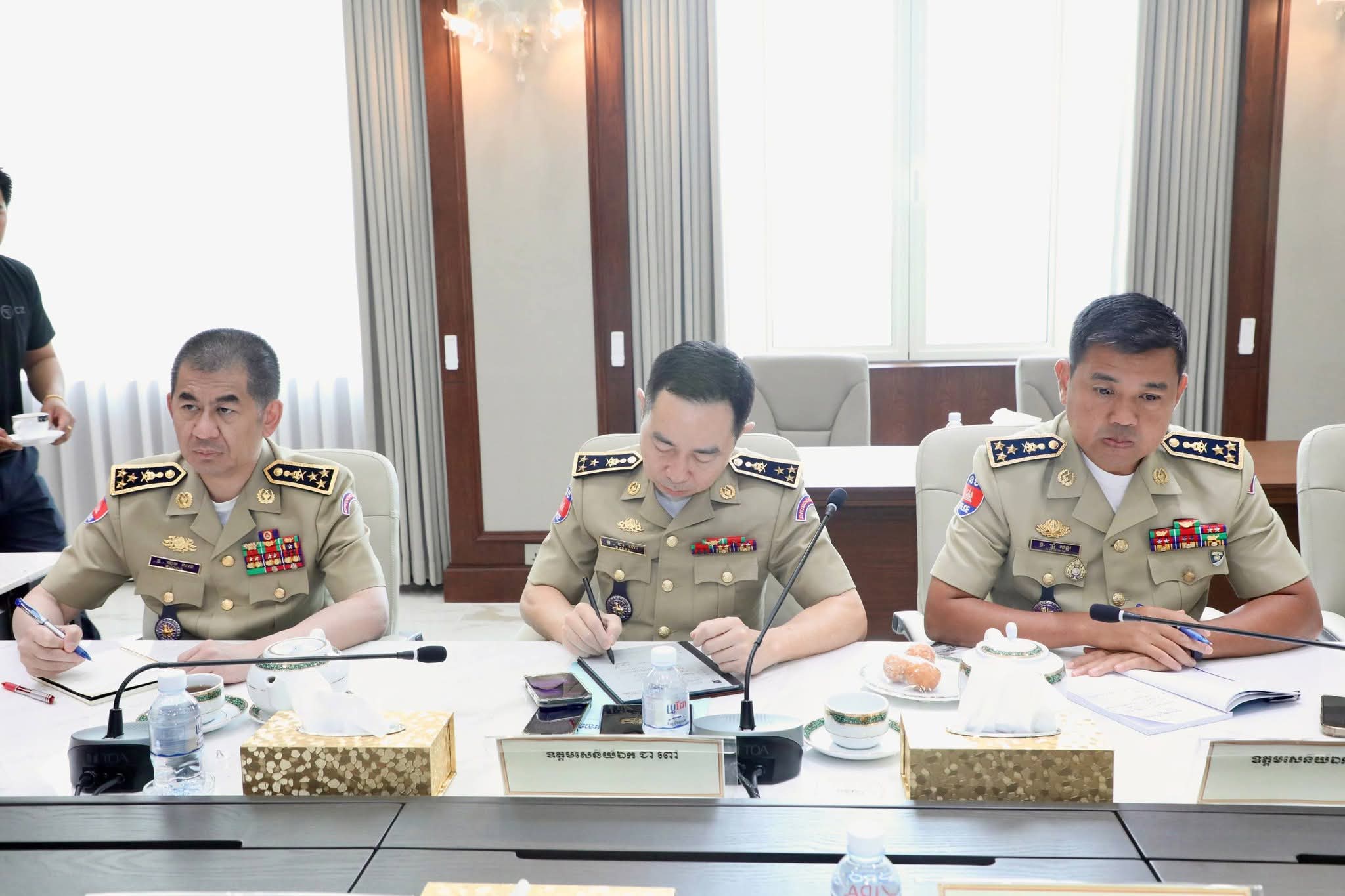 (ភ្នំពេញ) ៖ នាព្រឹកថ្ងៃសុក្រ ទី២១ ខែវិច្ឆិកា ឆ្នាំ២០២៥ នេះ ឯកឧត្តម នាយឧត្តមសេនីយ៍ ស ថេត អគ្គស្នងការនគរបាលជាតិ បានអញ្ជើញជាអធិបតីដឹកនាំកិច្ចប្រជុំពិនិត្យ វាយតម្លៃ និងដកពិសោធន៍កិច្ចប្រតិបត្តិការចុះបង្រ្កាបទីតាំងធ្វើសកម្មភាពឆបោកតាមប្រព័ន្ធបច្ចេកវិទ្យា (Online Scams) ៕