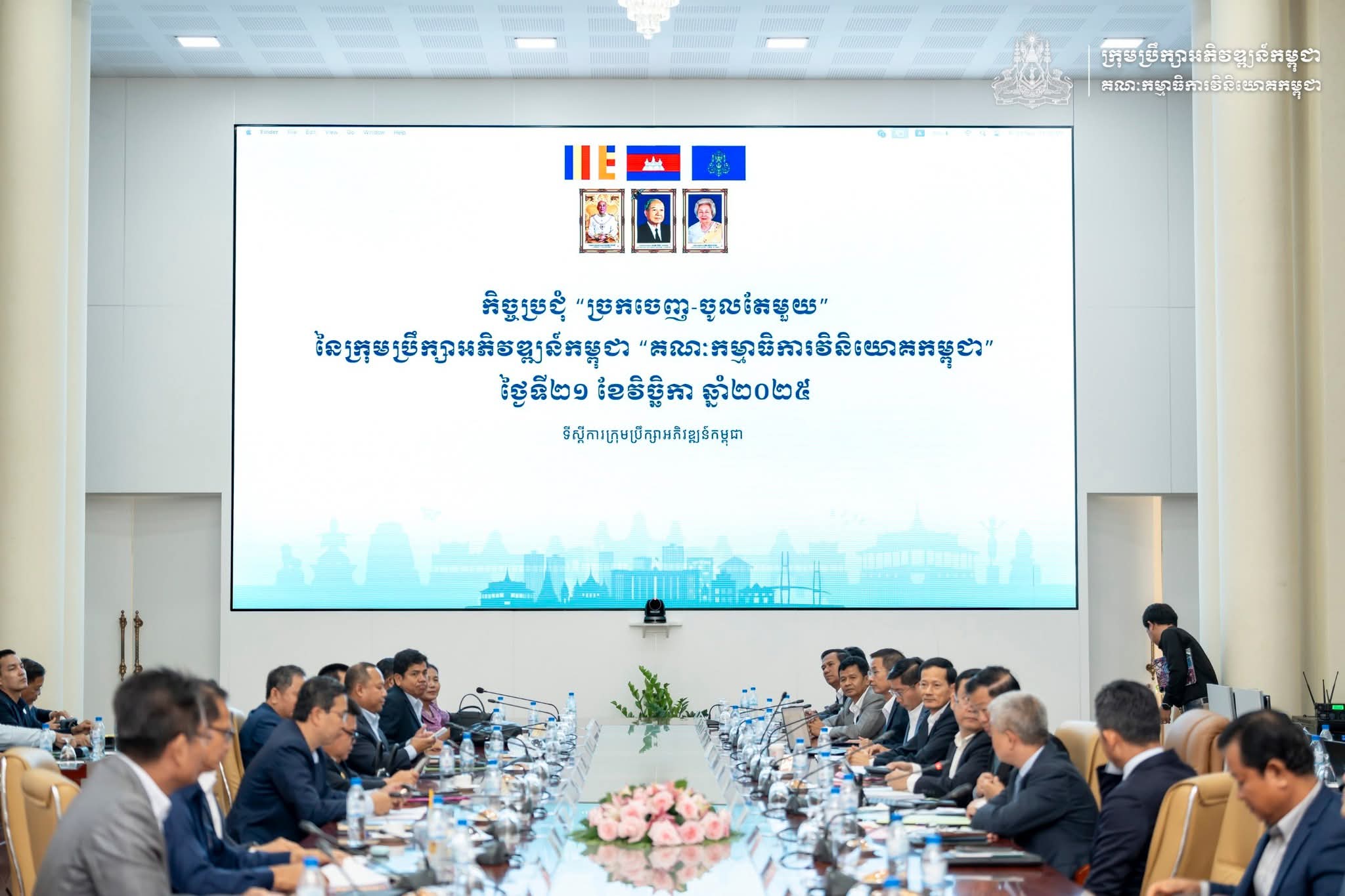 (ភ្នំពេញ)៖ គណៈកម្មាធិការវិនិយោគកម្ពុជា នៃក្រុមប្រឹក្សាអភិវឌ្ឍន៍កម្ពុជា នៅថ្ងៃទី២១ ខែវិច្ឆិកា ឆ្នាំ២០២៥នេះ បានរៀបចំកិច្ចប្រជុំច្រកចេញចូលតែមួយ ដើម្បីពិនិត្យពិភាក្សាលើសំណើ សុំចុះបញ្ជីគម្រោងវិនិយោគ មានលក្ខណៈសម្បត្តិគ្រប់គ្រាន់ចំនួន១០គម្រោង ក្រោមអធិបតីភាពលោក ជា វុទ្ធី អគ្គលេខាធិការគណៈកម្មាធិការវិនិយោគកម្ពុជា ដោយមានការអញ្ជើញចូលរួម ពីសំណាក់តំណាងក្រសួង-ស្ថាប័ន និងរដ្ឋបាលខេត្តពាក់ព័ន្ធ។