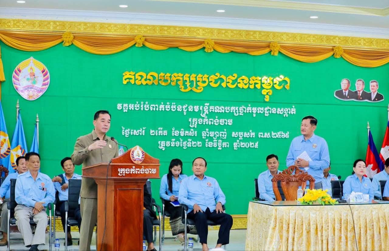 (កំពង់ចាម) :នៅរសៀលថ្ងៃសៅរ៍ ទី២២ ខែវិច្ឆិកា ឆ្នាំ២០២៥ នេះ ឯកឧត្ដម អ៊ុន ចាន់ដា សមាជិកគណៈកម្មាធិការកណ្ដាលគណបក្សប្រជាជនកម្ពុជា, ប្រធានគណៈកម្មាធិការគណបក្សខេត្តកំពង់ចាម បានអញ្ជើញជាអធិបតីក្នុងពិធីបិទវគ្គអប់រំ បំពាក់បំប៉ននយោបាយ ជូនមន្ត្រីគណបក្សមូលដ្ឋាន ក្នុងក្រុងកំពង់ចាម ស្ថិតនៅទីស្នាក់ការគណបក្សក្រុង ដោយមានការចូលរួមពីសមាជិកគណៈអចិន្ត្រៃយ៍បក្សខេត្ត, គណៈអចិន្ត្រៃយ៍គណបក្សមូលដ្ឋានក្រុង និងមន្ត្រីគណបក្សពាក់ព័ន្ធមួយចំនួនទៀត។