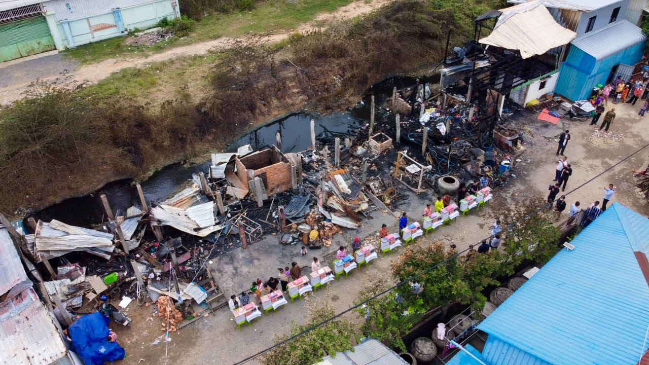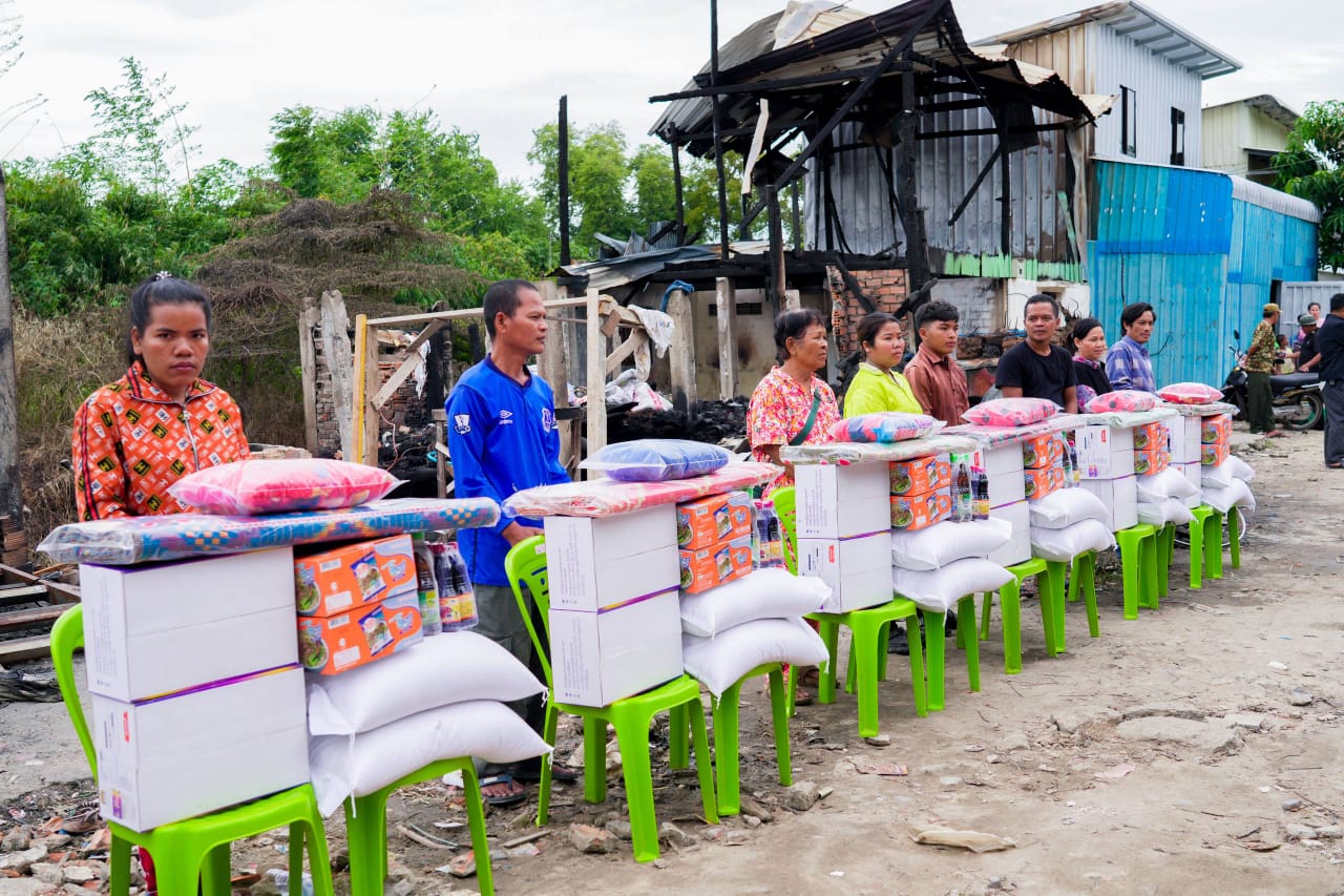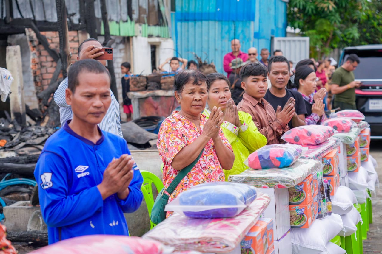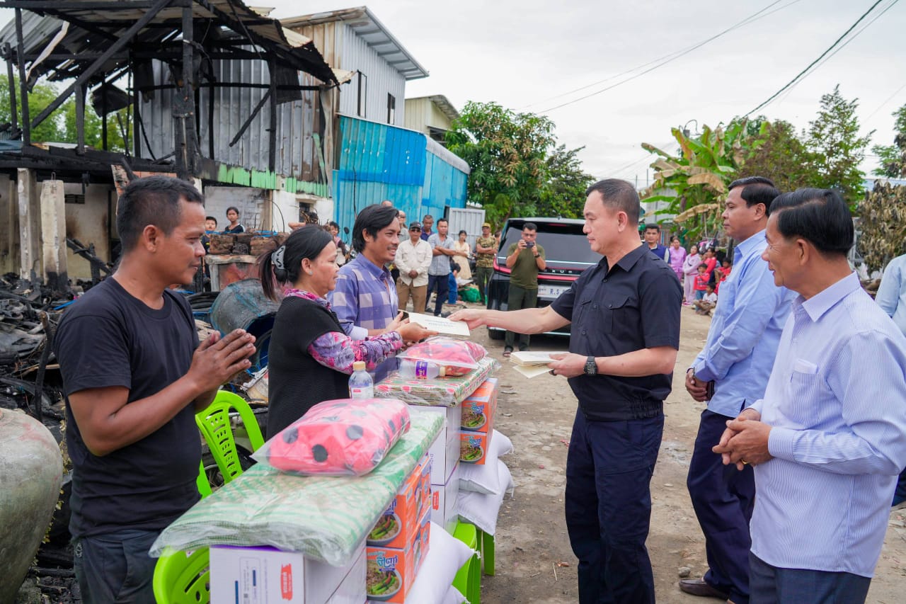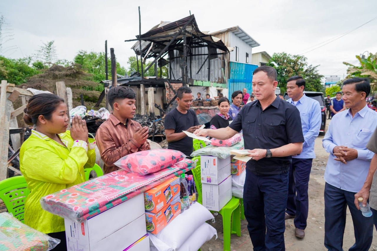 (ភ្នំពេញ) :នារសៀល ថ្ងៃទី២៣ ខែវិច្ឆិកា ឆ្នាំ២០២៥ ឯកឧត្តម ឧត្តមសេនីយ៍ឯក រ័ត្ន ស្រ៊ាង មេបញ្ជាការរង កងរាជអាវុធហត្ថលើផ្ទៃប្រទេស មេបញ្ជាការ កងរាជអាវុធហត្ថរាជធានីភ្នំពេញ និងជាប្រធានក្រុមការងាររាជរដ្ឋាភិបាលចុះជួយមូលដ្ឋានខណ្ឌដង្កោ និងមានការចូលរួមពី លោក ប៊ុន ណារុំ អភិបាលរង នៃគណៈអភិបាលខណ្ឌដង្កោ រួមនឹងក្រុមការងារ បាននាំយកអំណោយ ឧបត្ថម្ភ និងសួរសុខទុក្ខដល់ប្រជាពលរដ្ឋចំនួន១៩គ្រួសារ (មានចំនួន ១២ខ្នងផ្ទះ) ដែលត្រូវបានអគ្គិភ័យឆាបឆេះគេហដ្ឋាន កាលពីយប់ ថ្ងៃទី២១ ខែវិច្ឆិកា ឆ្នាំ២០២៥ នៅចំណុចផ្លូវលំ ស្ថិតក្នុងភូមិរលួស សង្កាត់ជើងឯក ខណ្ឌដង្កោ រាជធានីភ្នំពេញ។