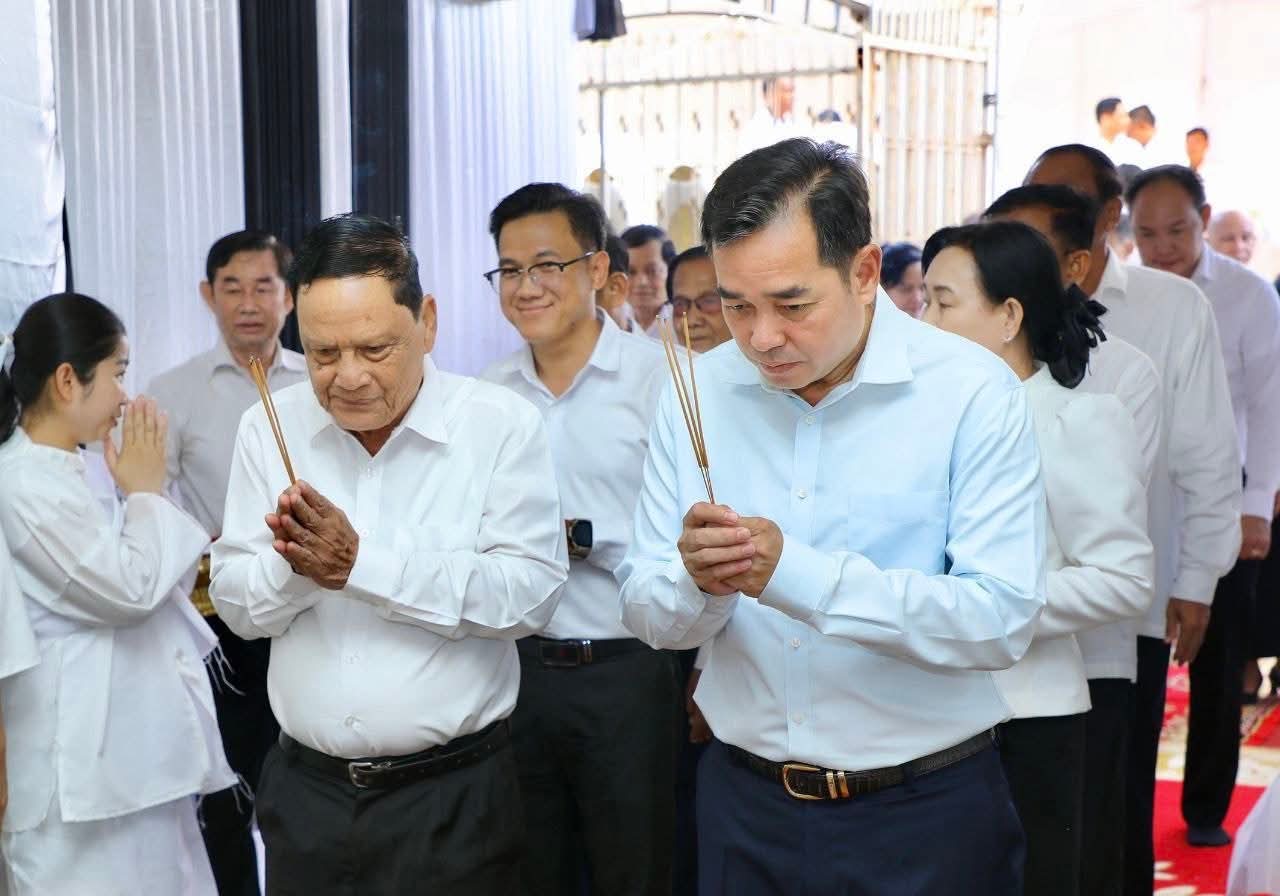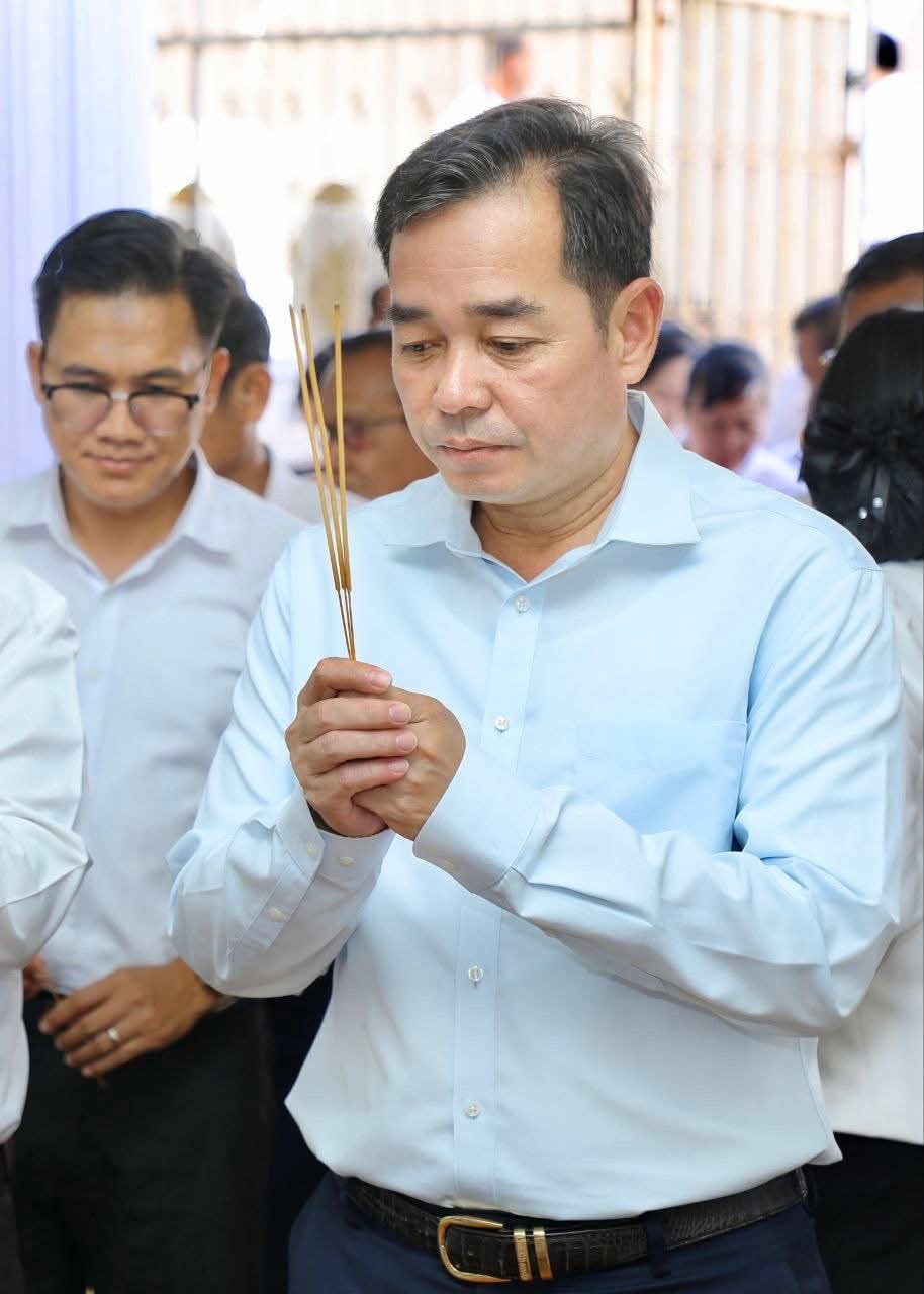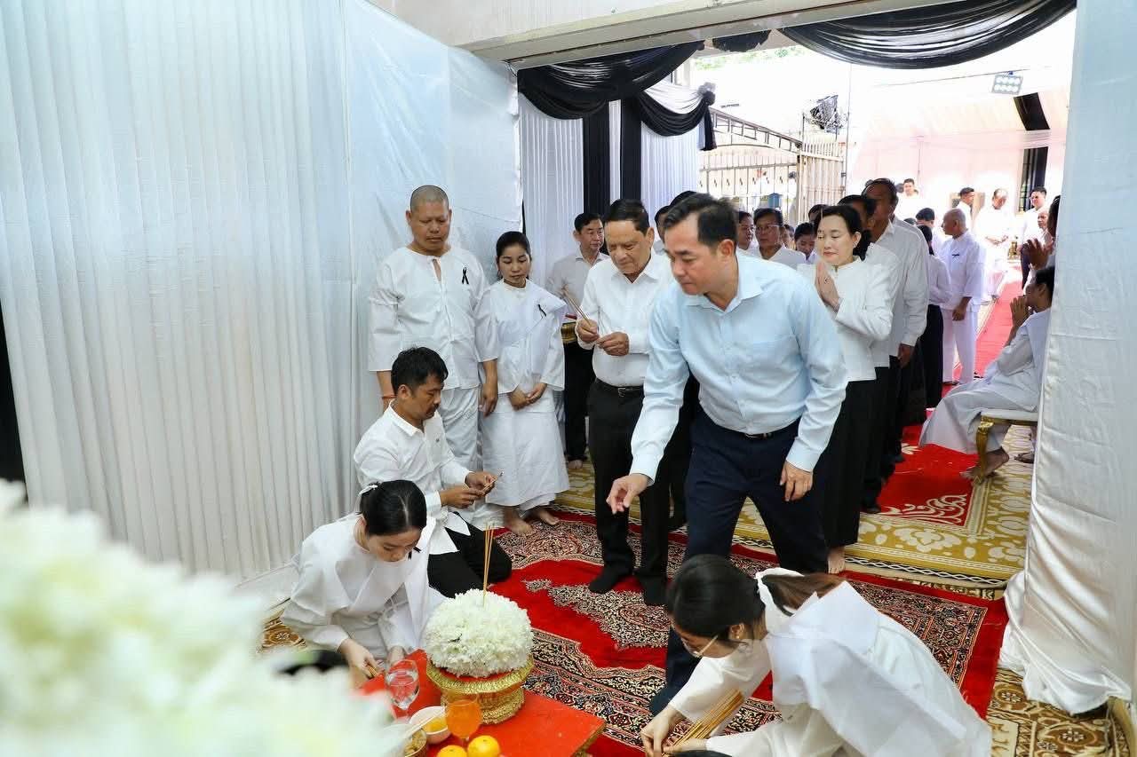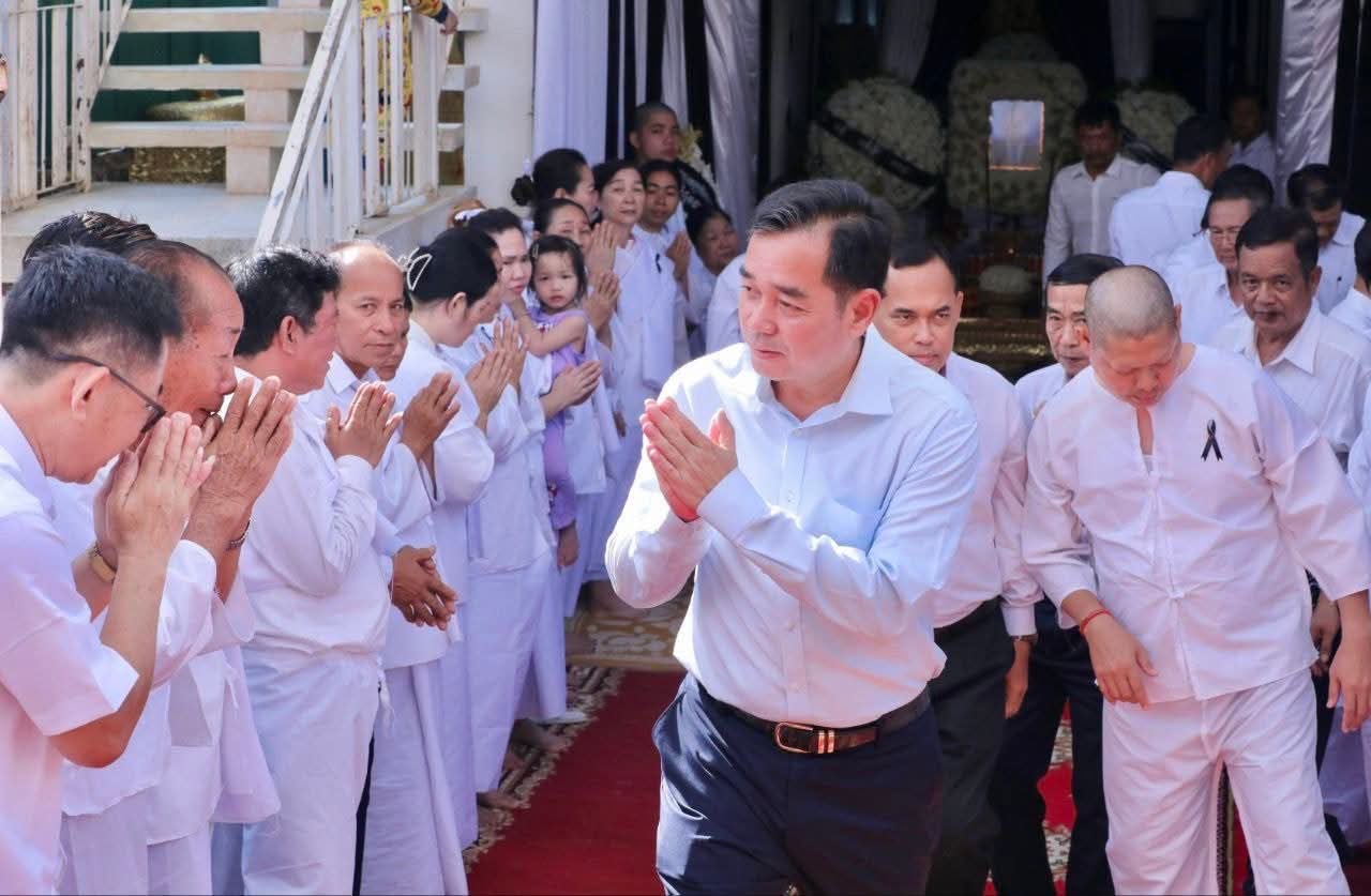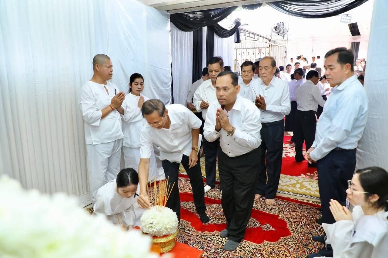 (កំពង់ចាម) :នៅថ្ងៃទី០៨ ខែសីហា ឆ្នាំ២០២៥ ឯកឧត្តម អ៊ុន ចាន់ដា អភិបាល នៃគណៈអភិបាលខេត្តកំពង់ចាម និង ឯកឧត្តម ខ្លូតផន ប្រធានក្រុមប្រឹក្សាខេត្ត ព្រមទាំងសហការី អញ្ជើញគោរព វិញ្ញាណក្ខន្ធ នៃសព លោក ស្រេង រ៉ា ត្រូវជាឪពុកក្មេក លោក ប៊ិន ឡាដា អភិបាលស្រុកស្រីសន្ធរ ដែលបានទទួលមរណភាពកាលពីថ្ងៃ អង្គារ ១១កើត ខែស្រាពណ៍ ឆ្នាំម្សាញ់ សប្តស័ក ព.ស. ២៥៦៩ ត្រូវនឹងថ្ងៃទី០៥ ខែសីហា ឆ្នាំ២០២៥ វេលាម៉ោង ៤:២៣នាទី ទៀបភ្លឺ ក្នុងជន្មាយុ ៧០ឆ្នាំ ដោយរោគាពាធ ដែលពិធីបុណ្យធ្វើនៅគេហដ្ឋានសព ស្ថិតនៅភូមិទី៣ សង្កាត់វាលវង់ ក្រុងកំពង់ចាម ។