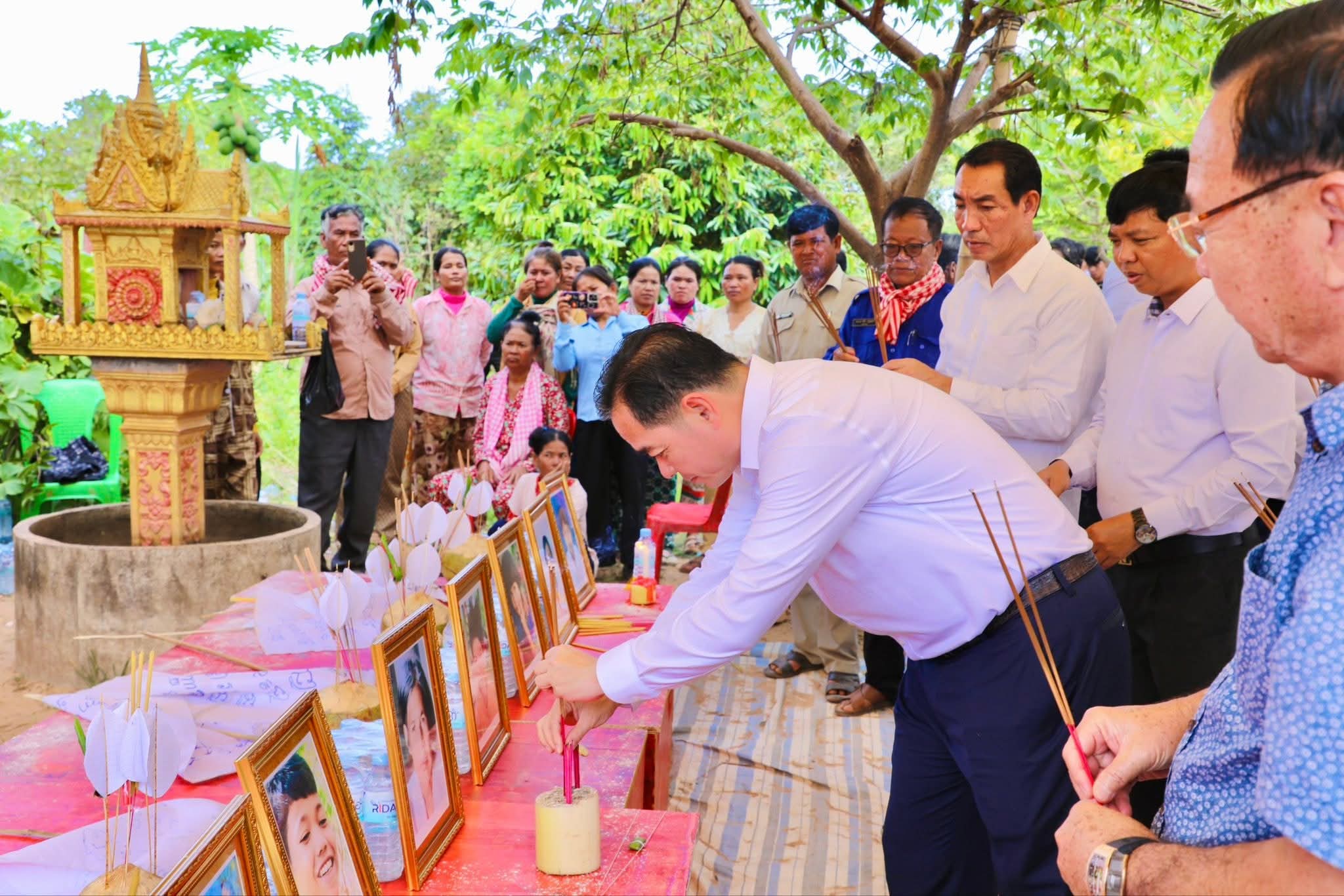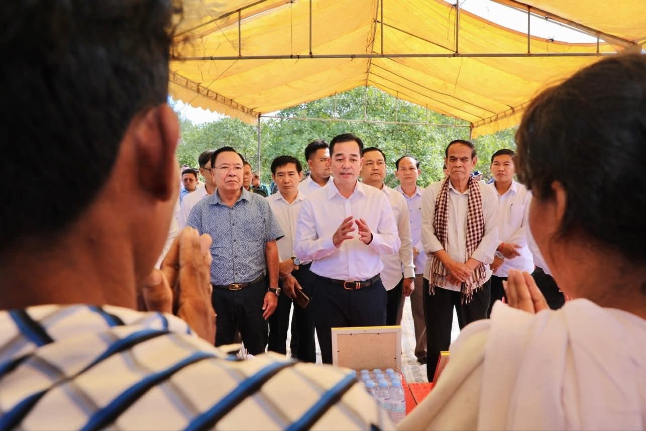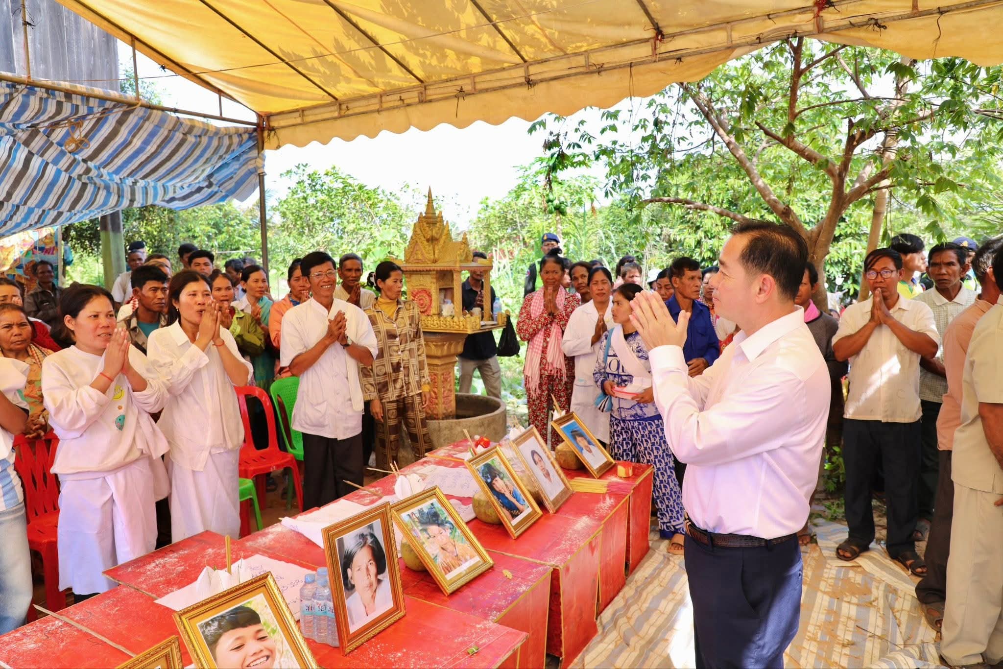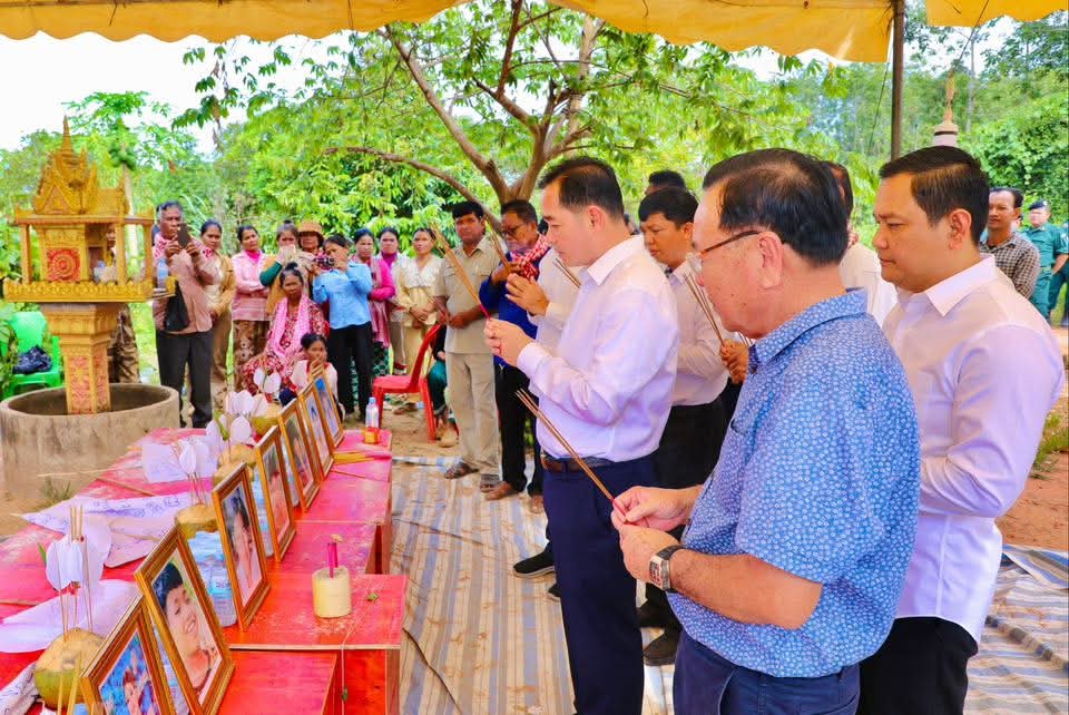 (កំពង់ចាម): ឯកឧត្ដម អ៊ុន ចាន់ដា អភិបាល នៃគណៈអភិបាលខេត្តកំពង់ចាម នាព្រឹកថ្ងៃចន្ទ ទី២៤ ខែវិច្ឆិកា ឆ្នាំ២០២៥ រួមដំណើរដោយថ្នាក់ដឹកនាំ និងមន្ត្រីរាជការ នៃរដ្ឋបាលខេត្ត, កងកម្លំាងមានសមត្ថកិច្ច, អាជ្ញាធរមូលដ្ឋាន និងលោក អគ្គនាយកក្រុមហ៊ុន ហេង ឡុង (ចំការកៅស៊ូបឹងកេត) បានអញ្ជើញចូលរួមរំលែកទុក្ខដល់គ្រួសារព រងគ្រោះដោយអំពើឃាតកម្មដ៏សាហាវយង់ឃ្នង ដែលបានកេីតឡេីងលេីប្រជាពលរដ្ឋ និងកុមារ បណ្តាលអោយបាត់បង់ជីវិតមនុស្ស ចំនួន ៩នាក់ ស្ថិតក្នុងភូមិពោន ឃុំទួលសំបួរ ស្រុកស្ទឹងត្រង់ ខេត្តកំពង់ចាម កាលពីព្រឹកព្រលឹមថ្ងៃទី២៣ ខែវិច្ឆិកា ឆ្នាំ២០២៥។