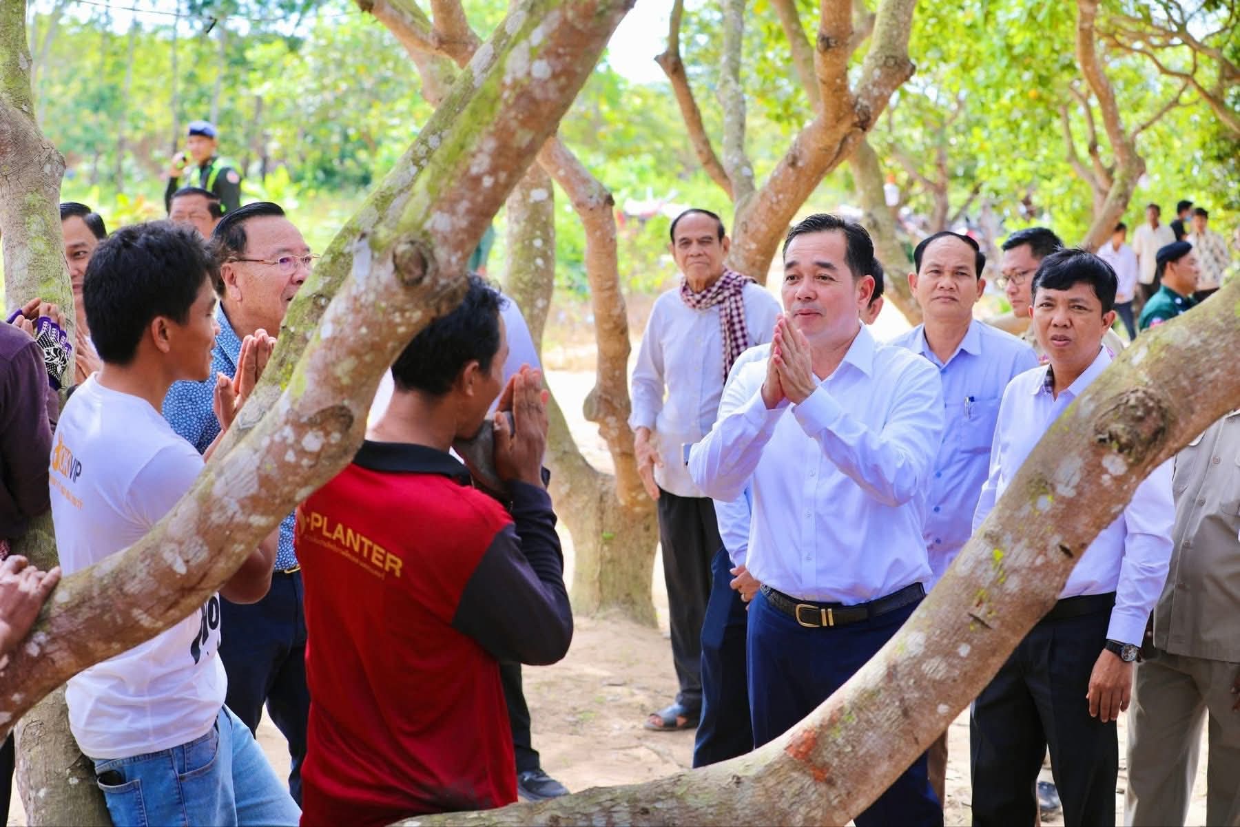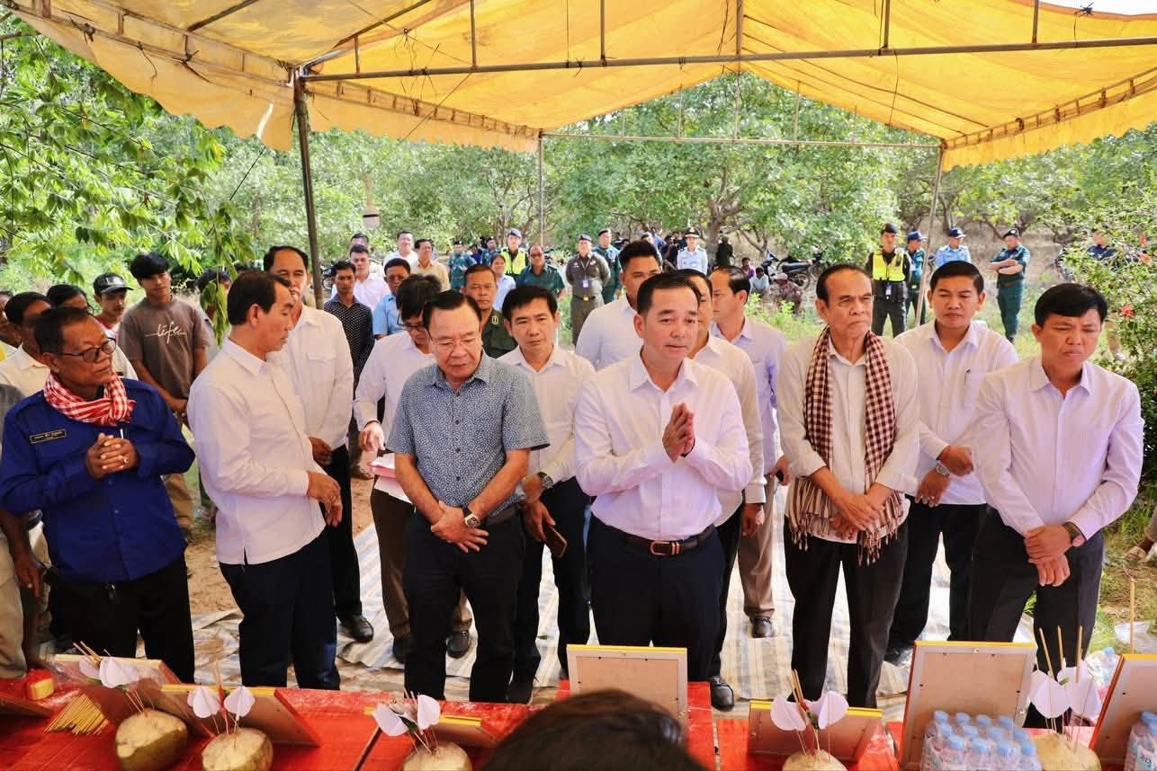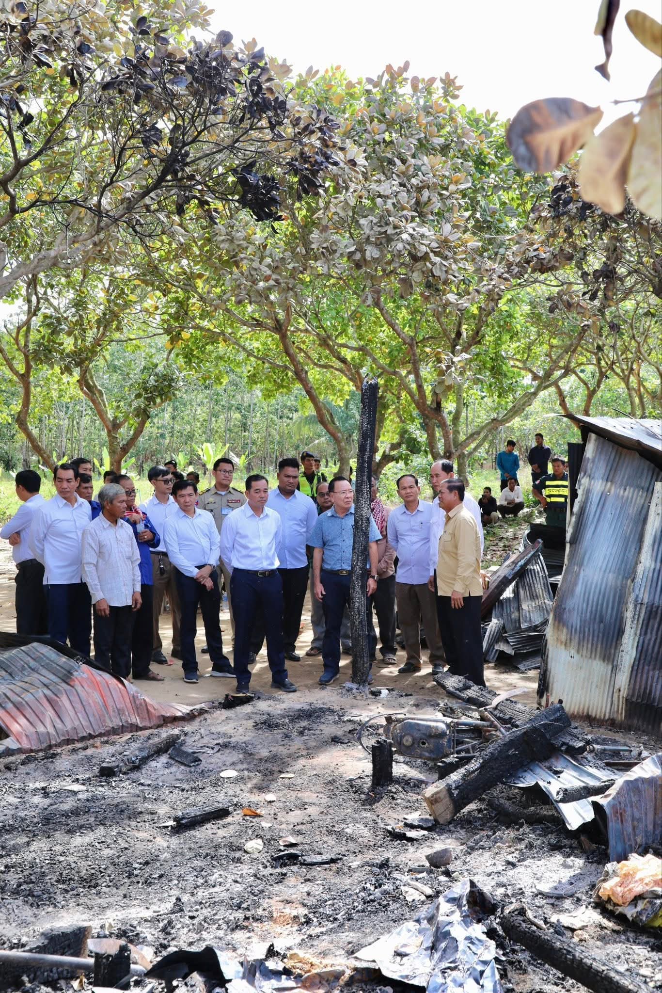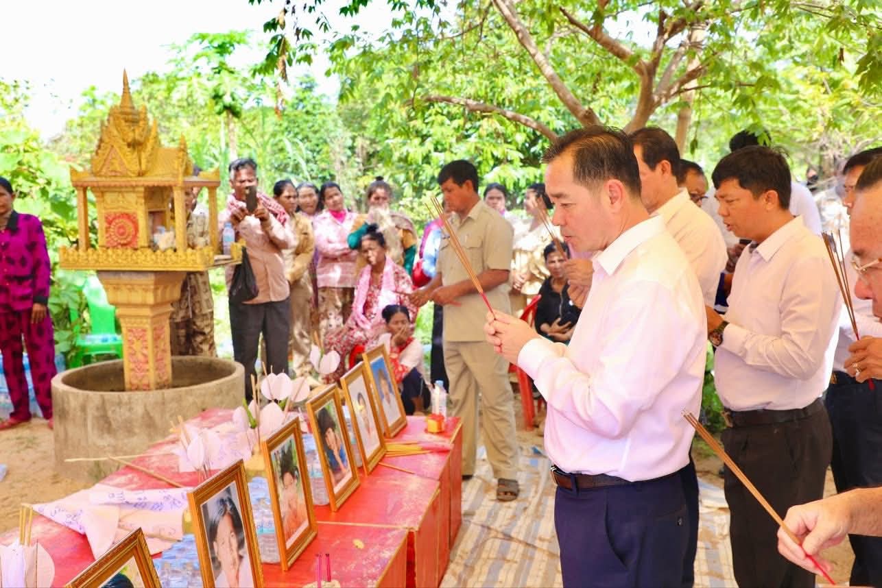 (កំពង់ចាម): ឯកឧត្ដម អ៊ុន ចាន់ដា អភិបាល នៃគណៈអភិបាលខេត្តកំពង់ចាម នាព្រឹកថ្ងៃចន្ទ ទី២៤ ខែវិច្ឆិកា ឆ្នាំ២០២៥ រួមដំណើរដោយថ្នាក់ដឹកនាំ និងមន្ត្រីរាជការ នៃរដ្ឋបាលខេត្ត, កងកម្លំាងមានសមត្ថកិច្ច, អាជ្ញាធរមូលដ្ឋាន និងលោក អគ្គនាយកក្រុមហ៊ុន ហេង ឡុង (ចំការកៅស៊ូបឹងកេត) បានអញ្ជើញចូលរួមរំលែកទុក្ខដល់គ្រួសារព រងគ្រោះដោយអំពើឃាតកម្មដ៏សាហាវយង់ឃ្នង ដែលបានកេីតឡេីងលេីប្រជាពលរដ្ឋ និងកុមារ បណ្តាលអោយបាត់បង់ជីវិតមនុស្ស ចំនួន ៩នាក់ ស្ថិតក្នុងភូមិពោន ឃុំទួលសំបួរ ស្រុកស្ទឹងត្រង់ ខេត្តកំពង់ចាម កាលពីព្រឹកព្រលឹមថ្ងៃទី២៣ ខែវិច្ឆិកា ឆ្នាំ២០២៥។