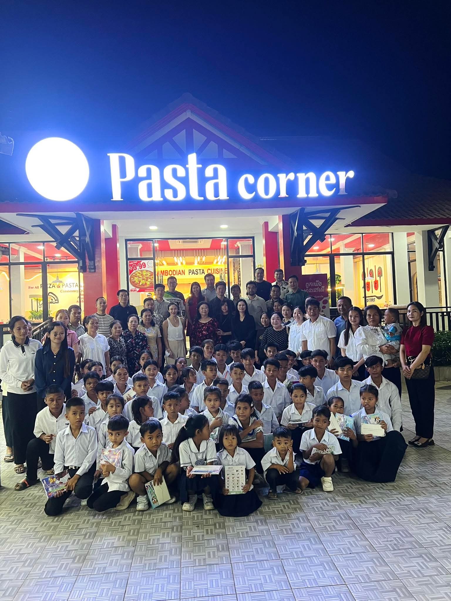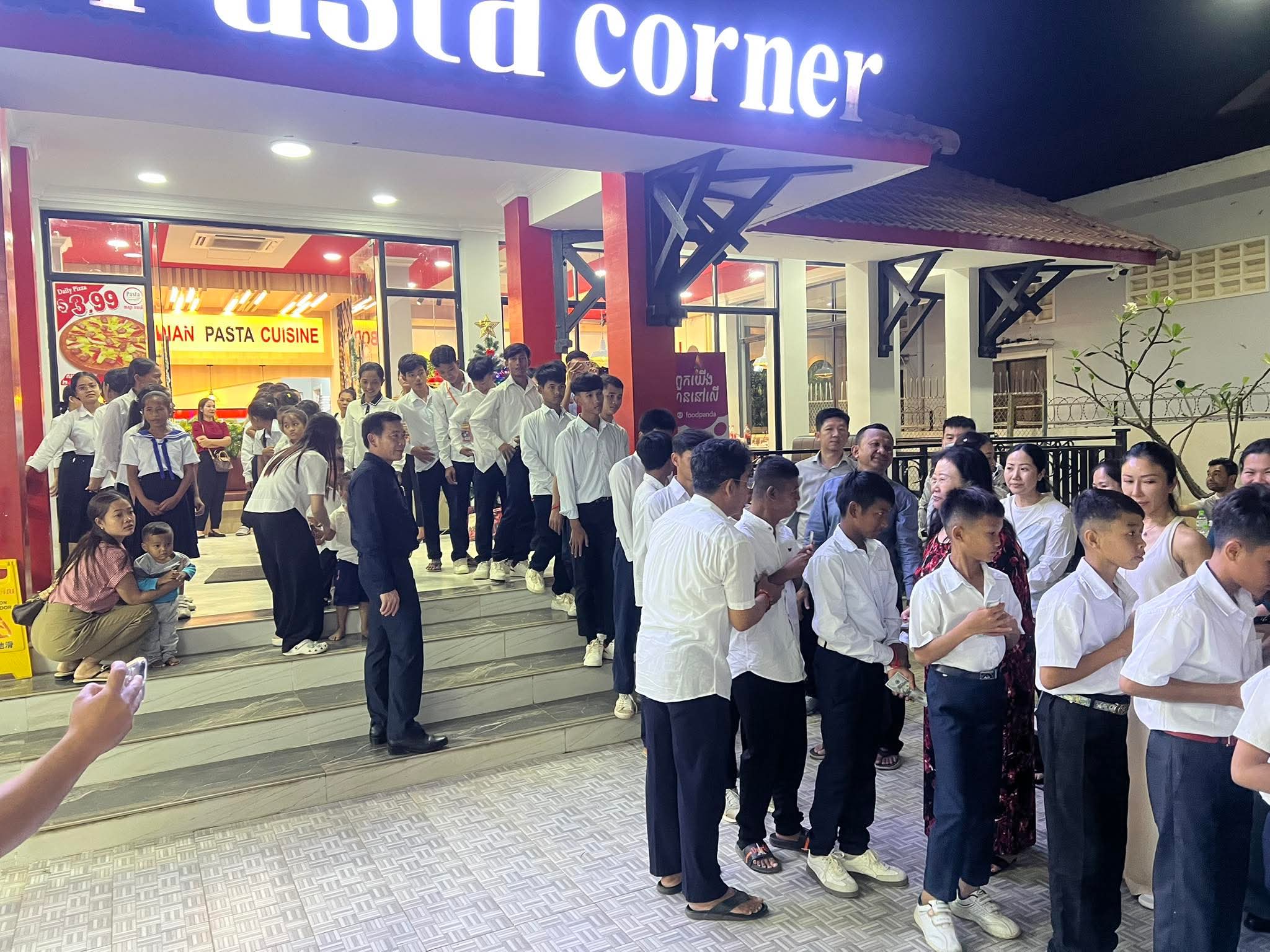 ការរៀបចំអាហារ និងជូនថវិកា ដល់កុមារកំព្រានេះ ធ្វើនៅ ហាង (Pasta corner) ក្រុងកំពង់ចាម នារសៀលថ្ងៃទី២៥ ខែវិច្ឆិកា ឆ្នាំ២០២៥ ។