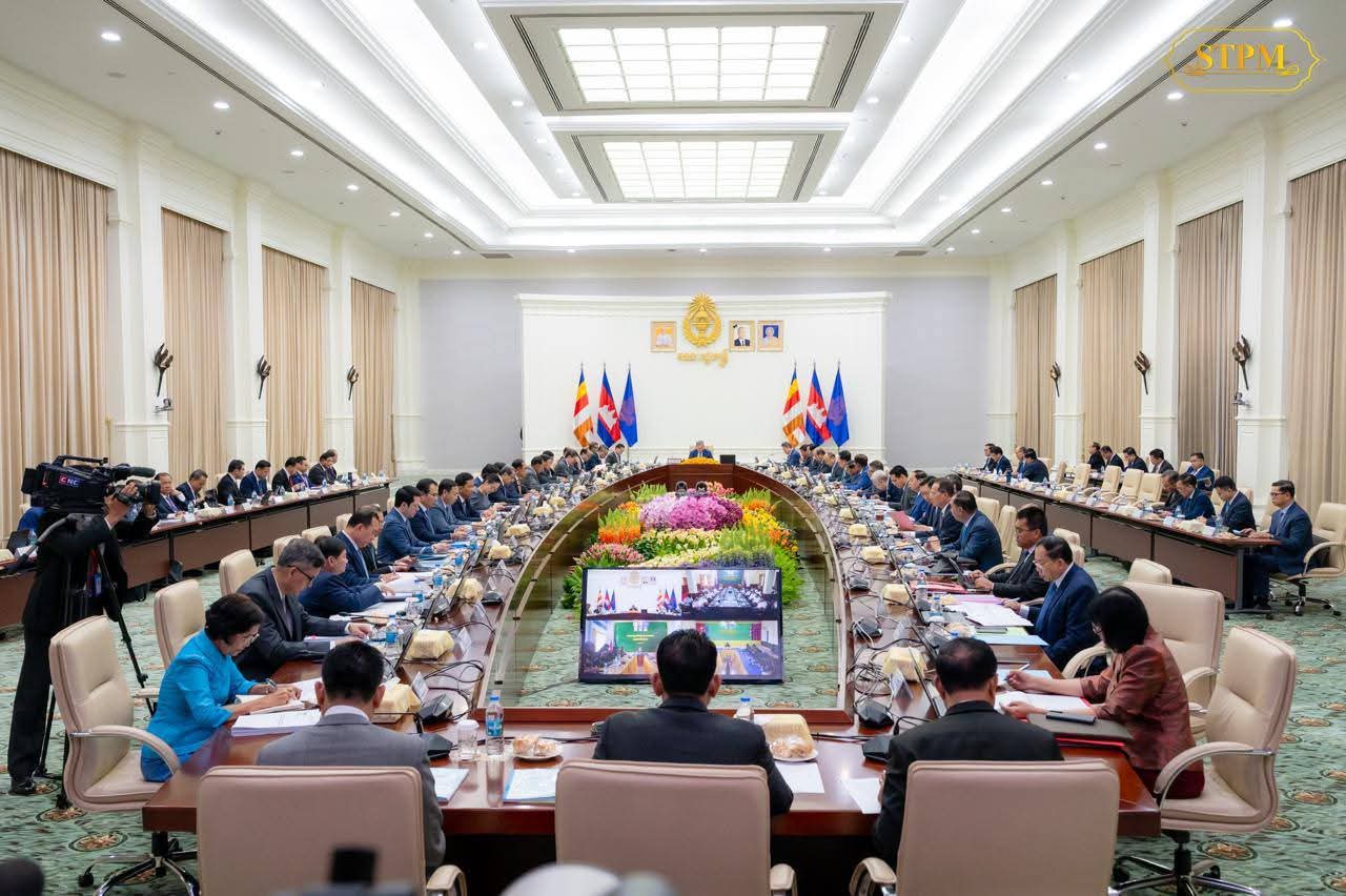 (ភ្នំពេញ) :សម្តេចមហាបវរធិបតី ហ៊ុន ម៉ាណែត នាយករដ្ឋមន្ត្រី នៃព្រះរាជាណាចក្រកម្ពុជា អញ្ជើញដឹកនាំកិច្ចប្រជុំពេញអង្គគណៈរដ្ឋមន្ត្រី នៅវិមានសន្តិភាព នាព្រឹកថ្ងៃសុក្រ ទី២៨ វិច្ឆិកា ២០២៥ ដោយពិភាក្សា និងឆ្លងលើរបៀបវារៈចំនួន៥៖