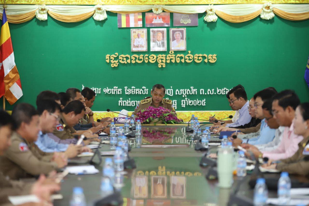 (កំពង់ចាម) :នៅព្រឹកថ្ងៃទី២ ខែធ្នូ ឆ្នាំ២០២៥នេះ លោក ឃន ប្រុស អភិបាលរងខេត្ត តំណាងដ៏ខ្ពង់ខ្ពស់ ឯកឧត្តម អ៊ុន ចាន់ដា អភិបាលនៃគណៈអភិបាលខេត្តកំពង់ចាម បានដឹកនាំកិច្ចប្រជុំត្រៀមរៀបចំពិធី តាំងពិព័រណ៍ អុចកាំជ្រួច និងប្រគំដន្រ្តី ដើម្បីចូលរួមអបអរ ថ្ងៃចូលឆ្នាំសកល ២០២៥ ចូល ២០២៦ នាពេលខាងមុខនេះ។ កិច្ចប្រជុំនេះក៏មានការអញ្ជើញចូលរួមពី កងកម្លាំងទាំងបី លោក លោកស្រី ប្រធាន អនុប្រធានមន្ទីរអង្គភាពជុំវិញខេត្ត និងអ្នកពាក់ព័ន្ធជាច្រើនរូបទៀត ។