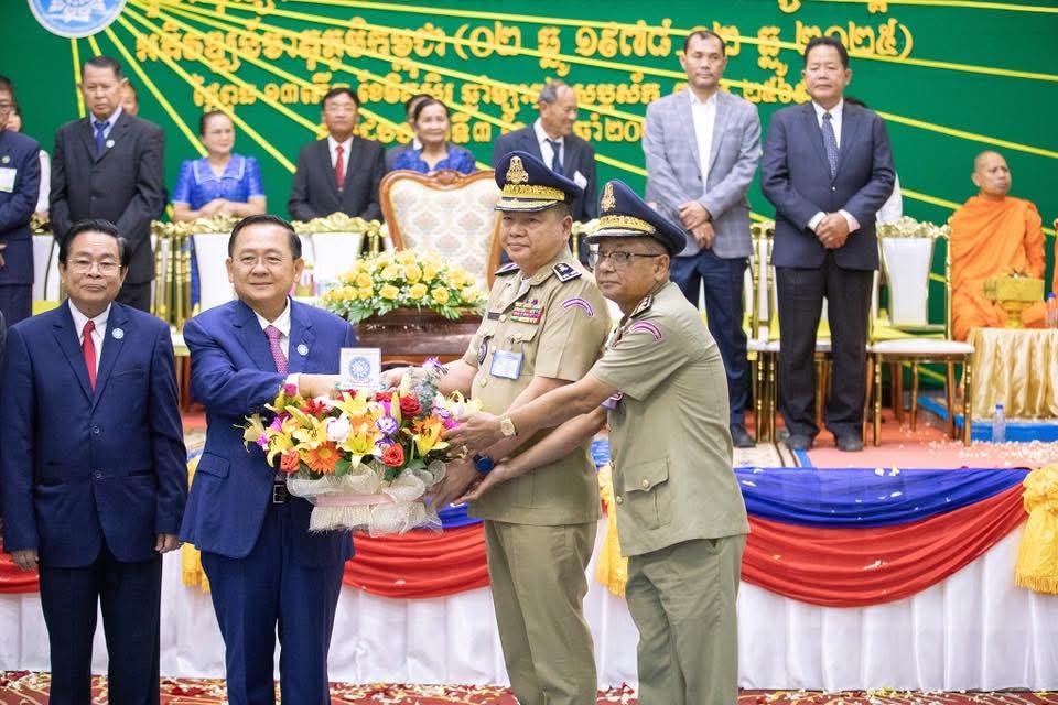 លោកឧត្តមសេនីយ៍ទោ ដាញ់ អេងប៊ុនចាន់ ក្នុងនាមថ្នាក់ដឹកនាំស្នងការដ្ឋាននគរបាលខេត្តបាត់ដំបង បានប្រគល់ជូននូវកន្រ្តកផ្កាយ៉ាងស្រស់ស្អាត ជូនឯកឧត្តម សុខ លូ អភិ បាលនៃគណៈអភិបាលខេត្តបាត់ដំបង នាពិធីដ៏ឱឡាឫកនេះ ហើយលោក លោកស្រី ដែលជា កងកម្លាំងនគរបាលជានិវត្តន៍ជន អញ្ជើញក្នុងពិធីនេះ ក៏បានទទួលផងដែរនូវ ថវិកាពីថ្នាក់ ដឹកនាំស្នងការ នាឱកាសនេះ ដែលបានញ៉ាំងឱ្យទិដ្ឋភាពនេះកាន់តែរីករាយស្និទ្ធស្នាលយ៉ាងក្រៃលែង៕ព្រំ ហន