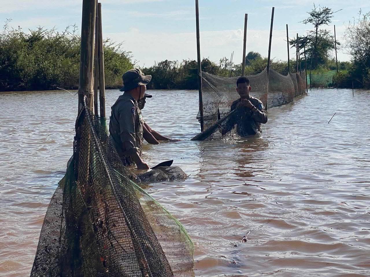 (កំពង់ចាម) : សមត្ថកិច្ចខណ្ឌរដ្ឋបាលជលផលកំពង់ចាម នៅថ្ងៃទី០៣ ខែធ្នូ ឆ្នាំ២០២៥ នេះ បានសហការជាមួយអាជ្ញាធរមូលដ្ឋាន ចុះបង្ក្រាបបទល្មើសនេសាទ មួយករណីនិងបំផ្លាញចោលឧបករណ៍នេសាទខុសច្បាប់ ក្នុងភូមិសាស្ត្រស្រុកជើងព្រៃ ខេត្តកំពង់ចាម។