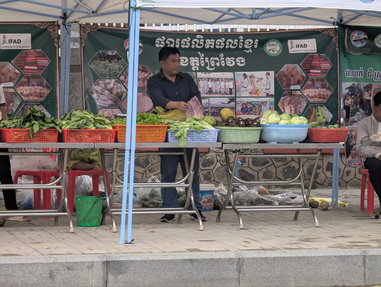 លោកស្រី ម៉ុង ករុណា ប្រធានការិយាល័យគ្រប់គ្រងអាជីវកម្ម នៃមន្ទីរពាណិជ្ជកម្មខេត្តព្រៃវែង បានឲ្យដឹងថាបន្លែផ្លែឈើក៏ដូចជាត្រីសាច់ទាំងអស់នេះបានយកមកពីបណ្ដាលក្រុងស្រុកមួយចំនួននៅក្នុងខេត្តព្រៃវែង ដែលគាត់បានផលិតនិងកែច្នៃដោយខ្លួនឯងជាពិសេសបន្លែគឺយកមកពីខាងស្រុកពាមរាំង នៃស្រុកពាមជរ ខេត្តព្រៃវែង ដែលនៅទីនោះគឺជាប្រភេទដីសម្បូរដោយជីជាតិប្រជាពលរដ្ឋតែងតែដាំបន្លែគ្រប់ៗគ្នាហើយគាត់ក៏បានប្រមូលកន្លែពីរកន្លែងនោះយកមកលក់នៅក្នុងផ្សារផលិតផលខ្មែរនេះដើម្បីបង្ហាញដល់ប្រជាពលរដ្ឋឲ្យគាត់បានទទួលស្គាល់នូវគុណភាពនៃបន្លែដែលប្រជាពលរដ្ឋយើងផលិតនៅក្នុងស្រុកយើងនេះផងដែរ។