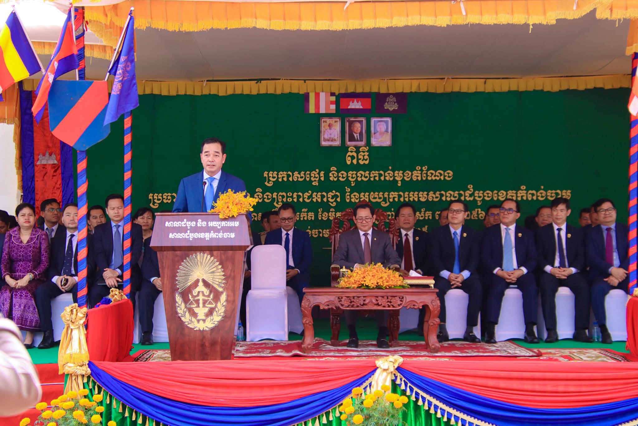 (កំពង់ចាម) :ឯកឧត្តមឧបនាយករដ្ឋមន្ត្រី កើត រិទ្ធ រដ្ឋមន្រ្តីក្រសួងយុត្តិធម៌ នាថ្ងៃទី០៤ ខែធ្នូ ឆ្នាំ២០២៥ អញ្ជើញប្រកាសផ្ទេរ និងចូលកាន់តំណែង ប្រធានសាលាដំបូង និងព្រះរាជអាជ្ញា នៃអយ្យការអមសាលាដំបូងខេត្តកំពង់ចាម នៅបរិវេណសាលាដំបូងខេត្ត ។