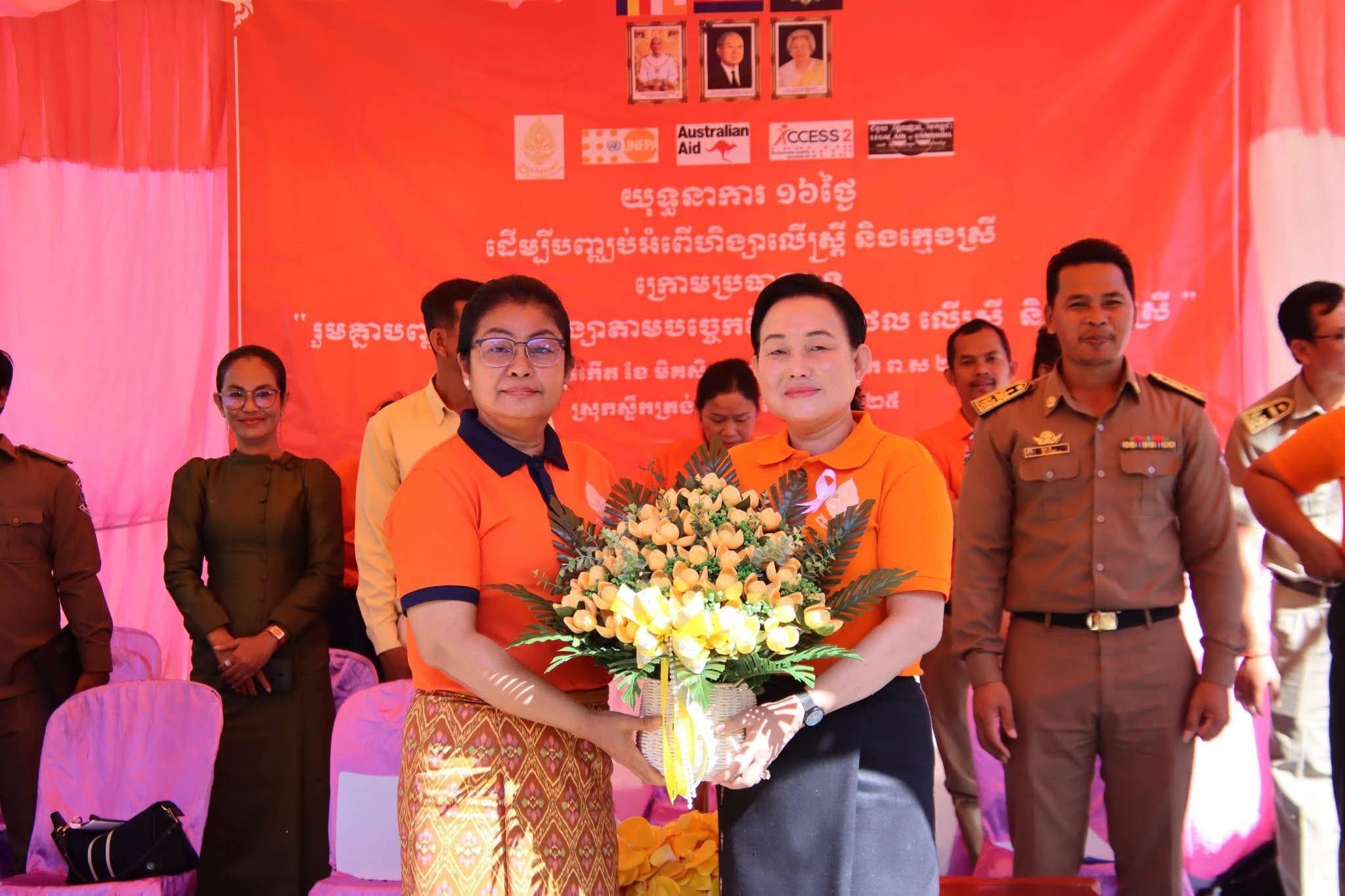 (កំពង់ចាម) :លោកស្រី ប៉ាង ដានី អភិបាលរងខេត្តកំពង់ចាម នាព្រឹកថ្ងៃទី០៥ ខែធ្នូ ឆ្នាំ២០២៥ អមដំណើរដោយ លោកស្រី ស៊ាង វណ្ណលក្ខិណា ប្រធានមន្ទីរកិច្ចការនារីខេត្តកំពង់ចាម បានបើកយុទ្ធនាការ ១៦ថ្ងៃ ដើម្បីបញ្ឈប់អំពើហិង្សាលើស្ត្រី និងក្មេងស្រី ក្រោមប្រធានបទ រួមគ្នាបញ្ឈប់អំពើហិង្សា តាមបច្ចេកខណ្ឌ ឌីជីថល លើក្មេងស្រី ដែលពិធីបើកយុទ្ធនាការនេះ រៀបចំធ្វើឡើងនៅវត្តសុវណ្ណគិរីមាឃ ហៅវត្តមាឃ ស្ថិតនៅ ឃុំព្រែកកក់ ស្រុកស្ទឹងត្រង់ ខេត្តកំពង់ចាម។