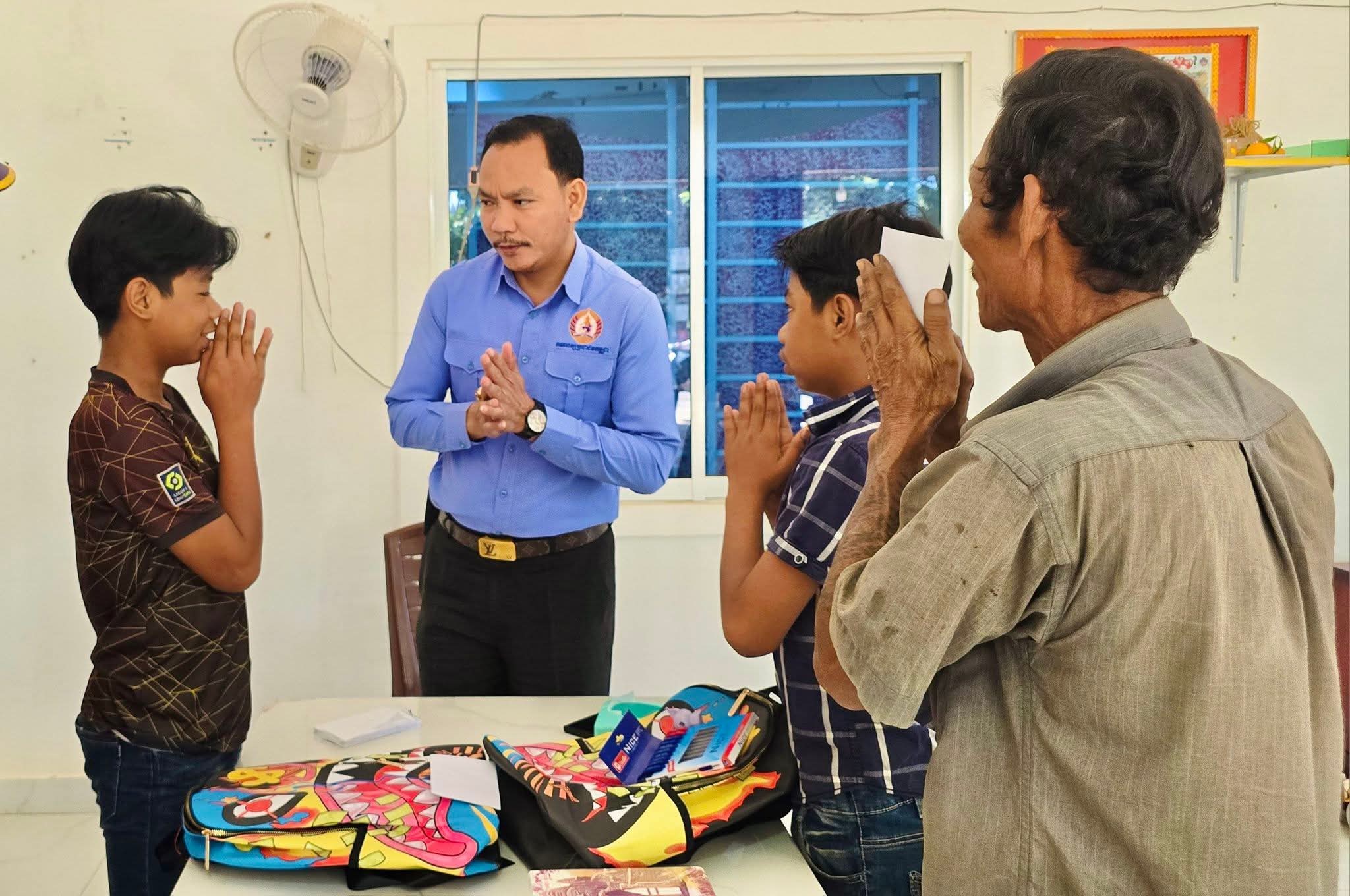 (កំពង់ចាម) : ឯកឧត្តម អ៊ុន ចាន់ដា អភិបាល នៃគណ: អភិបាលខេត្តកំពង់ចាម នៅព្រឹកថ្ងៃអាទិត្យ ទី៧ ខែធ្នូ ឆ្នាំ២០២៥នេះ កូនភ្លោះកំព្រាឪពុកម្តាយ ពីរនាក់, ឈ្មោះ រ៉េន សុខជា និង រ៉េន សុខចាន់ អាយុ១២ឆ្នាំ រស់នៅជាមួយជីតាបង្កើត ស្នាក់នៅបន្ទប់ជួល ប្រកបមុខរបរ លក់អេតចាយ ស្ថិតនៅភូមិ៦”ក” សង្កាត់វាលវង់។ លោកតា មៀច សារ៉េន ក្នុងវ័យ៧០ឆ្នាំ បានថ្លែងទាំងទឹកមុខមុតមាំថា ទោះបីជាលោកមានជីវភាពមិនសូវធូរធារ ប៉ុន្តែលោកបានប្តេជ្ញាឲ្យចៅៗរៀនចប់បាក់ឌុប និងបន្តទៅចាប់យកជំនាញមួយនៅវិទ្យាស្ថានពហុបច្ចេកទេស ខេត្តកំពង់ចាម មុននឹងលោកអស់លទ្ធភាព។