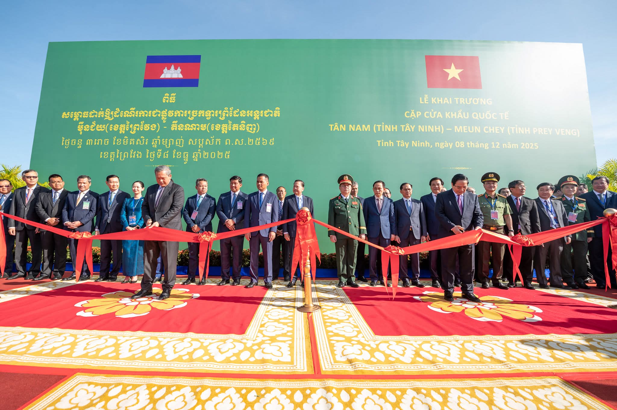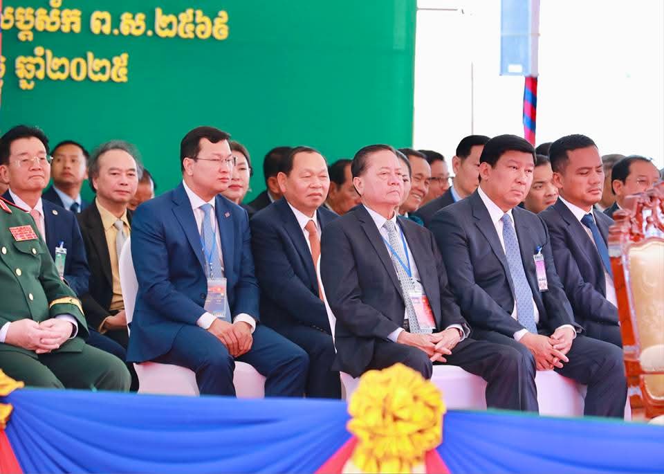 (ព្រៃវែង) : តបតាមការអញ្ជើញរបស់រដ្ឋបាលខេត្តព្រៃវែង ឯកឧត្តម អ៊ុន ចាន់ដា អភិបាលនៃគណៈអភិបាលខេត្តកំពង់ចាម នៅព្រឹកថ្ងៃចន្ទ ទី៨ ខែធ្នូ ឆ្នាំ២០២៥ បានអញ្ជើញចូលរួមក្នុងពិធីសម្ពោធដាក់ឱ្យដំណើរការជាផ្លូវការ ច្រកទ្វារព្រំដែនអន្តរជាតិម៉ឺនជ័យ (ព្រៃវែង-តិនណាម) ក្រោមអធិបតីភាពដ៏ខ្ពង់ខ្ពស់ សម្តេចមហាបវរធិបតី ហ៊ុន ម៉ាណែត នាយករដ្ឋមន្ត្រី នៃព្រះរាជាណាចក្រកម្ពុជាំ និង ឯកឧត្តម ផាម មិញជីញ នាយករដ្ឋមន្ត្រី នៃសាធារណរដ្ឋសង្គមនិយមវៀតណាម។