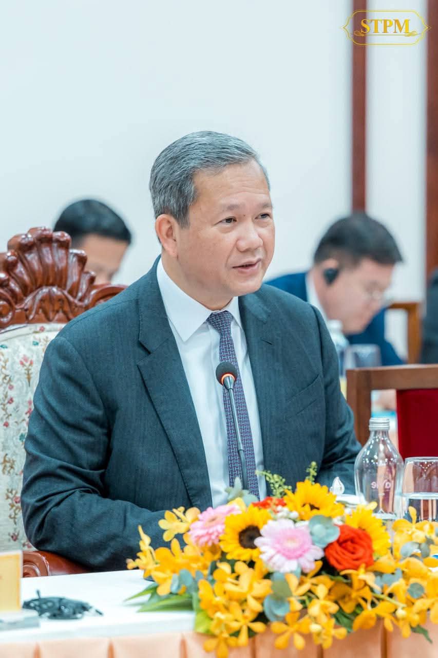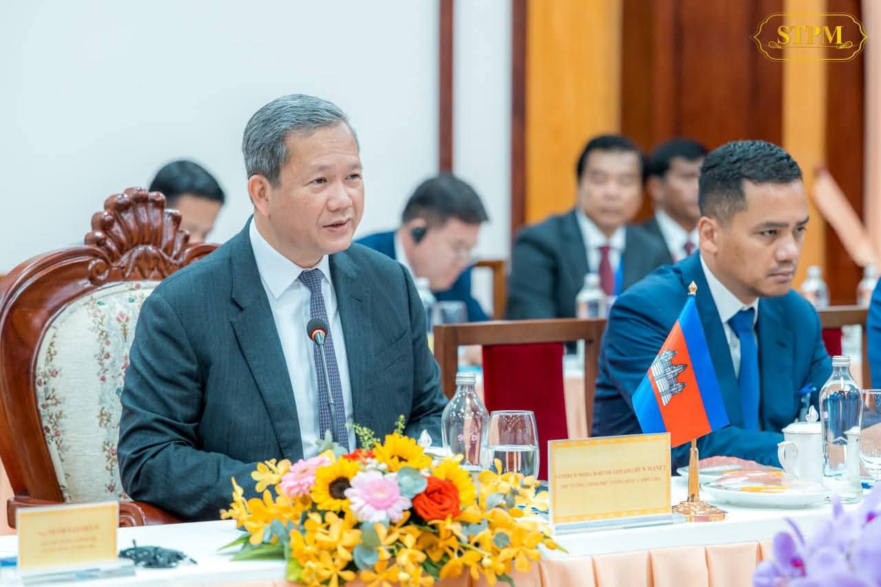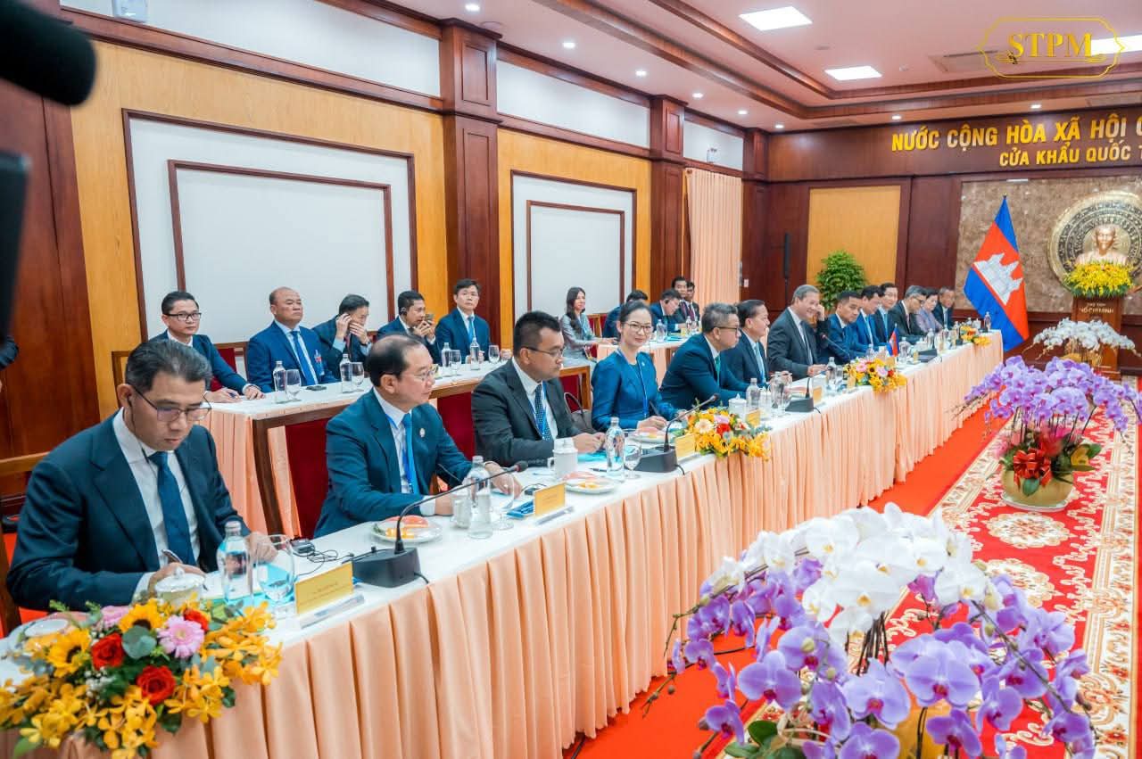 (ព្រៃវែង) :នាព្រឹកថ្ងៃទី៨ ខែធ្នូ ឆ្នាំ២០២៥, សម្តេចមហាបវរធិបតី ហ៊ុន ម៉ាណែត នាយករដ្ឋមន្ត្រី នៃព្រះរាជាណាចក្រកម្ពុជា និងឯកឧត្តម ផាម មិញជិញ (PHAM Minh Chinh) នាយករដ្ឋមន្រ្តី នៃសាធារណរដ្ឋសង្គមនិយមវៀតណាម បានជួបពិភាក្សាការងារទ្វេភាគី ក្នុងឱកាសនៃការអញ្ជើញជាអធិបតីក្នុងពិធីសម្ពោធដាក់ឱ្យដំណើរការជាផ្លូវការច្រកទ្វារព្រំដែនអន្តរជាតិ ម៉ឺនជ័យ(ខេត្តព្រៃវែងរបស់កម្ពុជា)-តឹនណាម(ខេត្តតៃនិញរបស់វៀតណាម)។