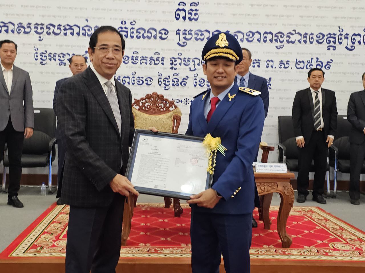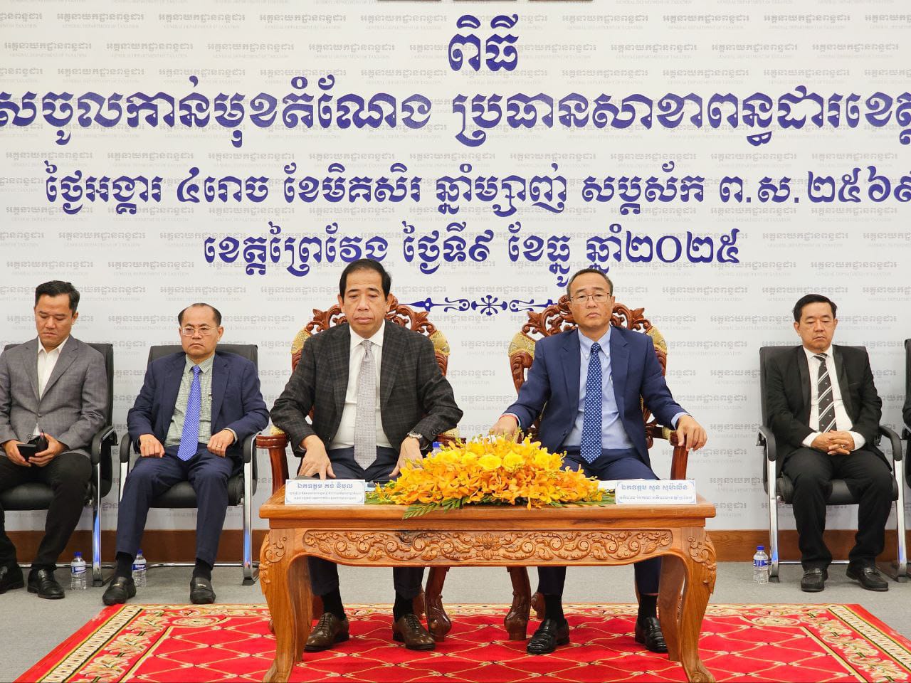 (ព្រៃវែង) :ឯកឧត្តម សួន សុម៉ាលីន អភិបាល នៃគណ: អភិបាលខេត្តព្រៃវែង នៅថ្ងៃទី៩ ខែធ្នូ ឆ្នាំ២០២៥ បានអញ្ជើញចូលក្នុងពិធីប្រកាសចូលកាន់មុខតំណែង ប្រធានសាខាពន្ធដារខេត្តព្រៃវែង ក្រោមអធិបតីភាព ឯកឧត្តម គង់ វិបុល រដ្ឋមន្ត្រីប្រតិភូអមនាយករដ្ឋមន្ត្រី និងជាប្រតិភូរាជរ ដ្ឋាភិបាលទទួលបន្ទុកជាអគ្គនាយក នៃអគ្គនាយកដ្ឋានពន្ធដារ។