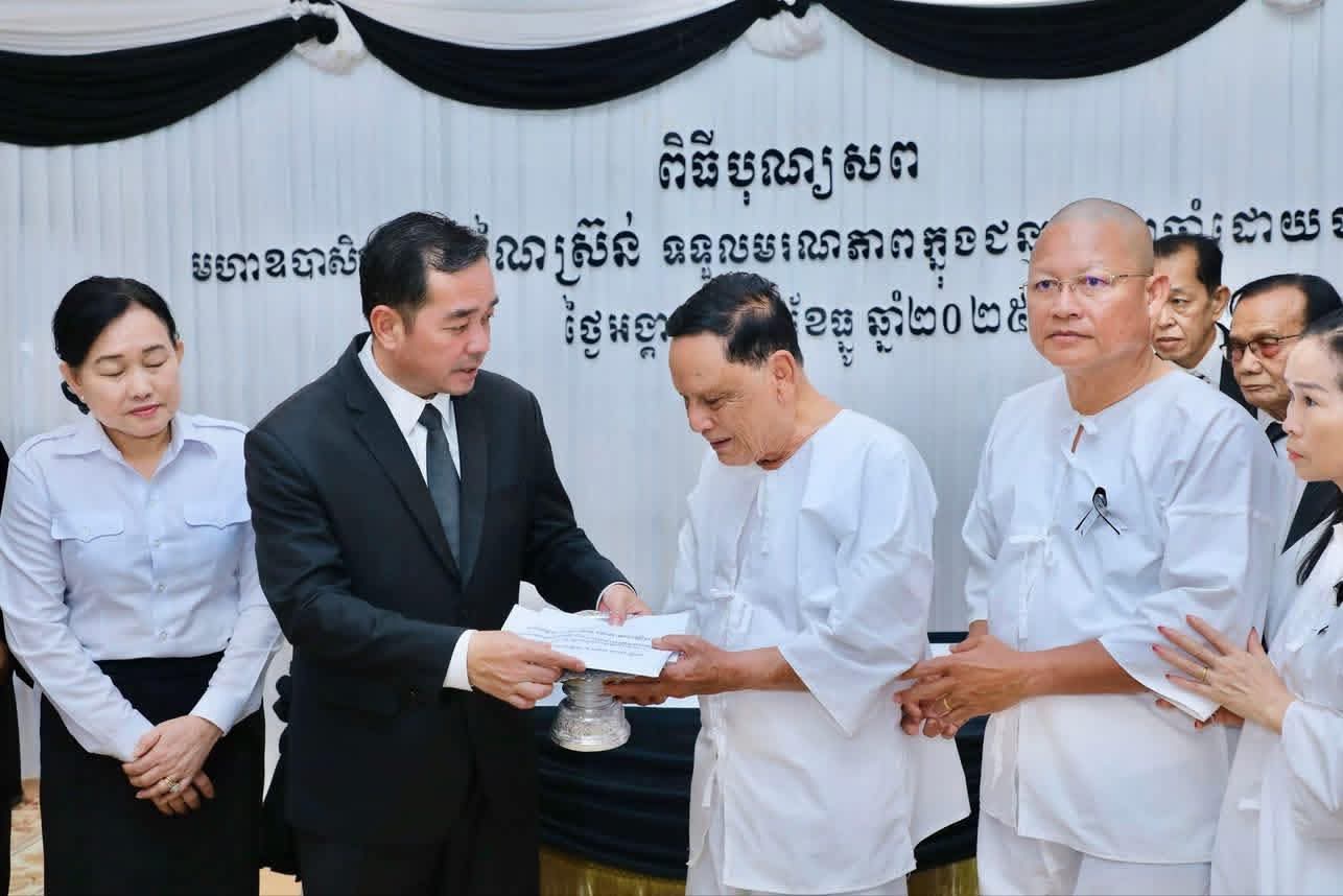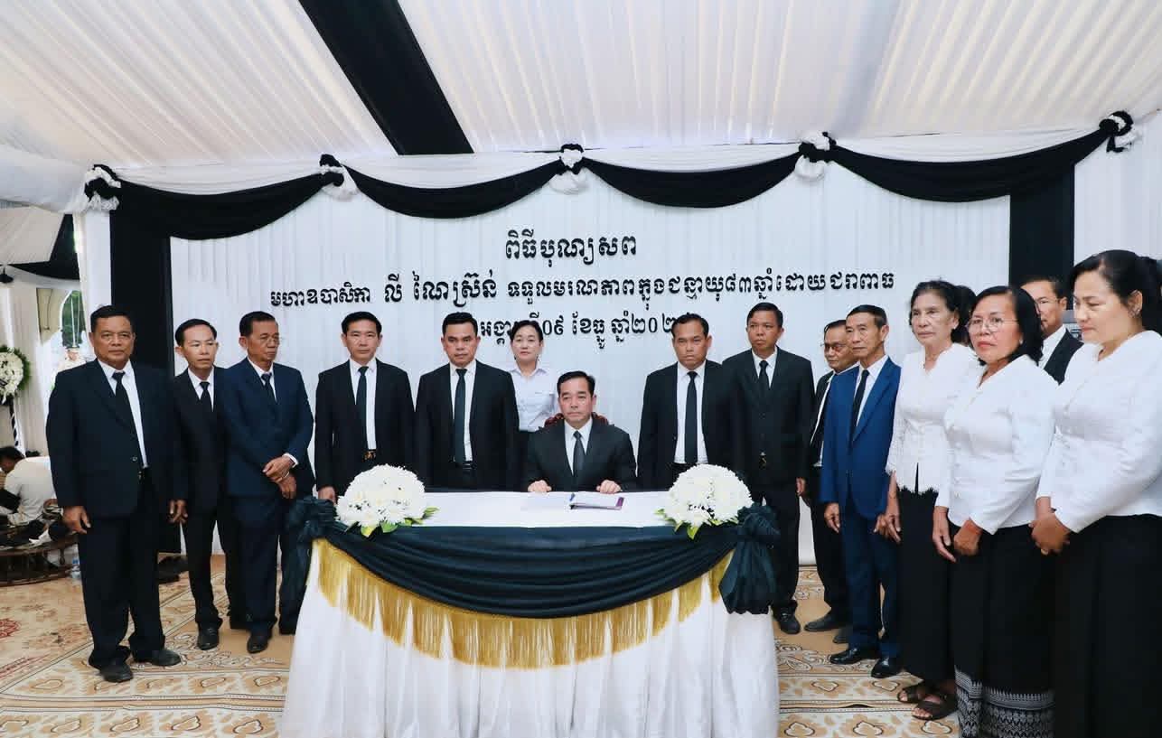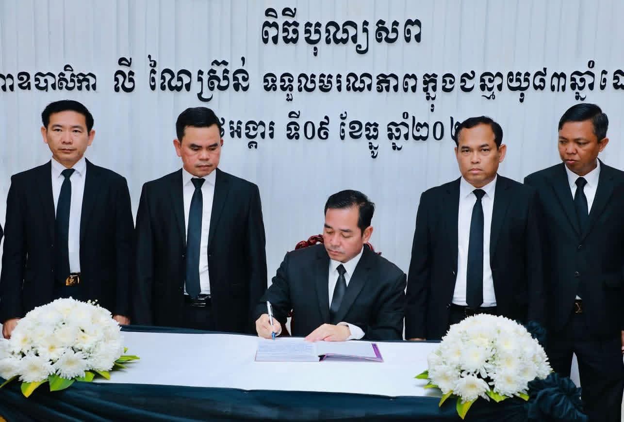 (កំពង់ចាម): ឯកឧត្តម អ៊ុន ចាន់ដា អភិបាល នៃគណៈអភិបាលខេត្តកំពង់ចាម នារសៀលថ្ងៃទី១០ ខែធ្នូ ឆ្នាំ២០២៥ អញ្ជើញដឹកនាំគណៈអភិបាលខេត្តកំពង់ចាម និងសមាជិក សមាជិកា ក្រុមប្រឹក្សាខេត្ត ចូលរួមគោរពវិញ្ញាណក្ខន្ធសព ឧបាសិកា លី ណៃស្រ៊ន់ ដែលត្រូវជាឧត្តមភរិយារបស់ ឯកឧត្តម ខ្លូត ផន ប្រធានក្រុមប្រឹក្សាខេត្តកំពង់ចាម ដែលបានទទួលមរណភាពកាលពីថ្ងៃ អង្គារ៍ ទី០៩ ខែធ្នូ ឆ្នាំ២០២៥ ត្រូវនឹងថ្ងៃ ៤រោច ខែ មិគសិរ ឆ្នាំ ម្សាញ់ សប្តស័ក ព.ស ២៥៦៩ ក្នុងជន្មាយុ ៨៣ ឆ្នាំ វេលាម៉ោង៣៖០៦នាទី ទៀបភ្លឺ ដោយជរាពាធ នៅគេហដ្ឋាន ភូមិតាណេង សង្កាត់សំបូរមាស ក្រុងកំពង់ចាម ខេត្តកំពង់ចាម (ទល់មុខសួនក្រញូង)។