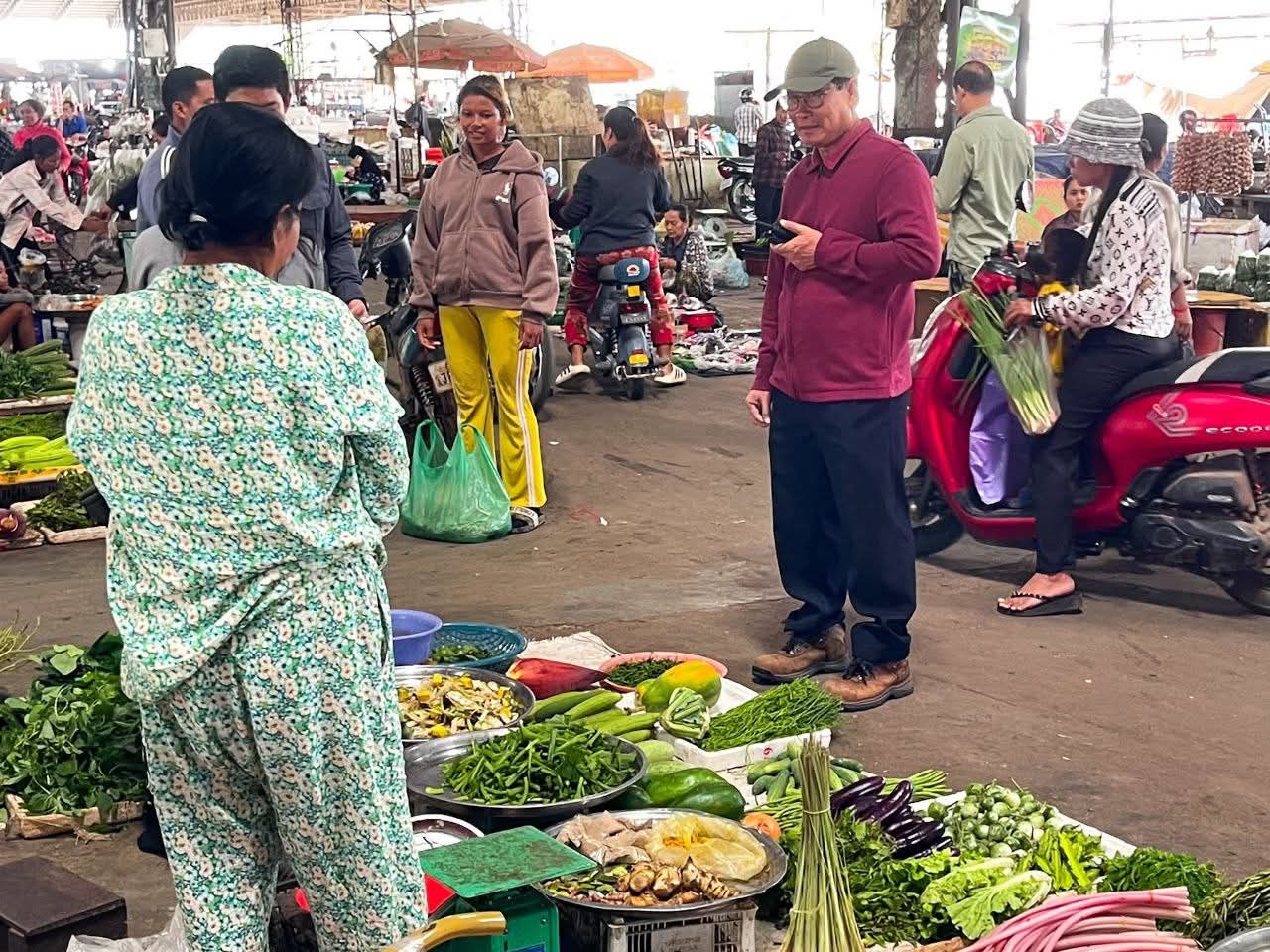 ខេត្តពោធិ៍សាត់ ៖ នៅព្រឹកថ្ងៃទី១១ ខែធ្នូ ឆ្នាំ២០២៥ ទោះបីជាមានការឧបត្ថម្ភជាស្បៀងពីសប្បុរជនតាមរយៈរដ្ឋបាលខេត្តជាបន្តបន្ទាប់ក៏ដោយ ឯកឧត្តម ខូយ រីដា អភិបាល នៃគណៈអភិបាលខេត្តពោធិ៍សាត់ នៅតែបន្តយកចិត្តទុកដាក់ខ្ពស់ ចុះទិញសាច់ និងបន្លែដោយផ្ទាល់ ដើម្បីធានាភាពស្រស់ និងគ្រប់គ្រាន់ ដល់បងប្អូនកងទ័ពជួរមុខ និងជនភៀសសឹកនៅ ស្រុកវាលវែង ខេត្តពោធិ៍សាត់។