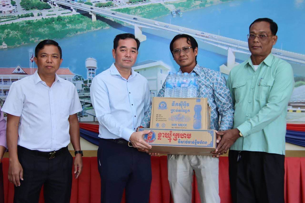 (កំពង់ចាម) : ឯកឧត្តម អ៊ុន ចាន់ដា អភិបាល នៃអភិបាលខេត្តកំពង់ចាម ថ្លែងអំណរព្រះគុណ និងអរគុណដល់ ព្រះមន្ត្រីសង្ឃ និងសប្បុរសជនទាំងអស់ដែលបានចូលរួមជាបន្តបន្ទាប់ក្នុងការបរិច្ចាគជាវិភាគទានផ្តល់ជាអំណោយ សប្បុរសធម៌ តាមការស្ម័គ្រចិត្តទោះតិចក្តីច្រើនក្តី ដូចជា៖ ថវិកា សម្ភារ គ្រឿងឧបភោគបរិភោគ ថ្នាំពេទ្យ ជាដើម ដើម្បីរដ្ឋបាលខេត្ត នាំយកអំណោយទាំងនោះ ទៅឧបត្ថម្ភដល់វីរៈកងទ័ពកម្ពុជាដែលកំពុងឈរ ជើងតាមខ្សែត្រៀមជួរមុខ នៅតាមខ្សែបន្ទាត់ព្រំដែន(កម្ពុជា-ថៃ) ។