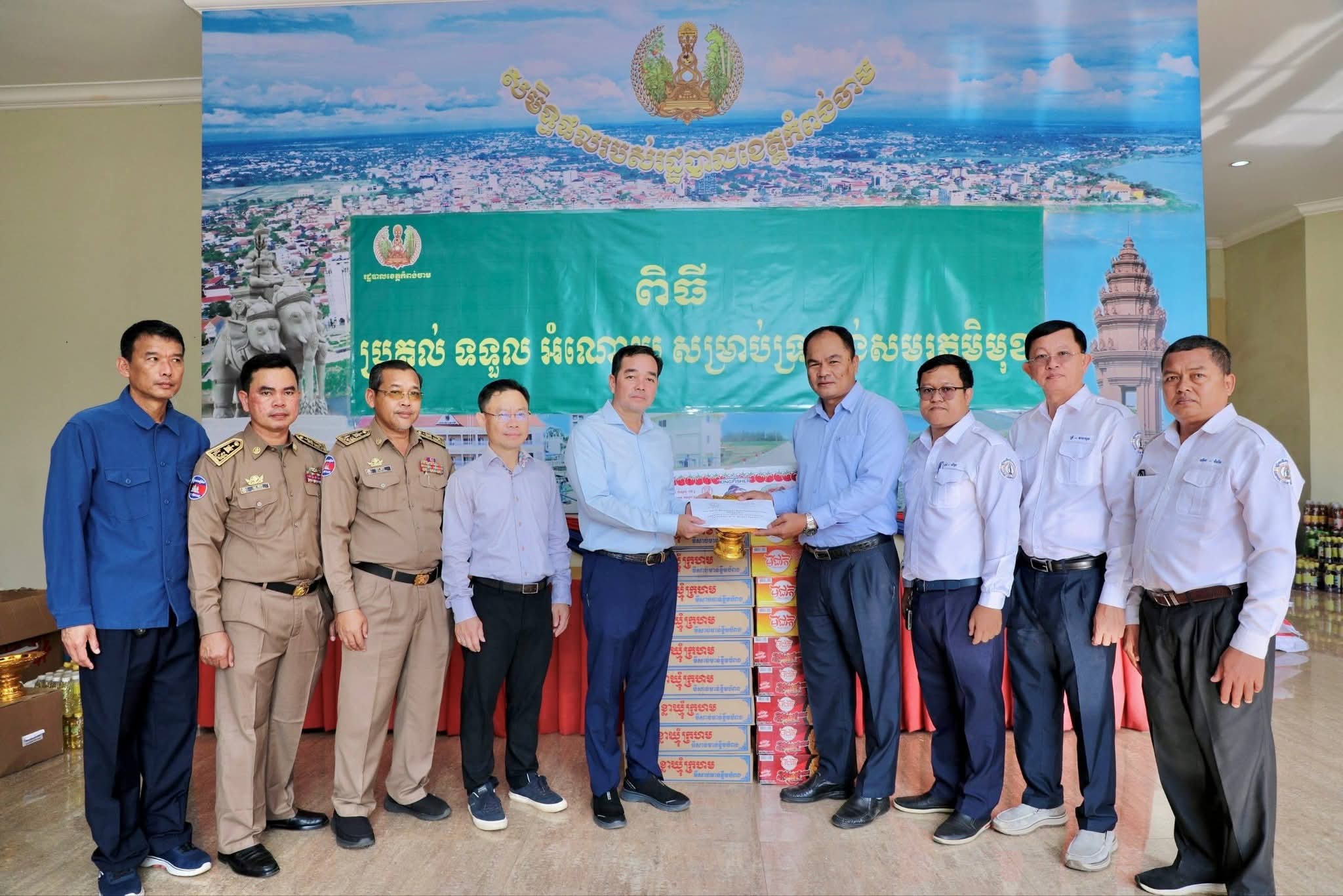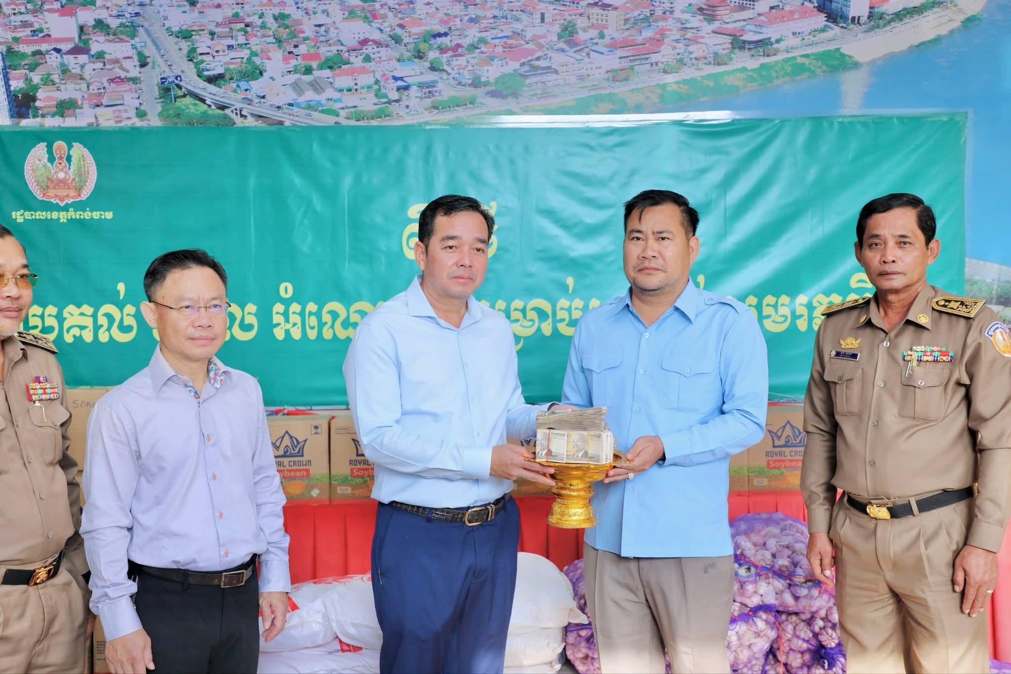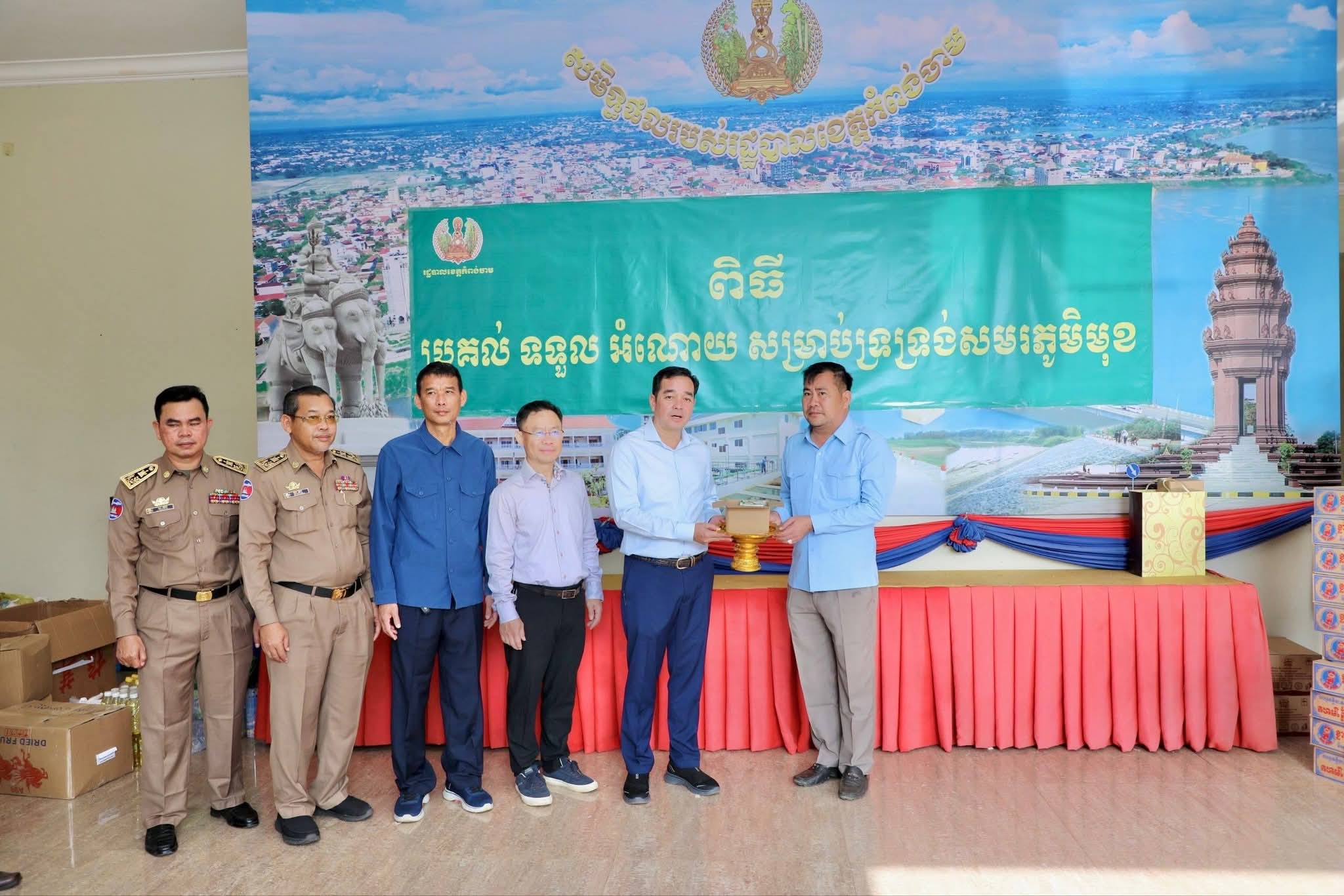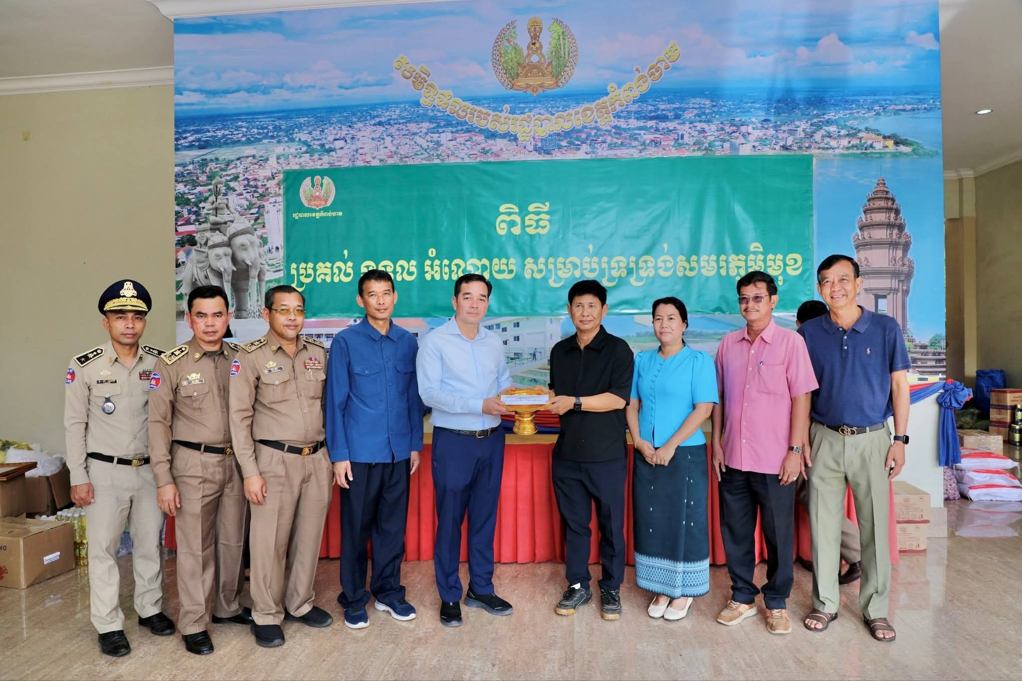 អំណោយជាថវិកា គ្រឿងឧបភោគបរិភោគ ថ្នាំពេទ្យ និងសម្ភារៈប្រើប្រាស់ចាំបាច់មួយចំនួនធំ ត្រូវបានអាជ្ញាធរក្រុងស្រុក ឃុំសង្កាត់ មន្ទីរអង្គភាពជុំវិញខេត្ត និងសប្បុរសជនជាច្រើន នាំយកមកប្រគល់ជូនរដ្ឋបាលខេត្តកំពង់ចាម ដើម្បីបន្តនាំយកទៅប្រគល់ជូនវីរៈកងទ័ព ដែលកំពុងឈរជើងប្រយុទ្ធនៅសមរភូមិមុខ និងប្រជាពលរដ្ឋជាជនភៀសសឹក ដោយសារក្រុមទាហានថៃ ឈ្លានពានចូលបូរណៈភាពទឹកដីកម្ពុជា។