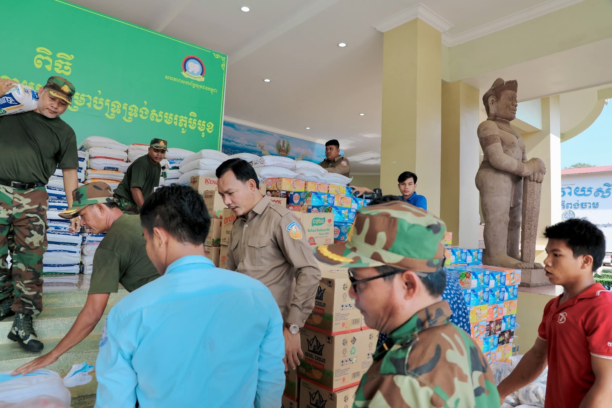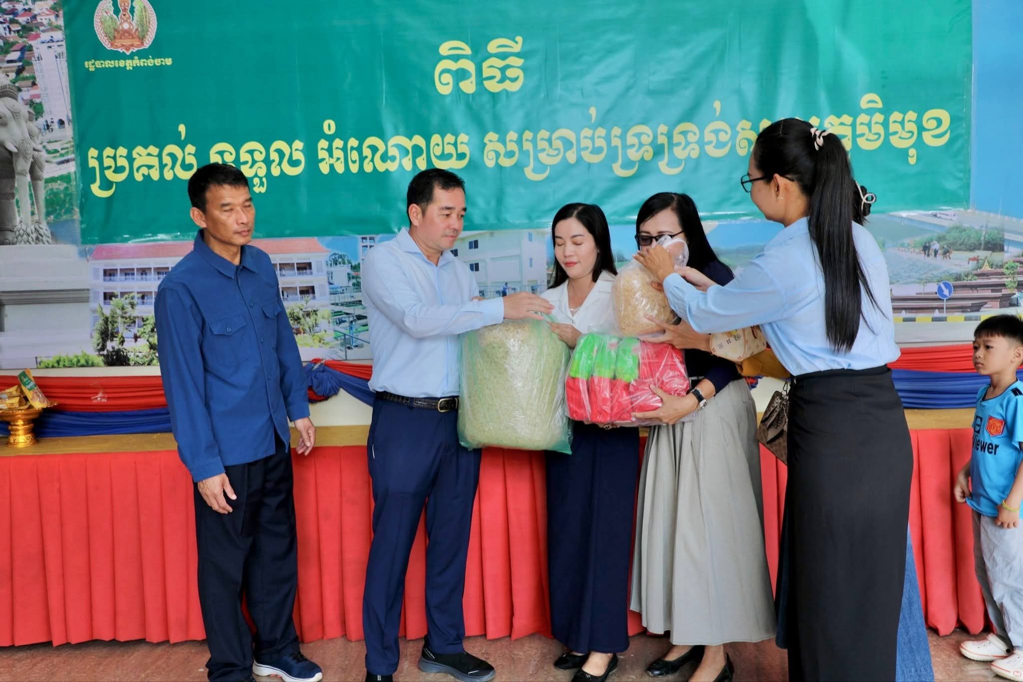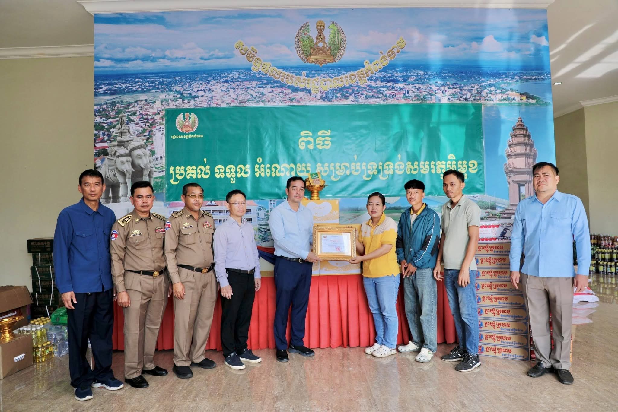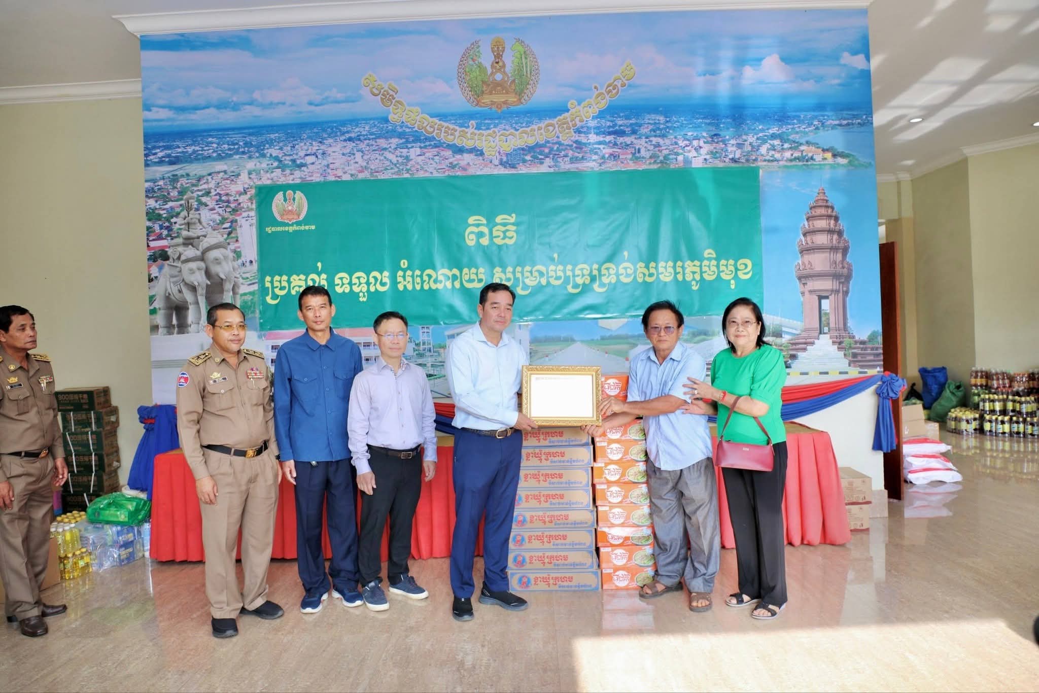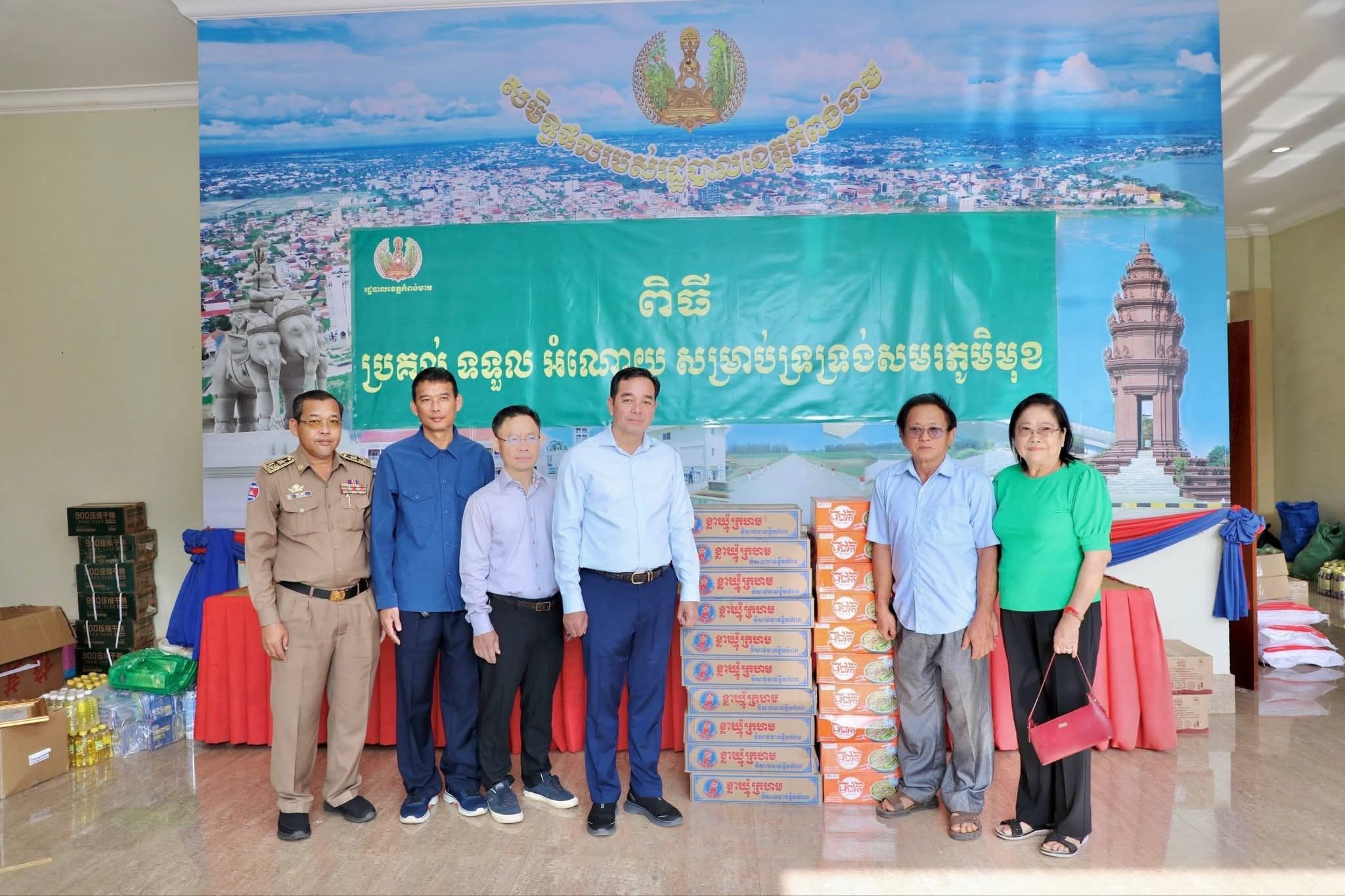 អំណោយជាថវិកា គ្រឿងឧបភោគបរិភោគ ថ្នាំពេទ្យ និងសម្ភារៈប្រើប្រាស់ចាំបាច់មួយចំនួនធំ ត្រូវបានអាជ្ញាធរក្រុងស្រុក ឃុំសង្កាត់ មន្ទីរអង្គភាពជុំវិញខេត្ត និងសប្បុរសជនជាច្រើន នាំយកមកប្រគល់ជូនរដ្ឋបាលខេត្តកំពង់ចាម ដើម្បីបន្តនាំយកទៅប្រគល់ជូនវីរៈកងទ័ព ដែលកំពុងឈរជើងប្រយុទ្ធនៅសមរភូមិមុខ និងប្រជាពលរដ្ឋជាជនភៀសសឹក ដោយសារក្រុមទាហានថៃ ឈ្លានពានចូលបូរណៈភាពទឹកដីកម្ពុជា។