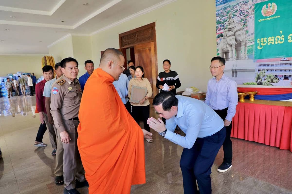 (កំពង់ចាម) :នៅថ្ងៃទី១២ ខែធ្នូ ឆ្នាំ២០២៥ ឯកឧត្តម ឯកឧត្តម អ៊ុន ចាន់ដា អភិបាល នៃគណៈអភិបាលខេត្តកំពង់ចាម អញ្ជើញទទួល ការឧបត្ថម្ភជាថវិកា គ្រឿងឧបភោគ និងបរិភាគ សម្ភារមួយចំនួនពី ព្រះគ្រូអនុគណក្រុងកំពង់ចាម និងជាព្រះចៅអធិការវត្ត ខេនវ័ន បឹងស្នាយ ដើម្បីជួយដល់វីរកងទ័ពជួរមុខកម្ពុជា ដែលកំពុងប្រយុទ្ធជាមួយសត្រូវឈ្លានពាន តស៊ូការពារបន្ទាត់ព្រំដែន(កម្ពុជា-ថៃ ) និងចែកជូនបងប្អូនប្រជាពលរដ្ឋគ្រួរសារជនភៀសសឹកដែលត្រូវបានជម្លៀសខ្លួនមកកាន់មណ្ឌលសុវត្ថិភាព តាមការអំពាវនាវរបស់ ឯកឧត្តម អ៊ុន ចាន់ដា អភិបាលនៃគណៈអភិបាលខេត្តកំពង់ចាម។