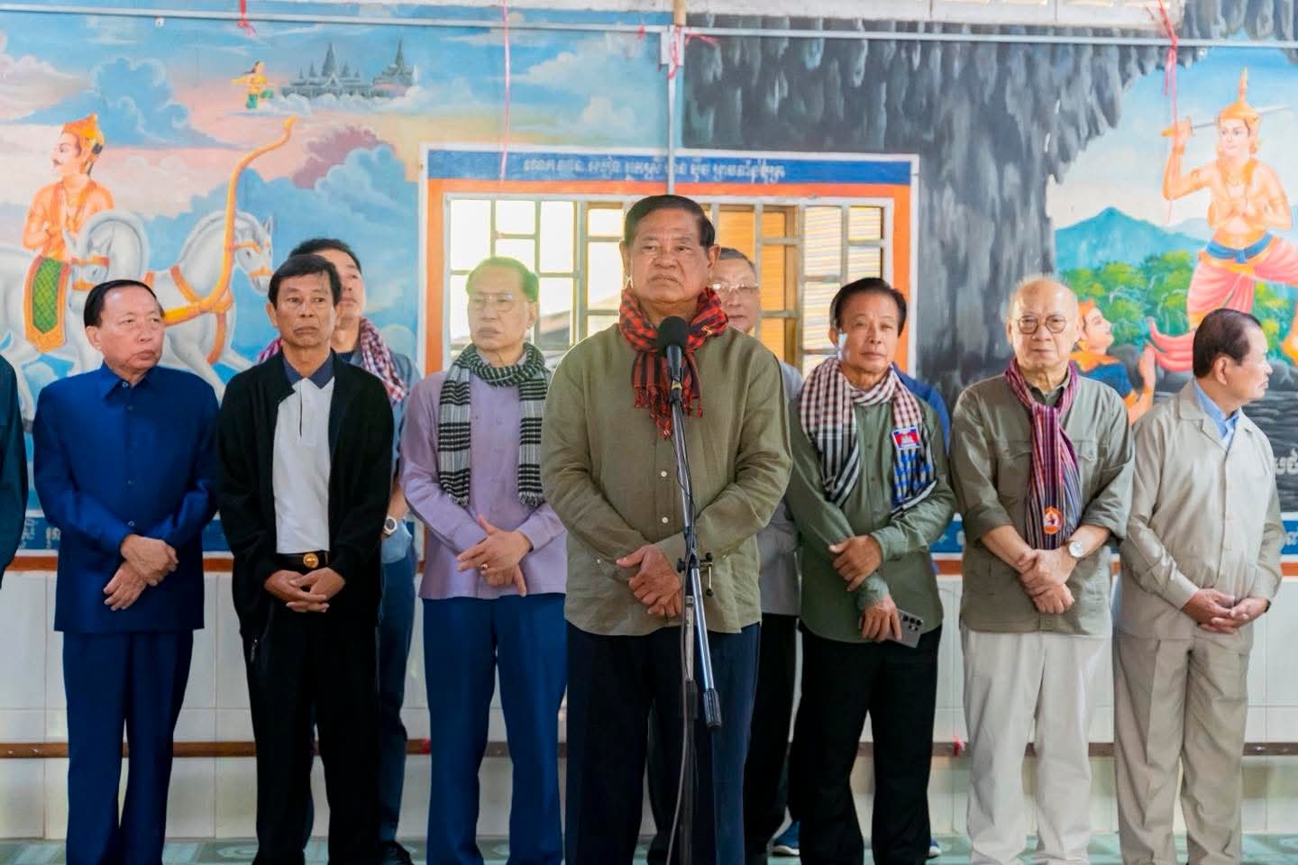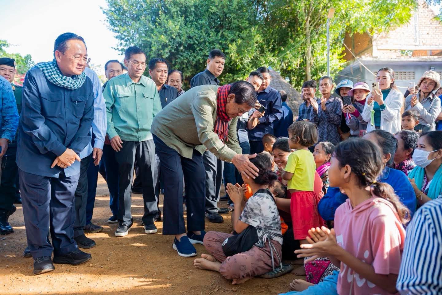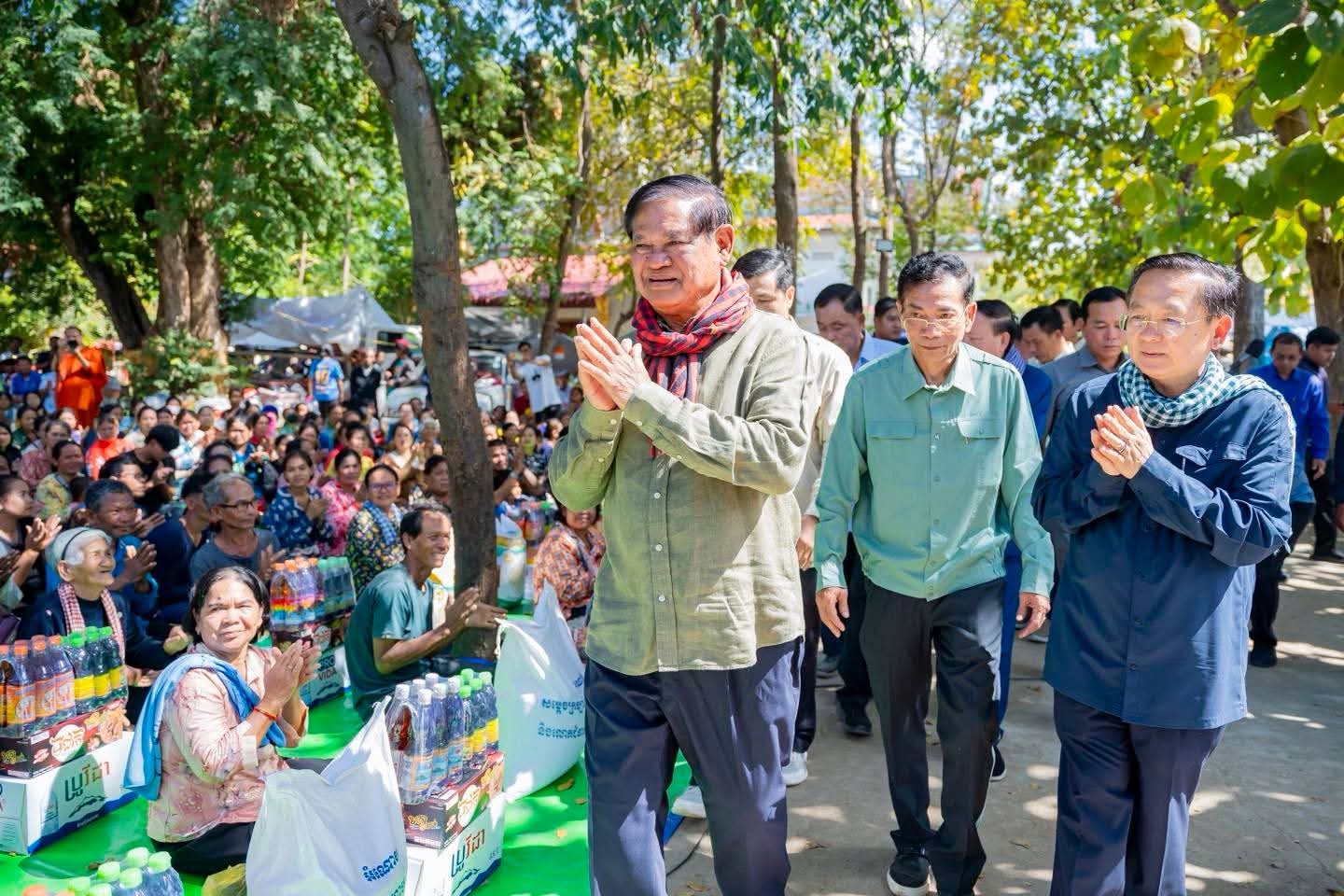 សម្ដេចក្រឡាហោម ស ខេង បានពាំនាំនូវការផ្ដាំផ្ញើសួរសុខទុក្ខពីសំណាក់ សម្ដេចអគ្គមហាសេនាបតីតេជោ ហ៊ុន សែន ប្រធានព្រឹទ្ធសភា សម្ដេចមហាបវរធិបតី ហ៊ុន ម៉ាណែត នាយករដ្ឋមន្ត្រី នៃព្រះរាជាណាចក្រកម្ពុជា ជូនប្រជាពលរដ្ឋជនភៀសសឹក ដែលបានរងគ្រោះដោយសារការធ្វើសង្គ្រាមឈ្លានពានពីប្រទេសថៃ។