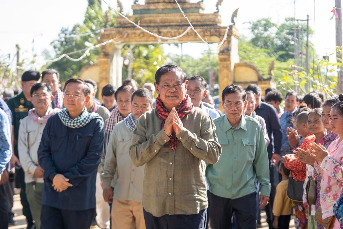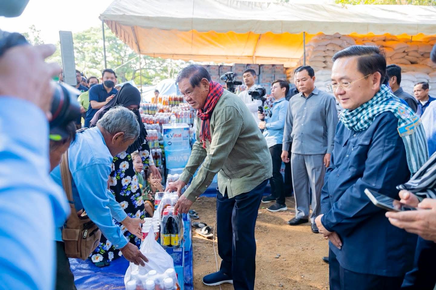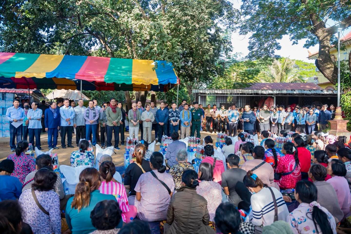 សម្ដេចក្រឡាហោម ស ខេង បានពាំនាំនូវការផ្ដាំផ្ញើសួរសុខទុក្ខពីសំណាក់ សម្ដេចអគ្គមហាសេនាបតីតេជោ ហ៊ុន សែន ប្រធានព្រឹទ្ធសភា សម្ដេចមហាបវរធិបតី ហ៊ុន ម៉ាណែត នាយករដ្ឋមន្ត្រី នៃព្រះរាជាណាចក្រកម្ពុជា ជូនប្រជាពលរដ្ឋជនភៀសសឹក ដែលបានរងគ្រោះដោយសារការធ្វើសង្គ្រាមឈ្លានពានពីប្រទេសថៃ។