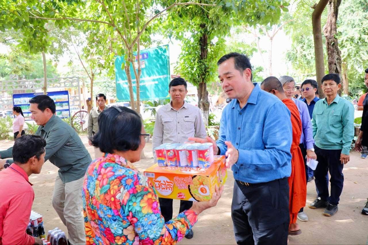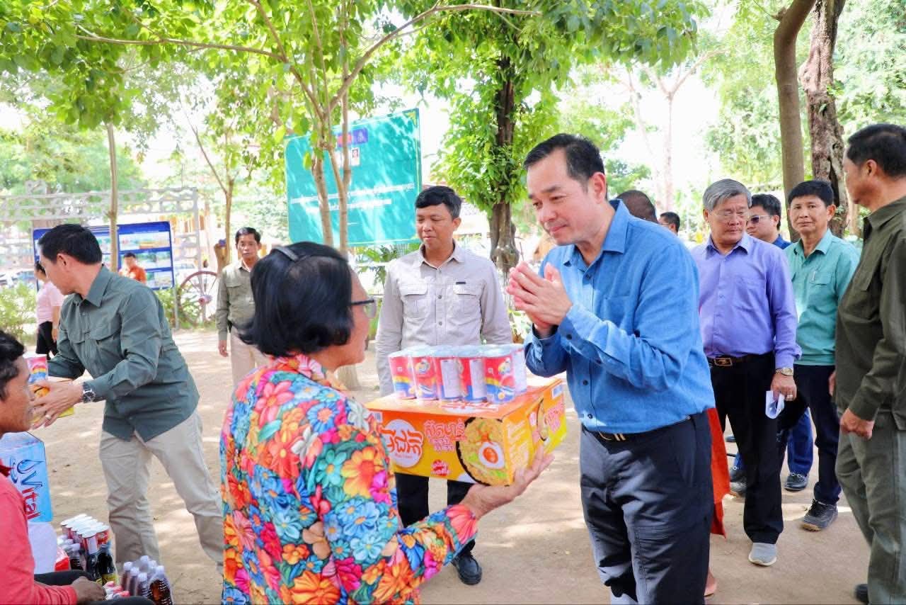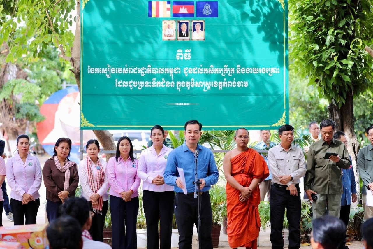 (កំពង់ចាម): ឯកឧត្តម អ៊ុន ចាន់ដា អភិបាលខេត្តកំពង់ចាម អមដំណើរដោយមន្ត្រីពាក់ព័ន្ធ និងអាជ្ញាធរ មូលដ្ឋាន នាព្រឹកថ្ងៃទី១៤ ខែធ្នូ ឆ្នាំ២០២៥នេះ បានអញ្ជើញចុះសួរសុខទុក្ខ និងនាំអំណោយ ចែកជូនប្រជាពលរដ្ឋ ចំនួន ២៩៣គ្រួសារ ដែលរងផលប៉ះពាល់ដោយសារគ្រោះ ទឹកជំនន់ ហើយជំលៀសទៅកាន់ទីទួលសុវត្ថិភាព នៅភូមិវត្ត ឃុំកងតាណឹង ស្រុកកងមាស។