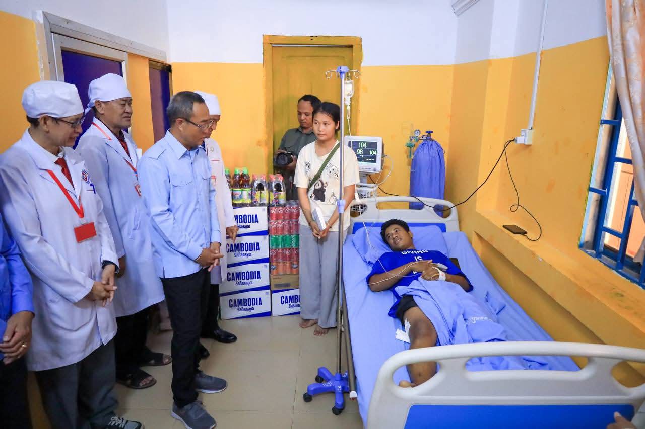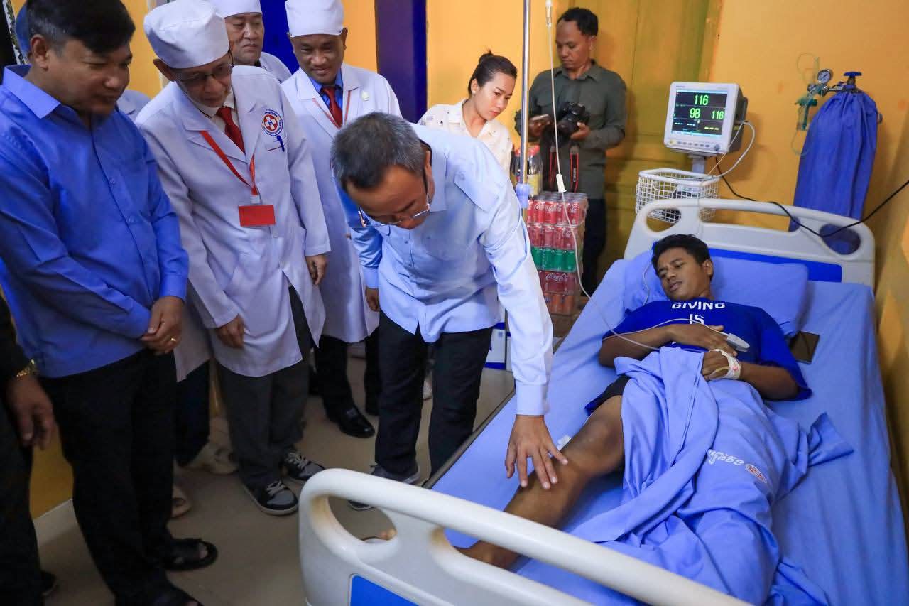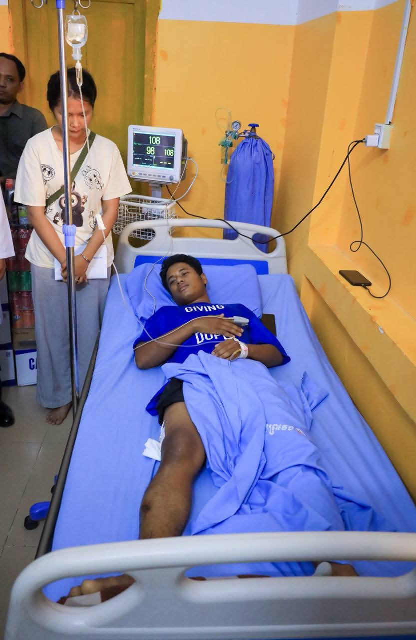 (ព្រៃវែង) : នៅព្រឹកថ្ងៃអាទិត្យ ទី១០ ខែសីហា ឆ្នាំ២០២៥នេះ ឯកឧត្តម សួន សុម៉ាលីន អភិបាល នៃគណៈអភិបាលខេត្តព្រៃវែង រួមជាមួយថ្នាក់ដឹកនាំខេត្ត បានអញ្ជើញចុះសួរសុខទុក្ខ លោក ណាង សុីណាត ដែលជាវីរៈកងទ័ពជួរមុខ ឈរជើងនៅខេត្តព្រះវិហារ ដែលរងរបួសអំឡុងពេលប្រយុទ្ធការពារបូរណភាពទឹកដី និងអធិបតេយ្យជាតិកម្ពុជា ពីការឈ្លានពានរបស់ខ្មាំងសត្រូវ បច្ចុប្បន្នបាននិងកំពុងសម្រាលព្យាបាល នៅមន្ទីរពេទ្យបង្អែក ខេត្តព្រៃវែ។