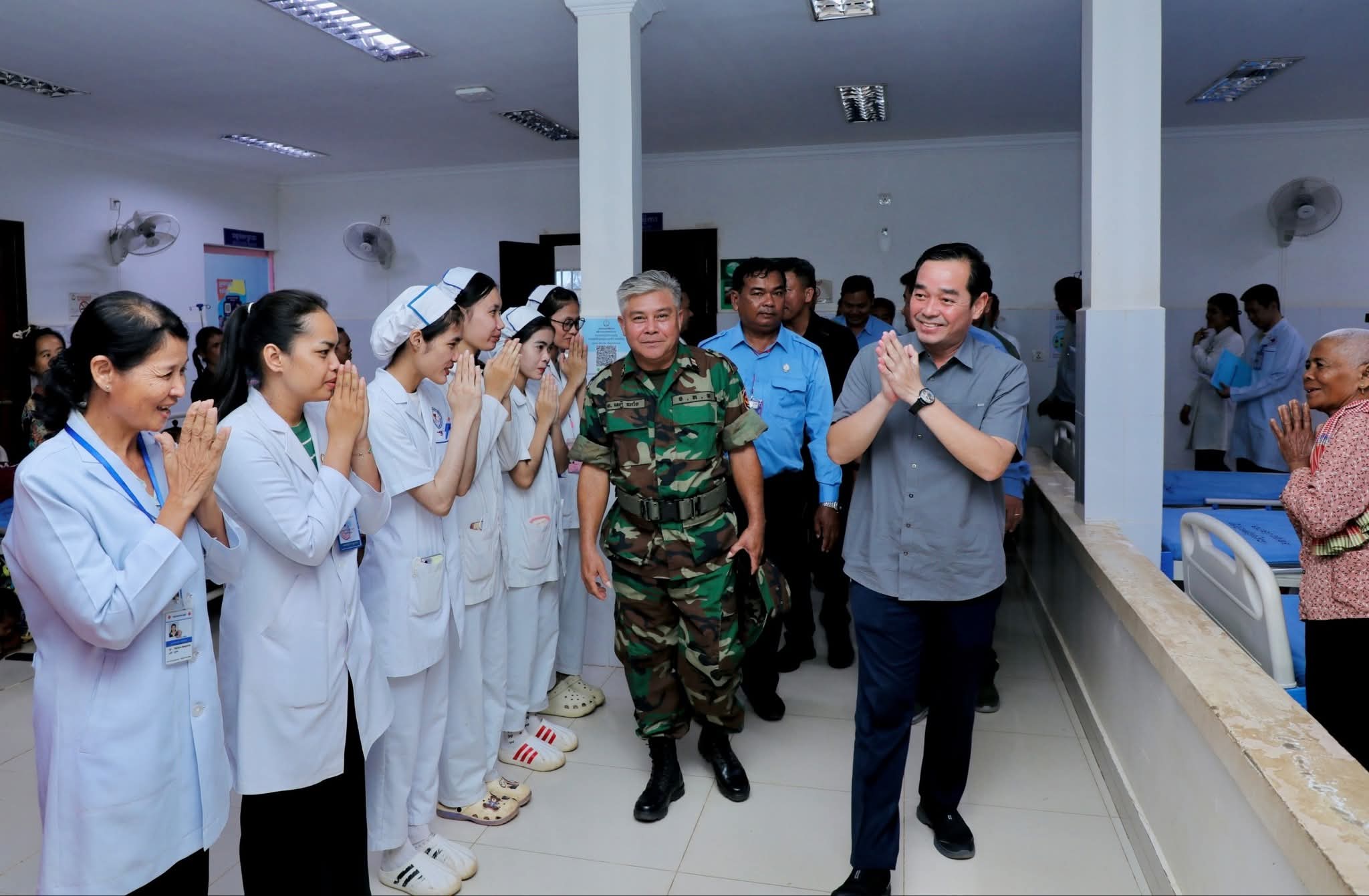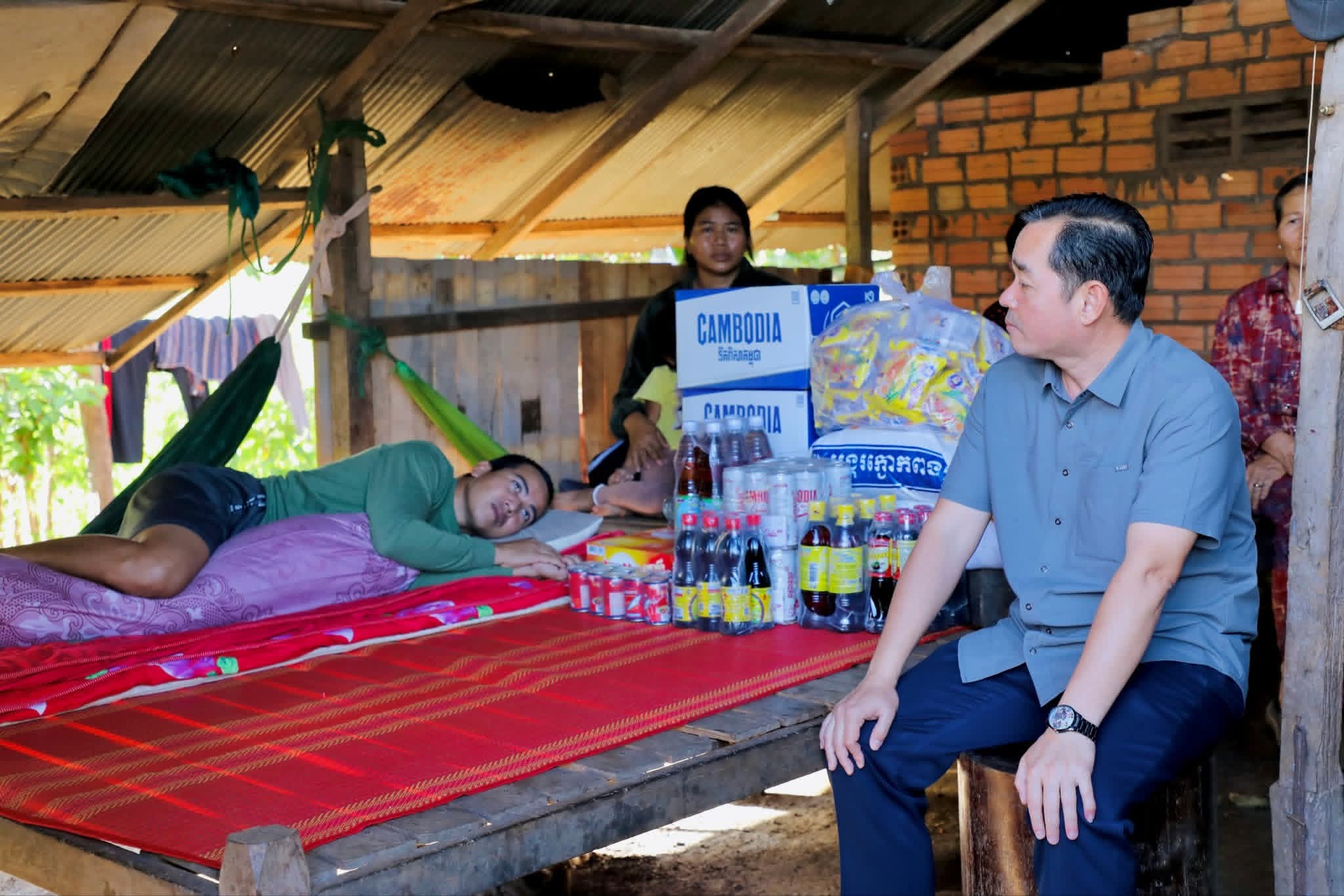 (កំពង់ចាម)៖ អភិបាលខេត្តកំពង់ចាម ឯកឧត្តម អ៊ុន ចាន់ដា និងក្រុមការងារ នៅរសៀលថ្ងៃទី ១៦ ខែធ្នូ ឆ្នាំ ២០២៥ នេះ បានដឹកនាំក្រុមការងារ បានអញ្ជើញសួរសុខទុក្ខ និងនាំអំណោយផ្ដល់ជូនវីរៈកងទ័ព ៣រូប កំពុងសម្រាកព្យាបាលជំងឺ ដោយពីរនាក់ ព្យាបាលនៅមន្ទីរពេទ្យបង្អែកស្រុកជើងព្រៃ និងម្នាក់ទៀត ព្យាបាលនៅផ្ទះ នៅភូមិបាខម ឃុំសំពងជ័យ ស្រុកជើងព្រៃ។