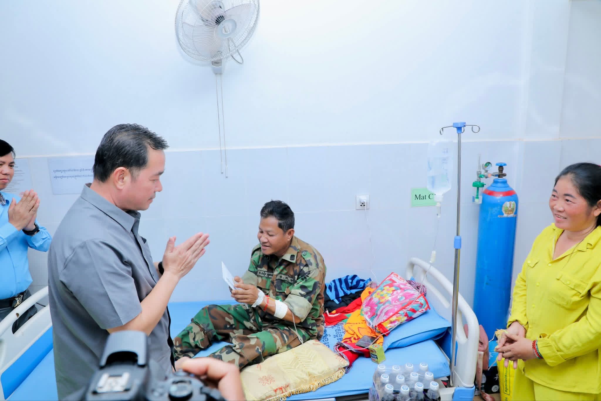 ក្នុងឱកាសនោះដែរ ឯកឧត្តម អ៊ុន ចាន់ដា អភិបាលខេត្តកំពង់ចាម ក៏បានផ្ដាំផ្ញើដល់គ្រូពេទ្យក្នុងការយកចិត្តទុកដាក់ថែទាំព្យាបាល ដល់វីរៈកងទ័ពរបស់យើង ឆាប់បានជាសះស្បើយ ត្រឡប់ទៅគេហដ្ឋានវិញ៕