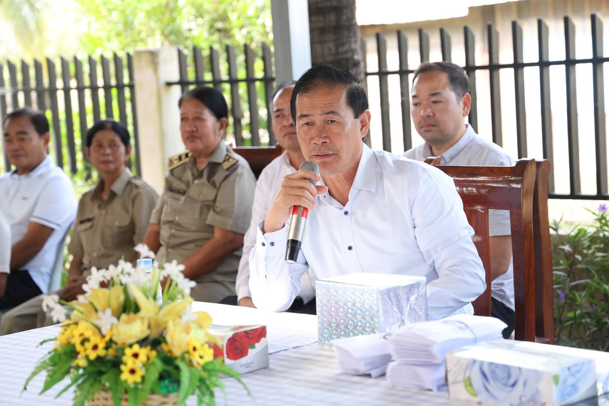 (ពោធិ៍សាត់) ៖ ឯកឧត្តម ខូយ រីដា អភិបាលនៃគណៈអភិបាលខេត្តពោធិ៍សាត់ តំណាងដ៏ខ្ពង់ខ្ពស់ សម្ដេចបវរធិបតី ហ៊ុន ម៉ាណែត នាយករដ្ឋមន្រ្តីនៃកម្ពុជា និងលោកជំទាវបណ្ឌិត ពេជ ចន្ទមុនី នាថ្ងៃទី១៦ ខែធ្នូ ឆ្នាំ២០២៥នេះ អញ្ជើញជួបសំណេះសំណាល ជាមួយគ្រួសារវីរកងទ័ពជួរមុខ ទូទាំងស្រុកក្រគរ ចំនួន ៥៥គ្រួសារ ព្រមទាំងផ្តល់ជូននូវថវិកាគោលនយោបាយ និងសារលិខិតរំលែកមរណទុក្ខ របស់រាជរដ្ឋាភិបាលកម្ពុជា មកប្រគល់ជូនភរិយា នៃសពលោកវរសេនីយ៍ត្រី ស្វាយ សារិទ្ធិ មេបញ្ជាការរង កងអនុសេនាធំ នៃកងការពារព្រំដែនគោកលេខ៥០១ ដែលបានពលីជីវិតក្នុងបុព្វហេតុការពារបូរណភាពទឹកដី ក្នុងភូមិសាស្ត្រឃុំថ្មដា ស្រុកវាលវែង នាជន្មាយុ៤៥ឆ្នាំ។