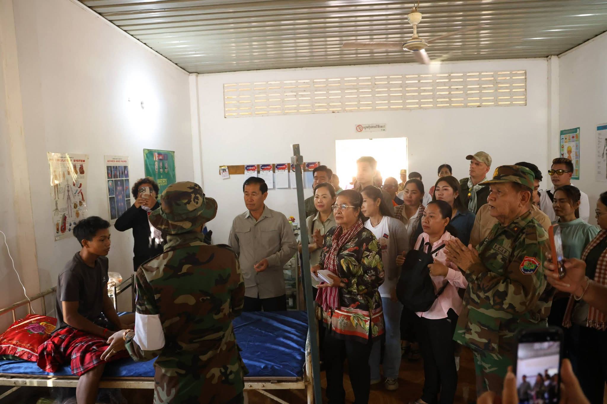 ពោធិ៍សាត់ ៖ ឯកឧត្តម ខូយ រីដា អភិបាលនៃគណៈអភិបាលខេត្តពោធិ៍សាត់ និងលោកជំទាវ អាំង សុជាតា ខូយ រីដា ប្រធានកិត្តិយសសាខាសមាគមនារី កម្ពុជា ដើម្បីសន្តិភាពនិងអភិវឌ្ឍន៍ខេត្ត បានអញ្ជើញអមដំណើរលោកជំទាវ ហ៊ុន ស៊ីណា ចុះជួបសំណេះសំណាលចុះសួរសុខទុក្ខ និងបាននាំយកថវិកា គ្រឿងឧបភោគ បរិភោគ សម្ភារប្រើប្រាស់យ៉ាងច្រើនជាការរួមចំណែកឧបត្ថម្ភ គាំទ្រដល់កងទ័ពនៃអង្គភាពតំបន់ប្រតិបត្តិការសឹករងពោធិ៍សាត់ សម្រាប់យកទៅចែកជូនបន្តនៅសមរភូមិមុខដែលបាននឹងកំពុងឈរជើងការពារបូរណភាពទឹកដី នាព្រឹកថ្ងៃទី១៧ខែធ្នូ ឆ្នាំ២០២៥នេះ។